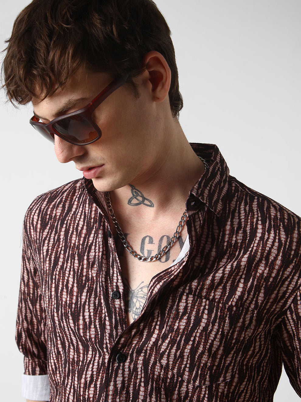 Aesthetic Brown Abstract Printed Crushed Shirt