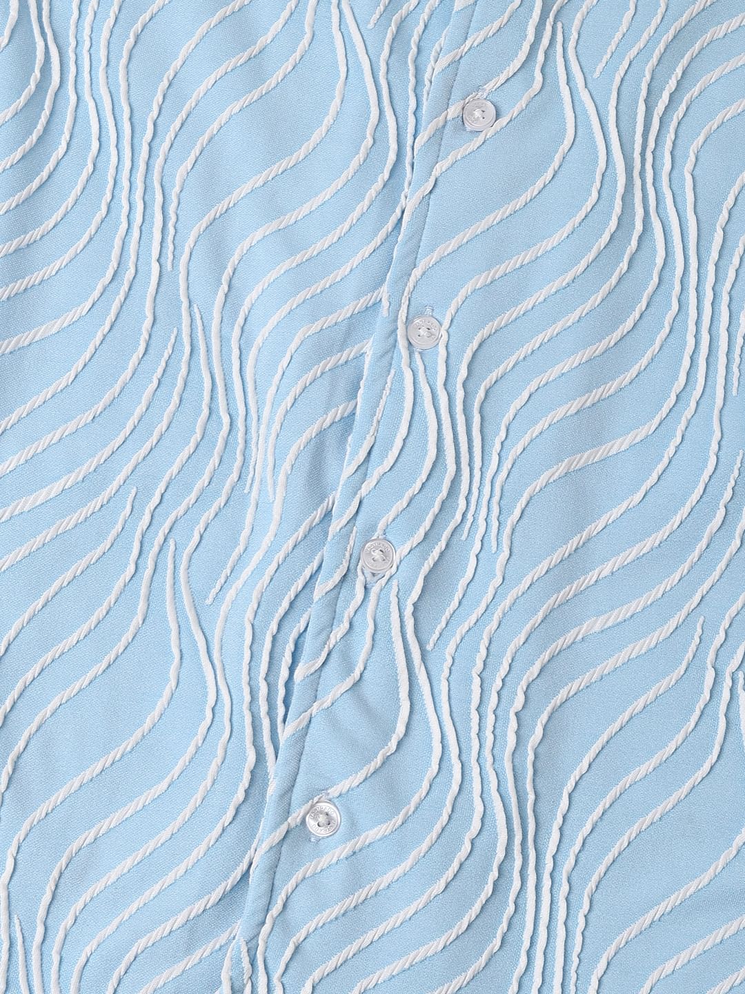 Step into sophistication with our Arctic Blue Wavy Patterned Oversized Shirt from Vastrado's RAD Collection. Its arctic blue hue and unique jacquard texture exude urban charm and modern elegance. Perfect for any occasion, this shirt is a versatile addition to your wardrobe, effortlessly elevating your style with its sleek presence.