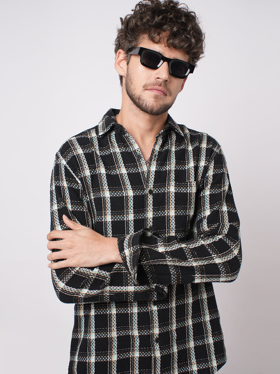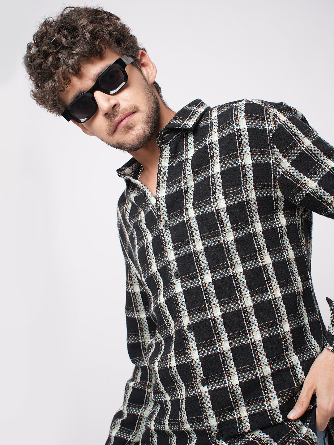 This Black Cityscape Checks Shirt blends urban style with timeless checks for a bold, versatile look. Crafted in classic black with sharp grid patterns, it delivers a modern edge that works across occasions. Perfect for city evenings, weekend outings, or casual Fridays at work. A go-to essential for a confident, contemporary wardrobe.