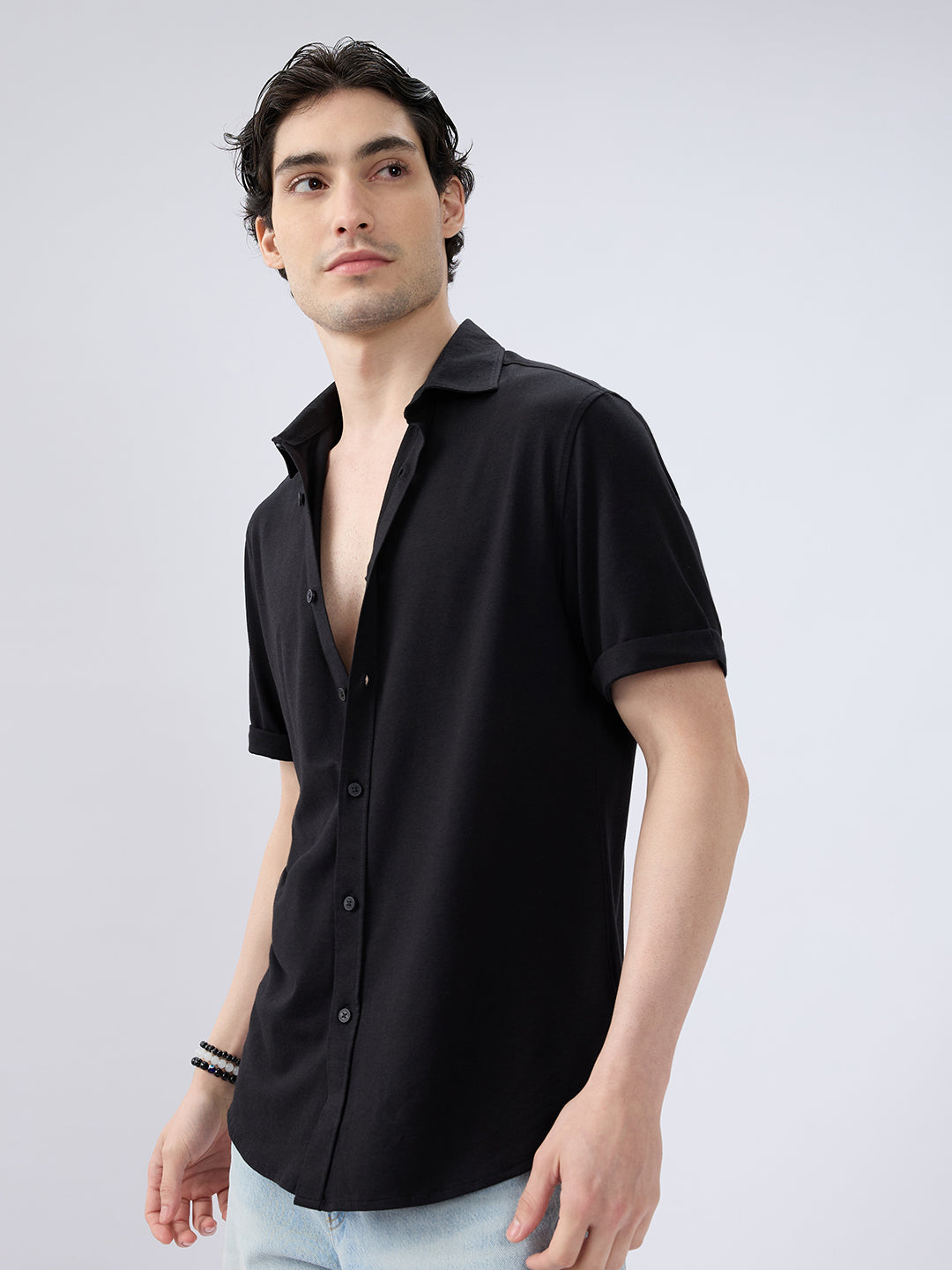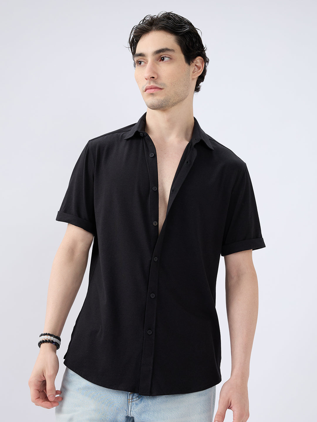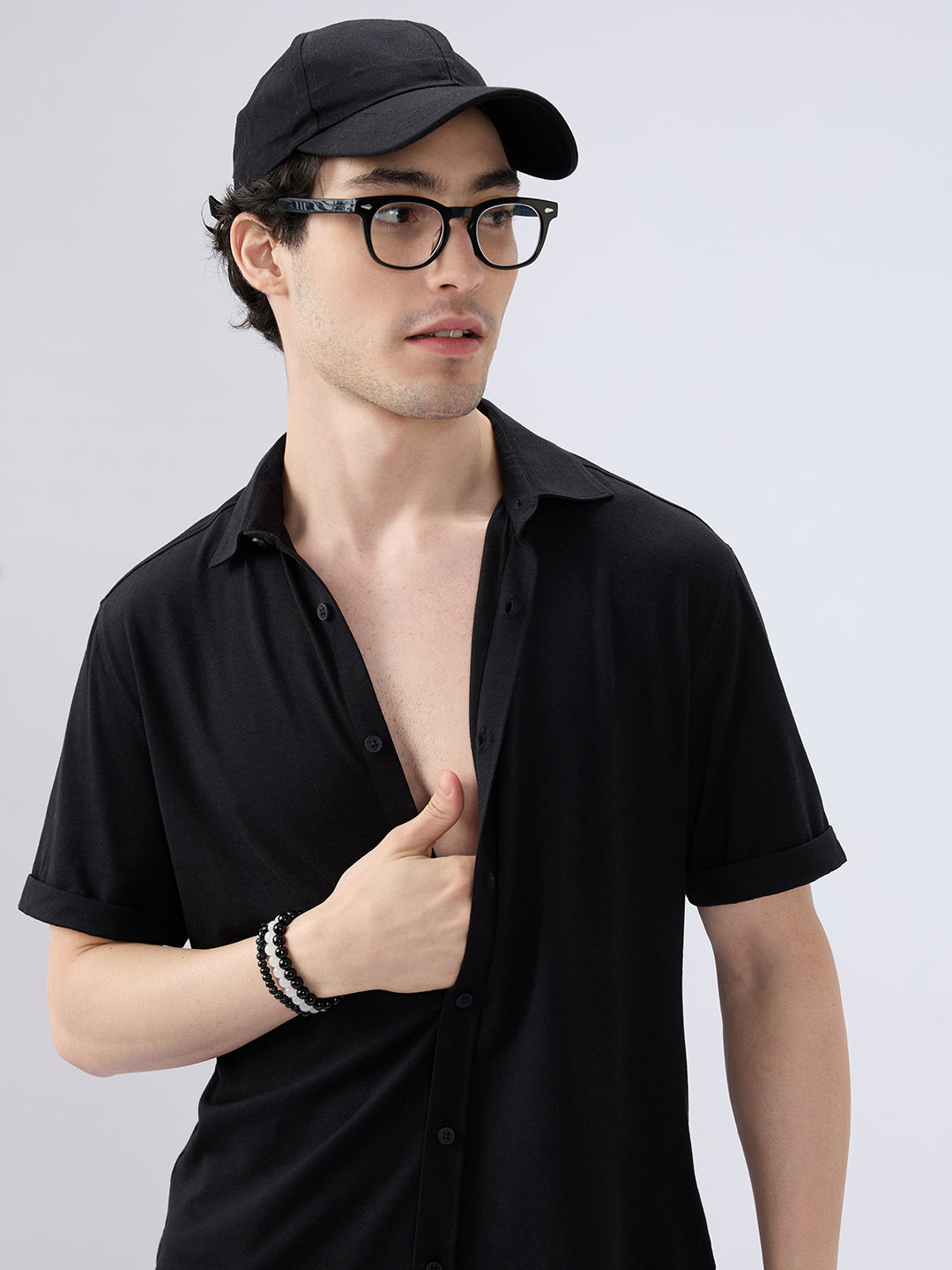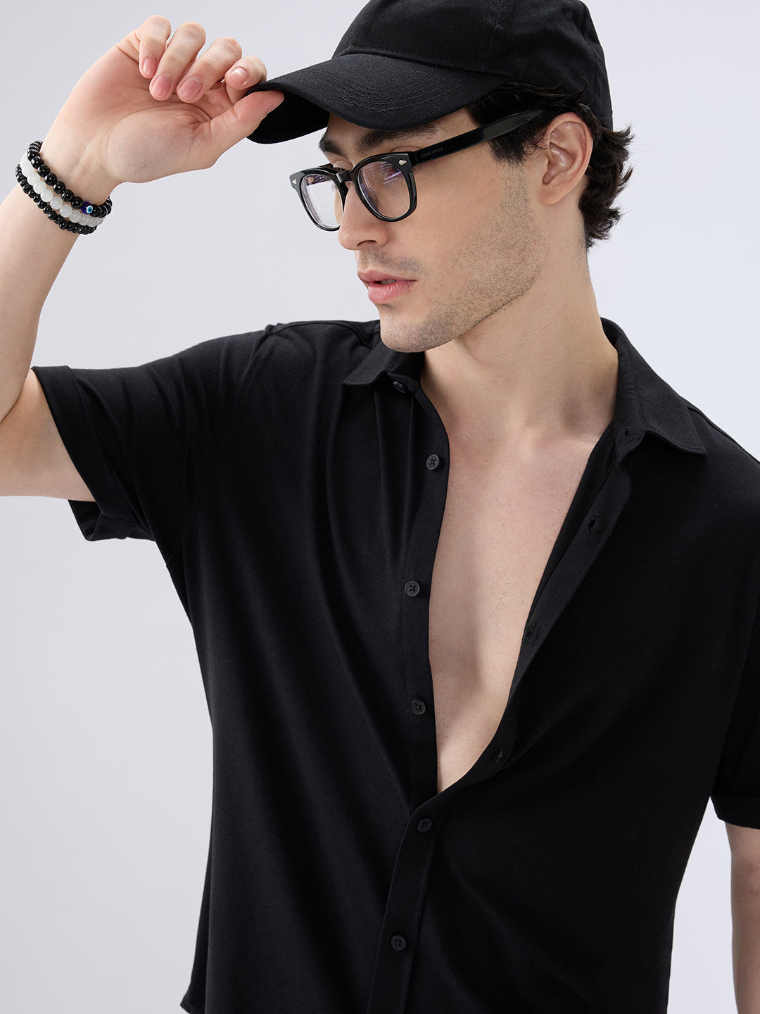 Minimal in design, maximal in impact this Black Onyx Everyday Shirt is made for those who believe in the power of simplicity. Featuring a luxurious cotton-blend fabric, a sleek tailored fit, and a smooth black finish, this shirt is your go-to piece for elevated everyday styling. Understated. Elegant. Unmistakably modern.