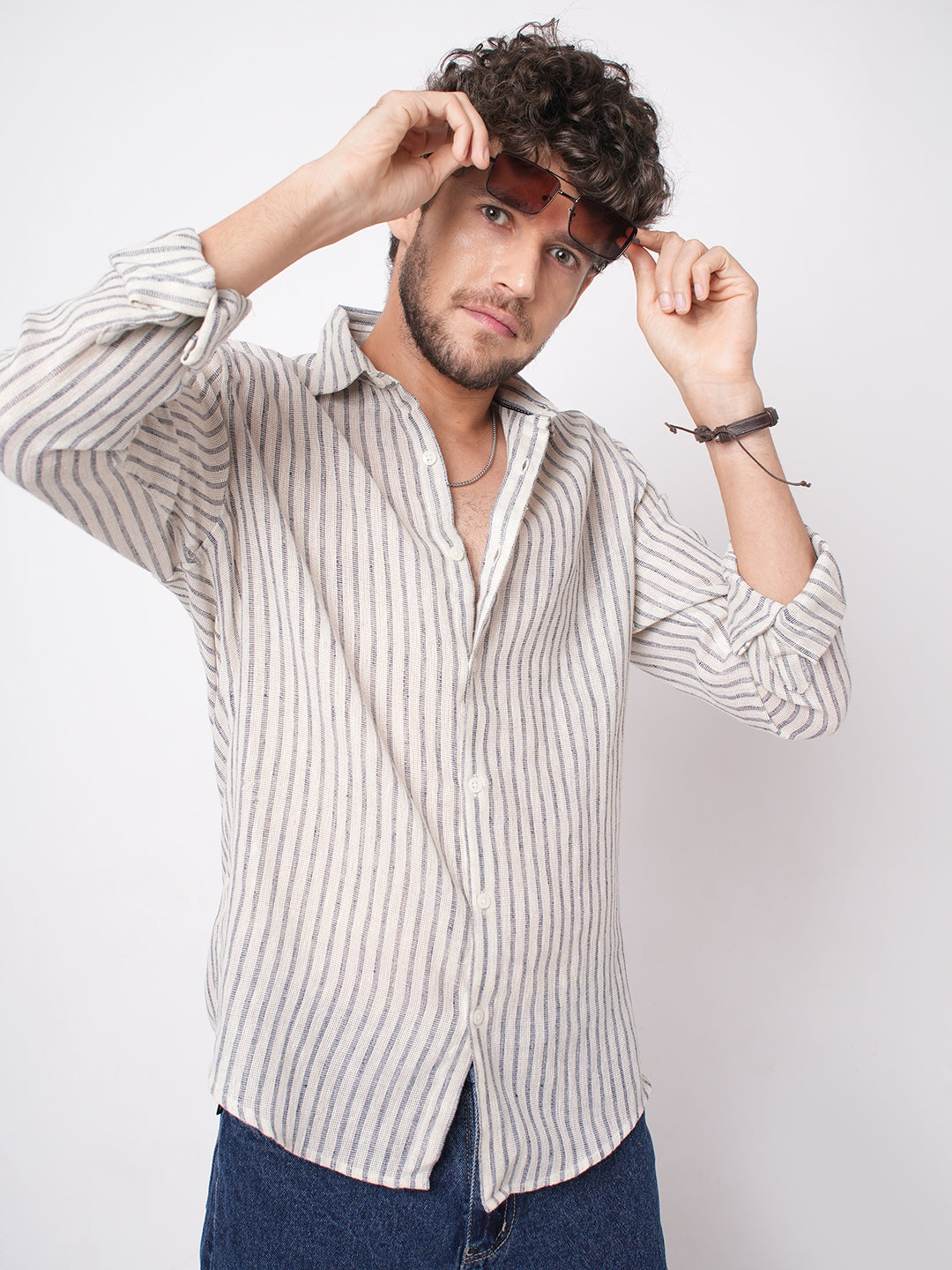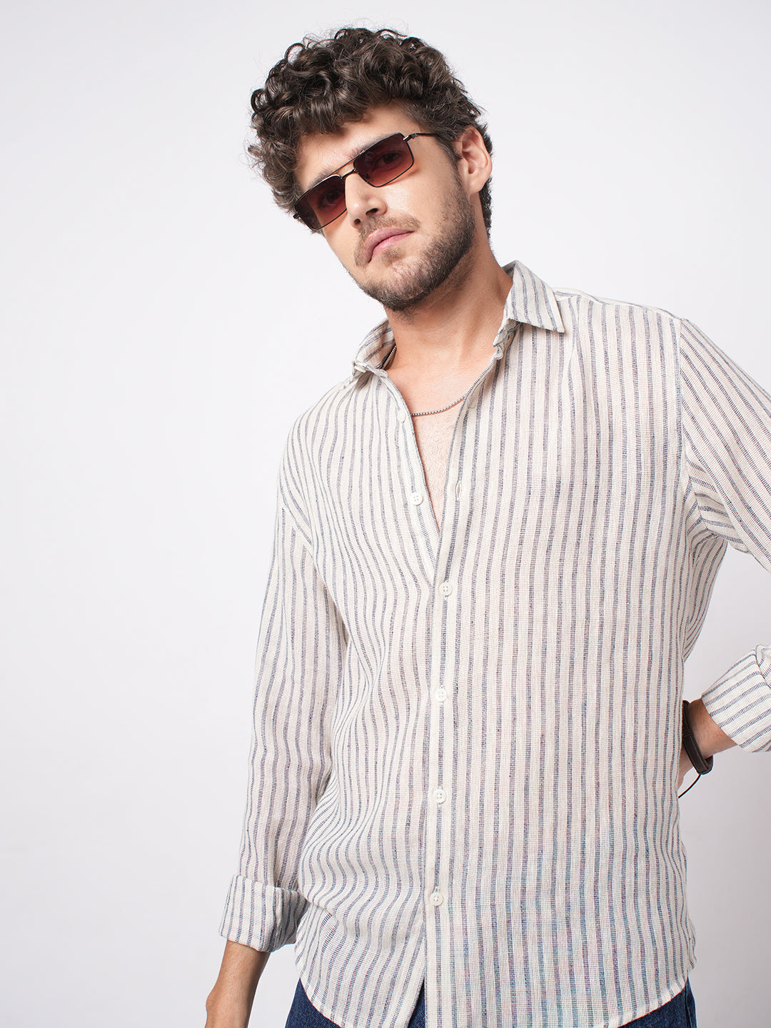 Bring rugged charm and modern ease to your wardrobe with this Blue Grainline Burlap Shirt. Designed with a distinctive grainline texture reminiscent of burlap weave, this shirt offers a unique balance of structure and comfort. The rich blue hue adds a refined touch, making it versatile for both casual and smart-casual styling.