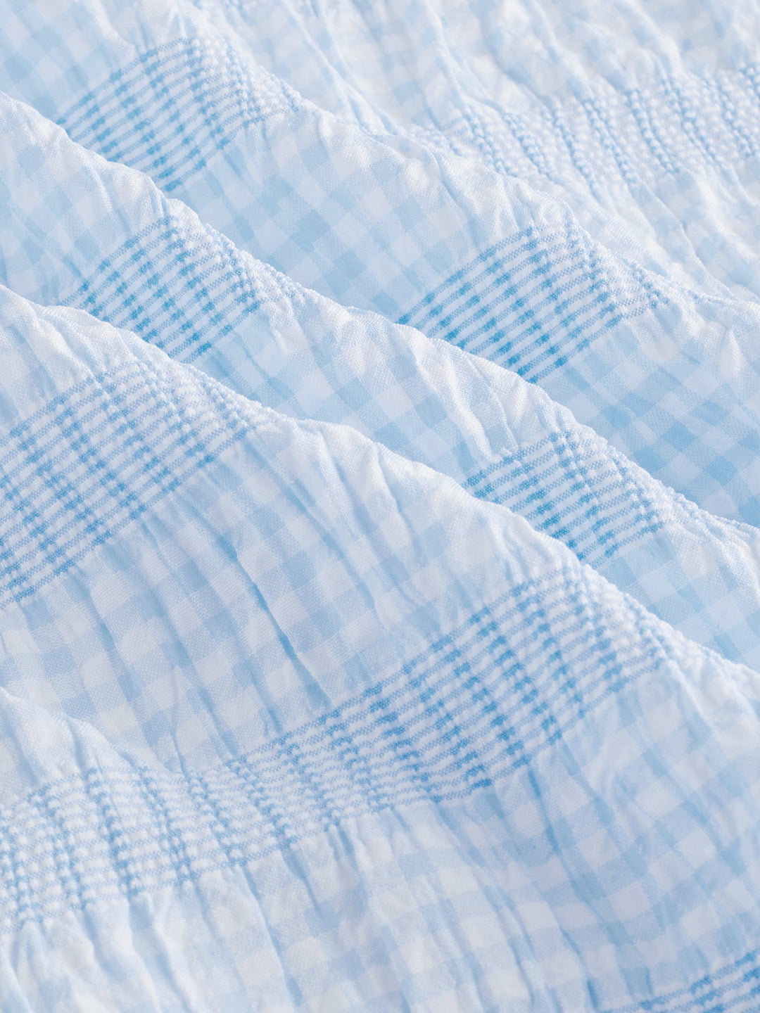 Blue & White Seersucker Gingham Checks Boxy Fit Crop Shirt