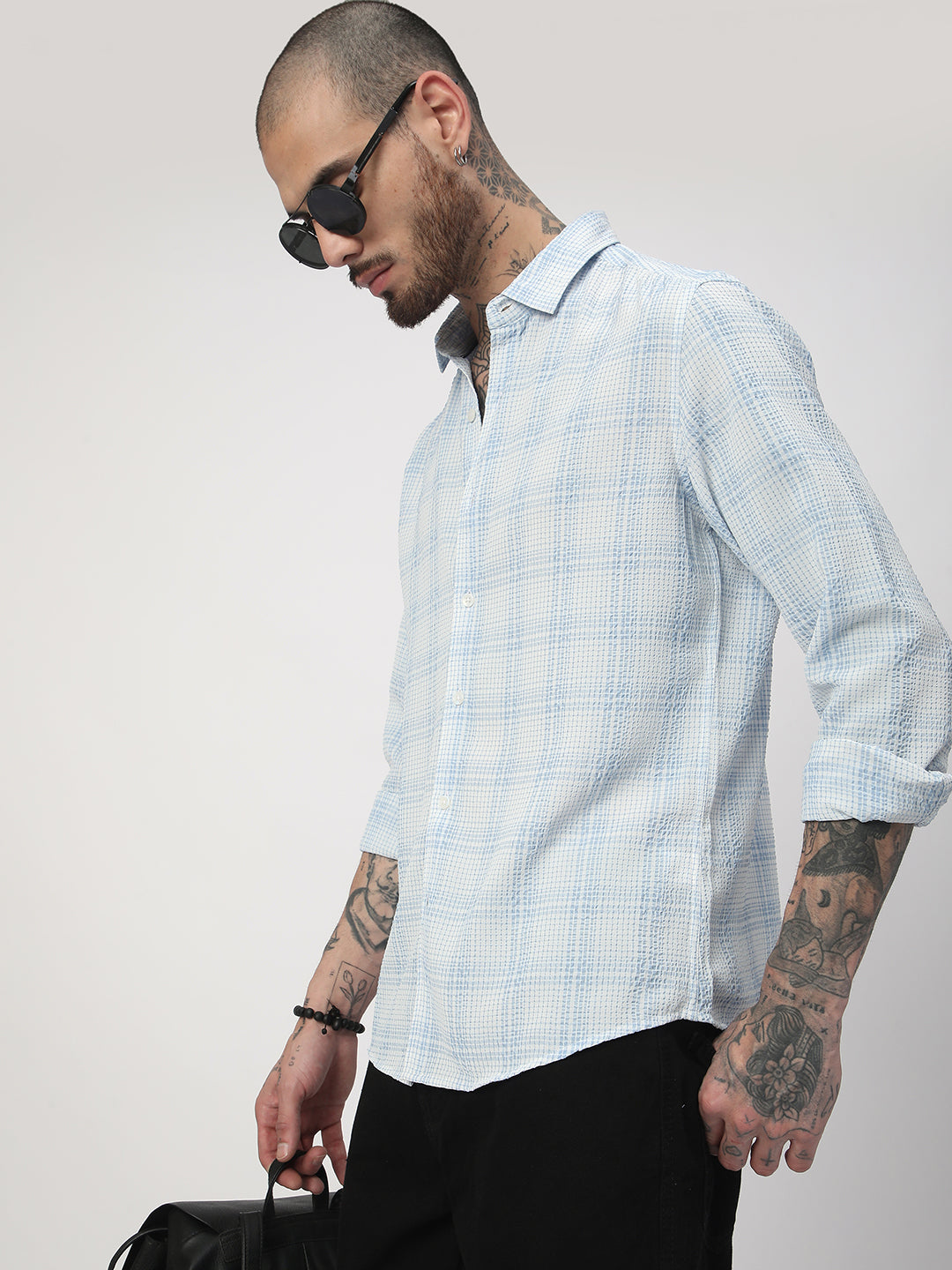 Channel timeless style with our plaid check seersucker shirt. This wonder features a classic pattern that never goes out of fashion & the construction offers exceptional comfort and breathability, making it a year-round favourite. The Mini check adds a touch of personality, perfect for elevating your everyday look.