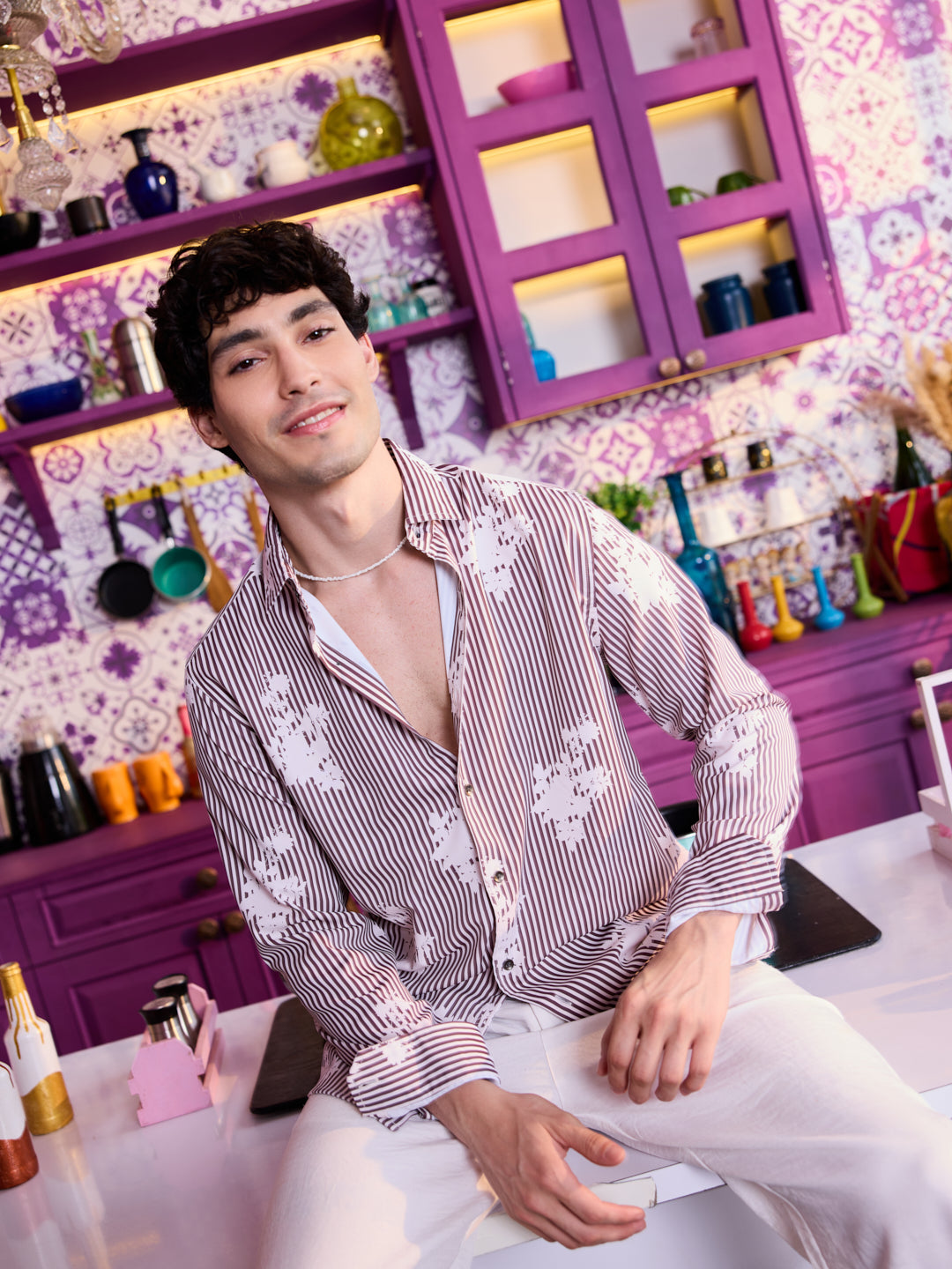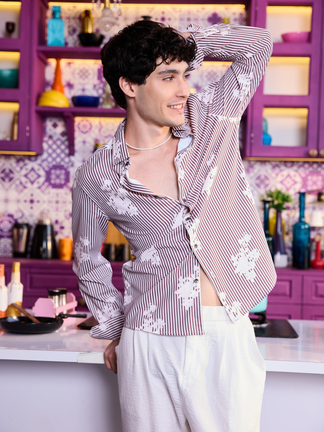 Inspired by the textures and tones of the natural world, this Brown & White Botanical Stripes Shirt is a tribute to organic beauty. With an artistic stripe pattern that echoes botanical silhouettes, this piece blends modern design with a grounded, earthy palette. Made with breathable materials and tailored in a relaxed fit, it’s perfect for conscious dressing with effortless flair.