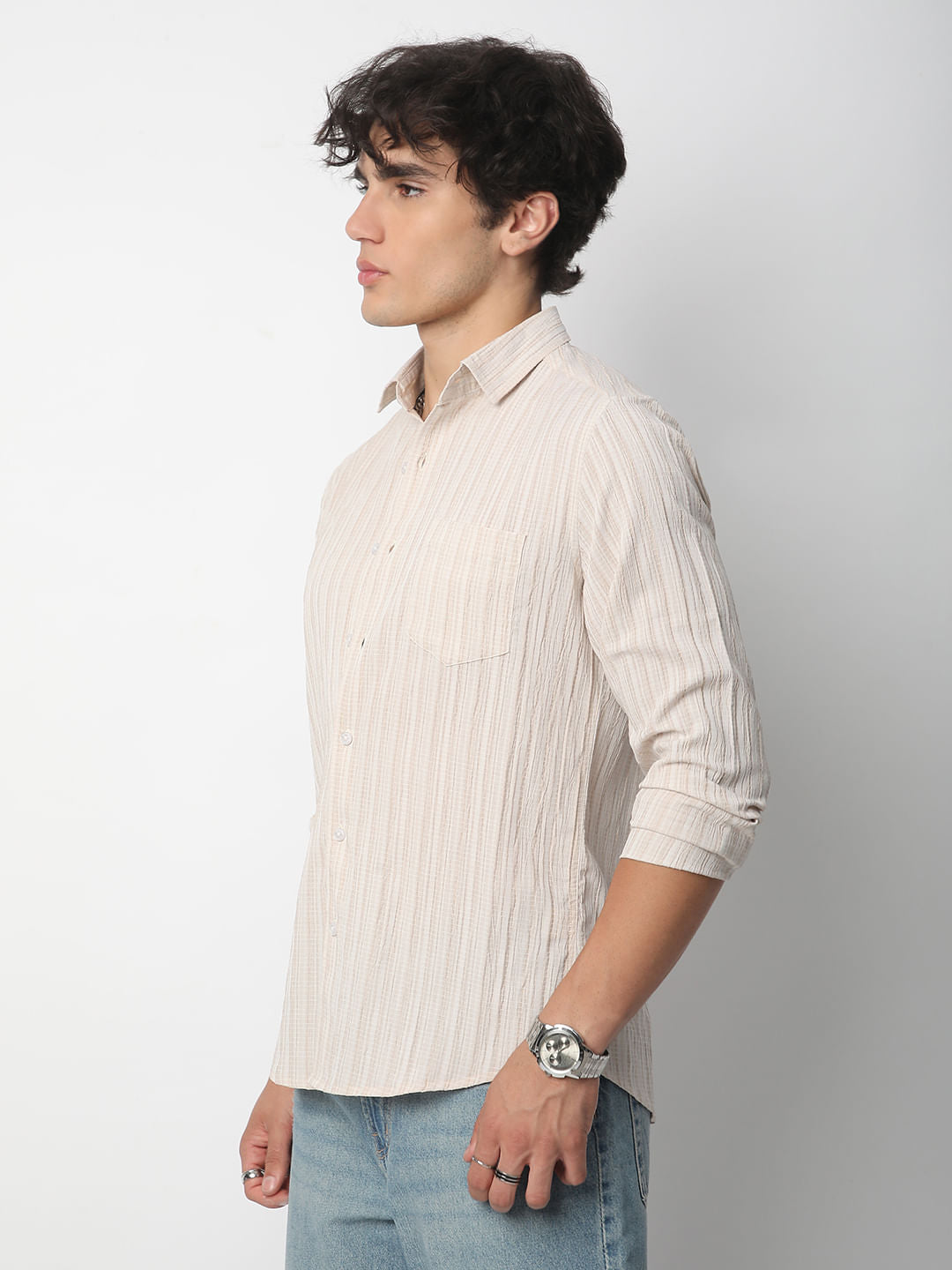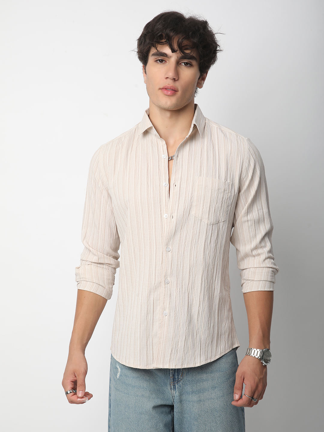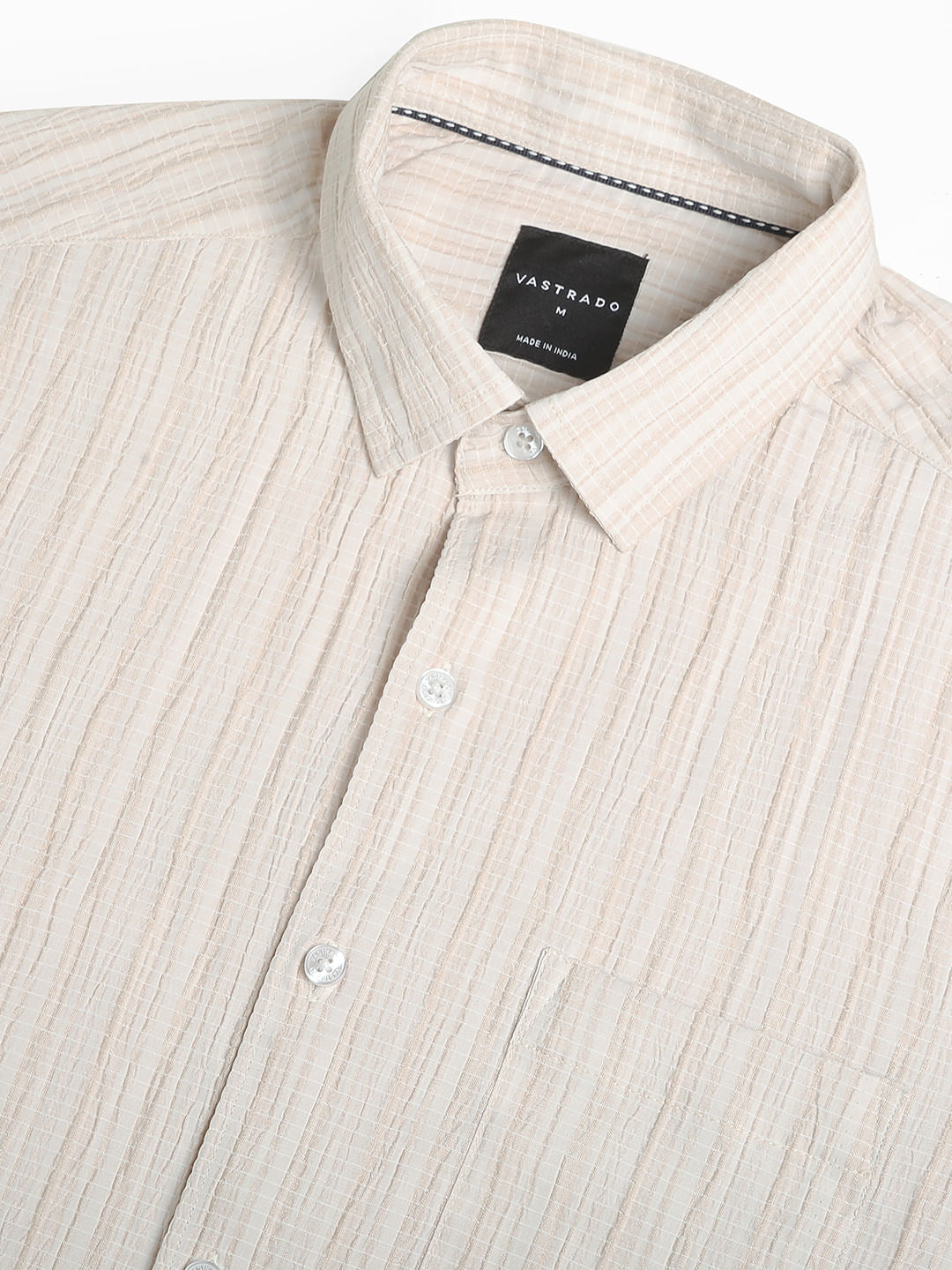 Introducing our Brush Stroke Beige Textured Shirt, where art meets fashion. With its captivating design and contemporary flair, this shirt by VASTRADO adds a touch of creativity and sophistication to your wardrobe, perfect for making a stylish statement.