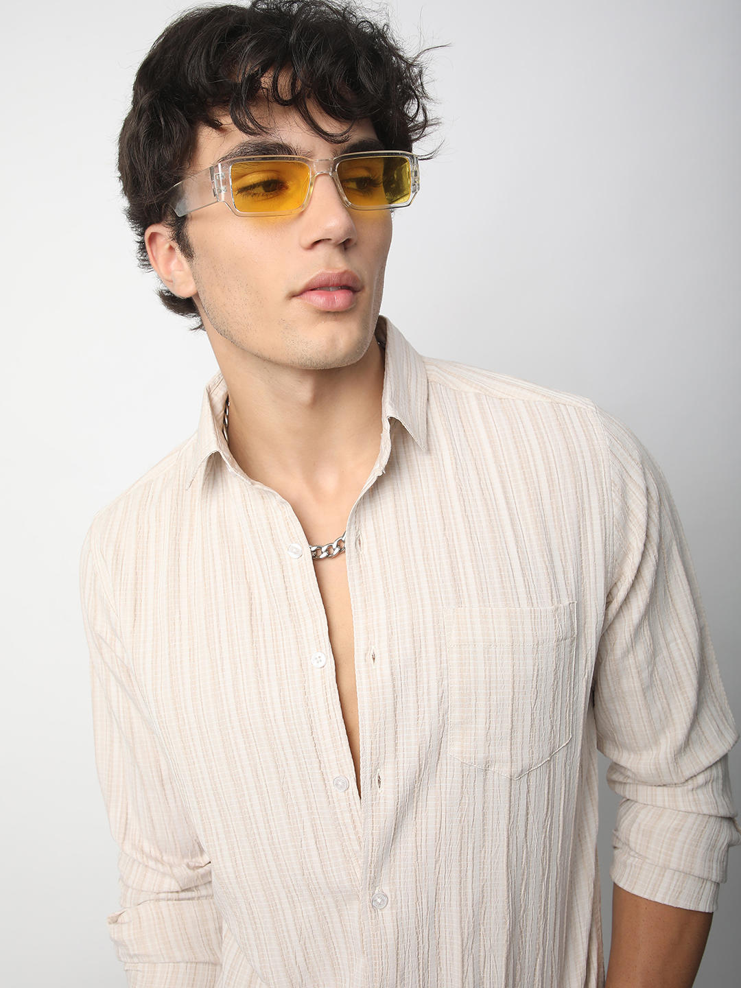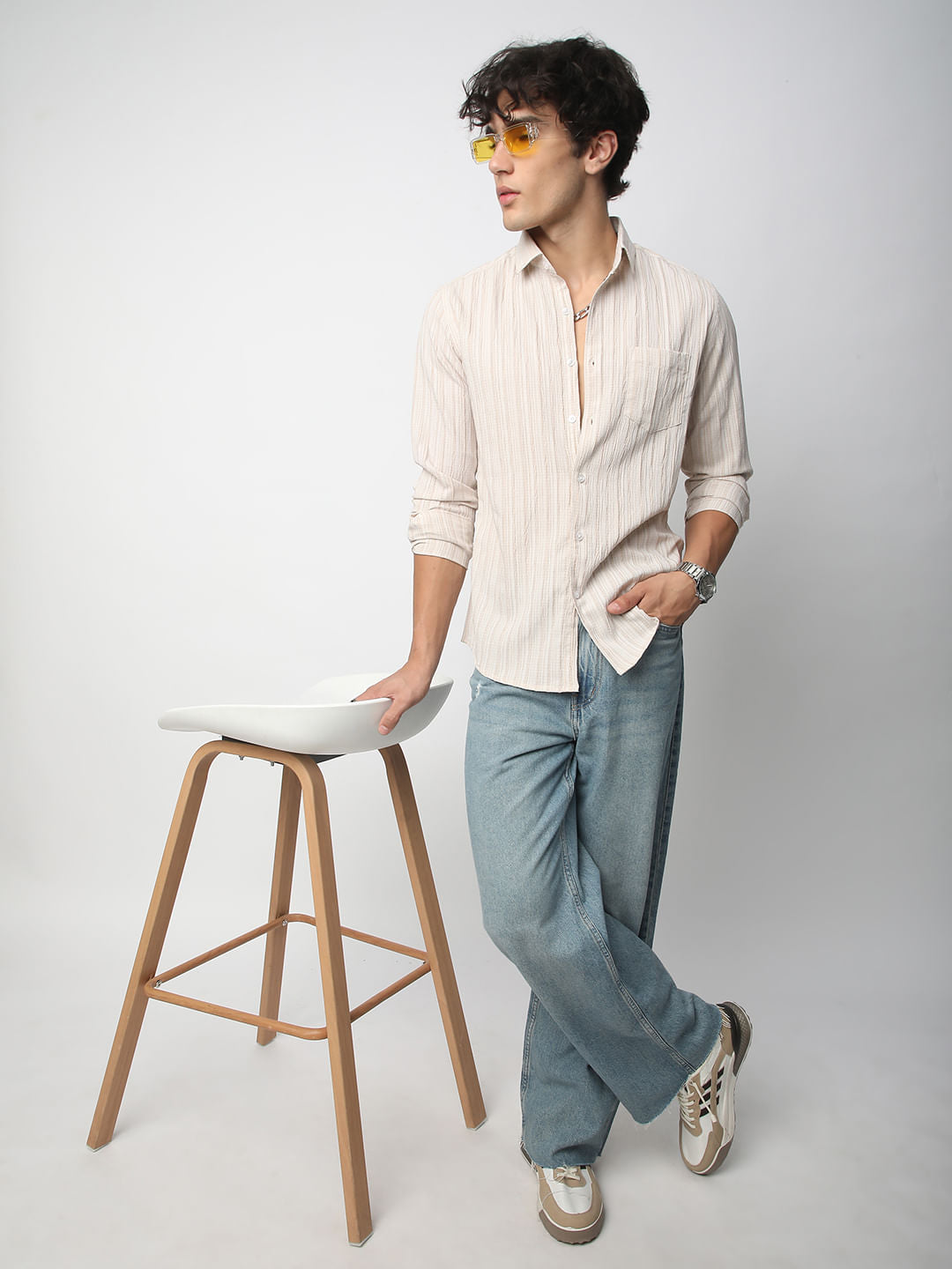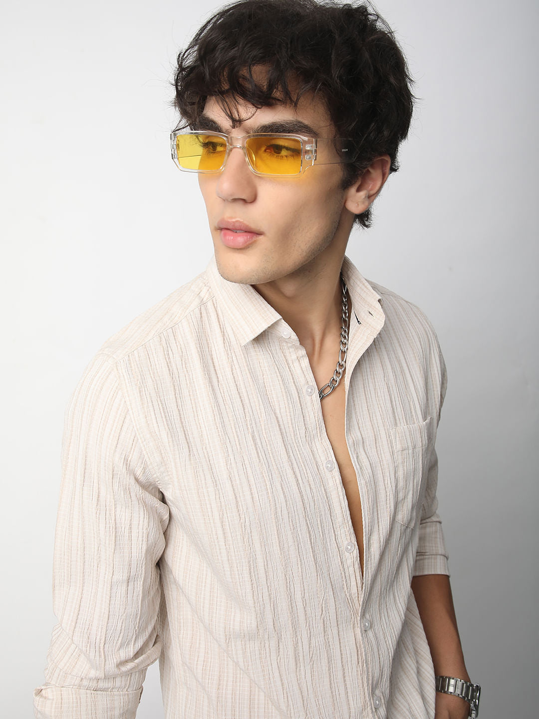 Introducing our Brush Stroke Beige Textured Shirt, where art meets fashion. With its captivating design and contemporary flair, this shirt by VASTRADO adds a touch of creativity and sophistication to your wardrobe, perfect for making a stylish statement.