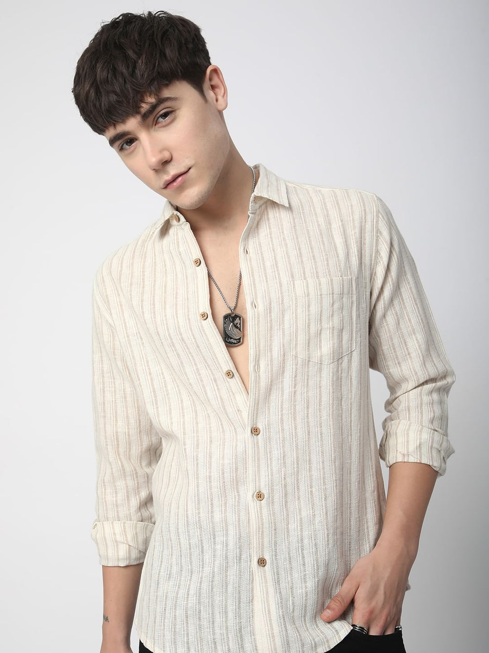 Burlap Bisque Beige Line Stripe Shirt