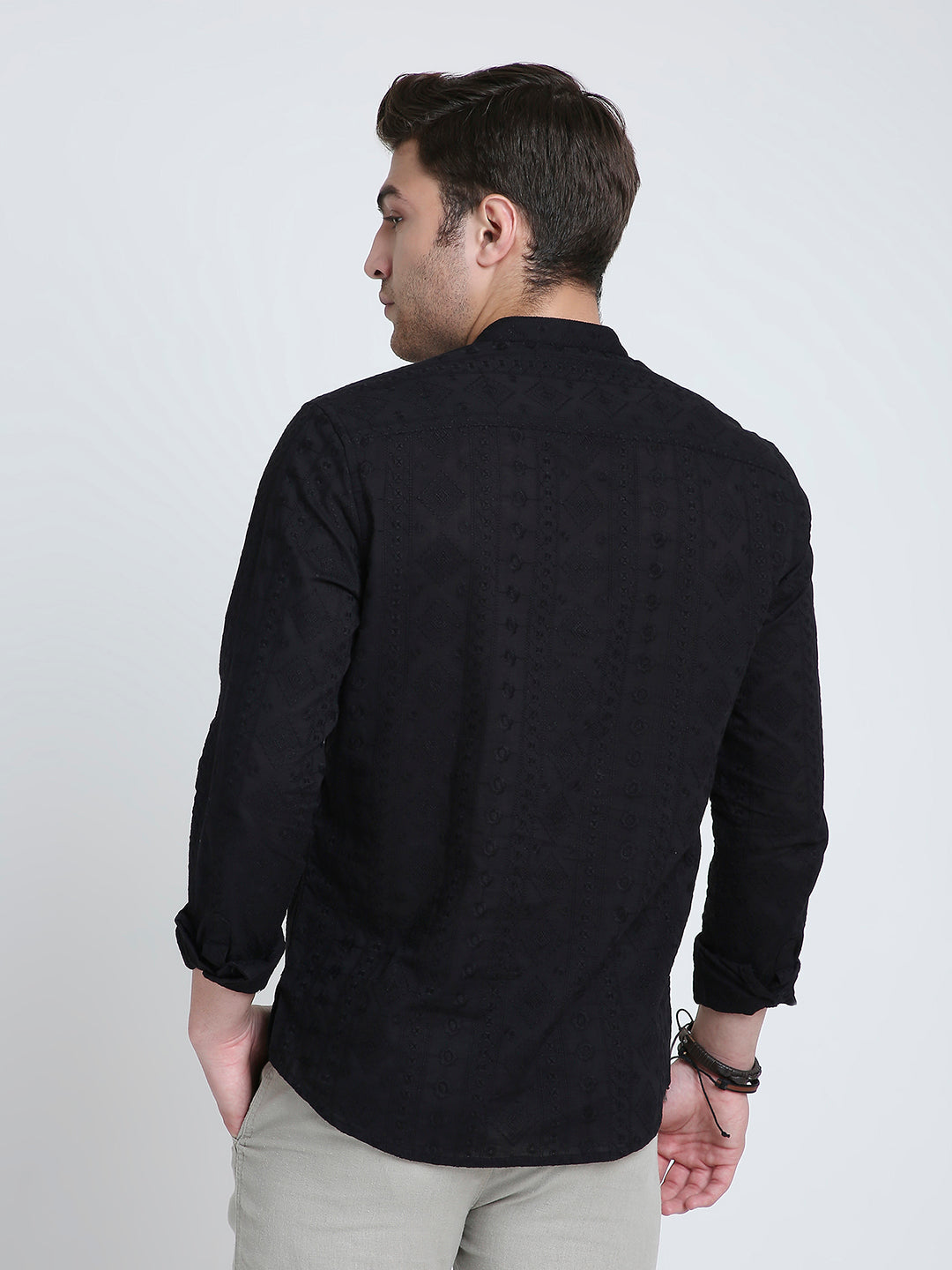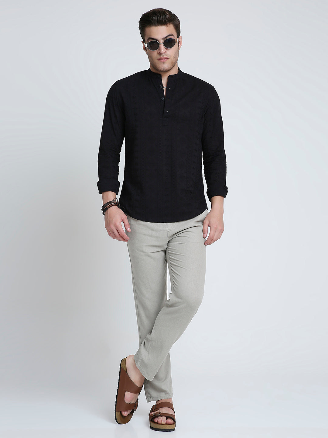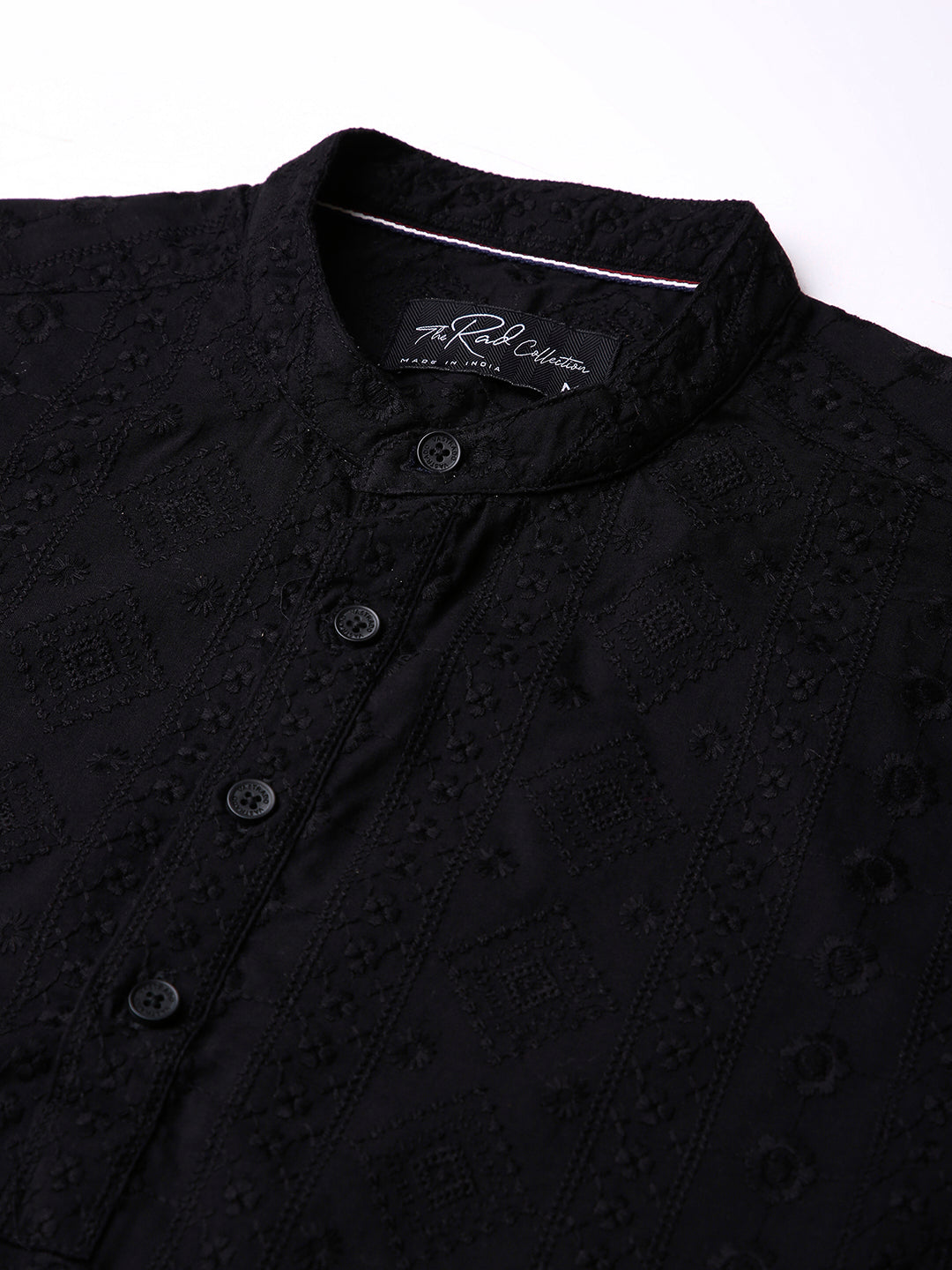 Elevate your ethnic style with this Classic Blackout Embroidered Kurta. Adorned with intricate embroidery, this piece blends understated elegance with artisanal charm. The rich black tone adds timeless sophistication, making it a perfect choice for celebrations, formal events, or elegant casual wear. Soft, breathable fabric ensures lasting comfort while keeping your look refined.