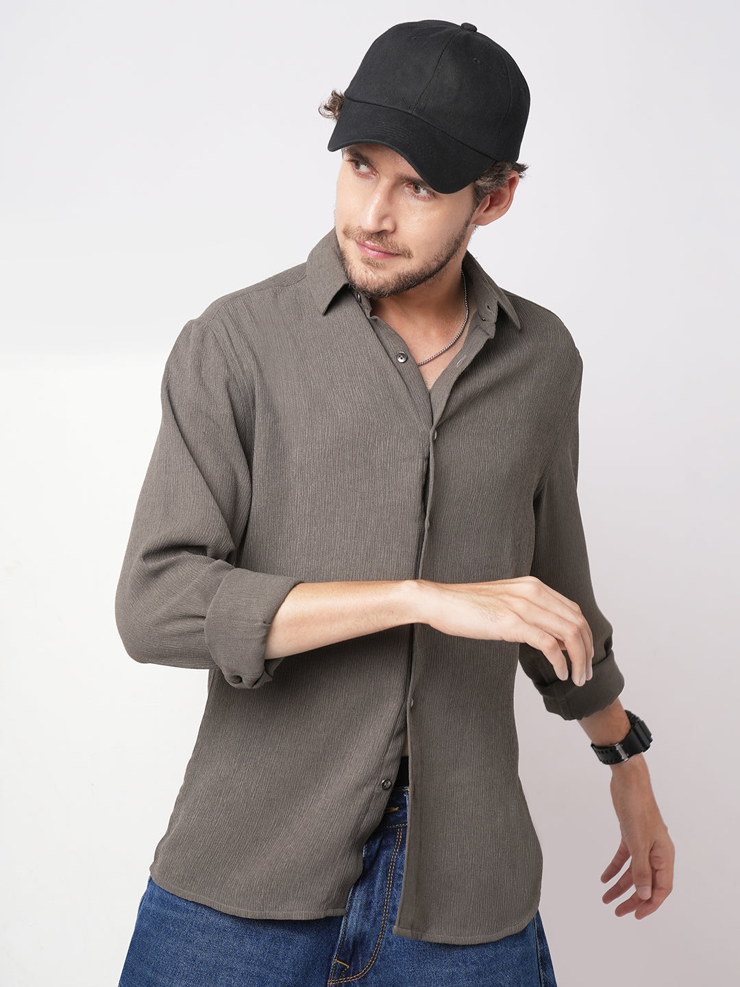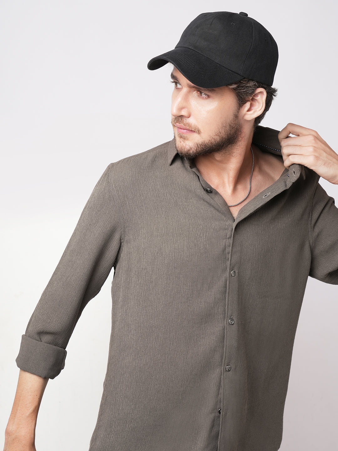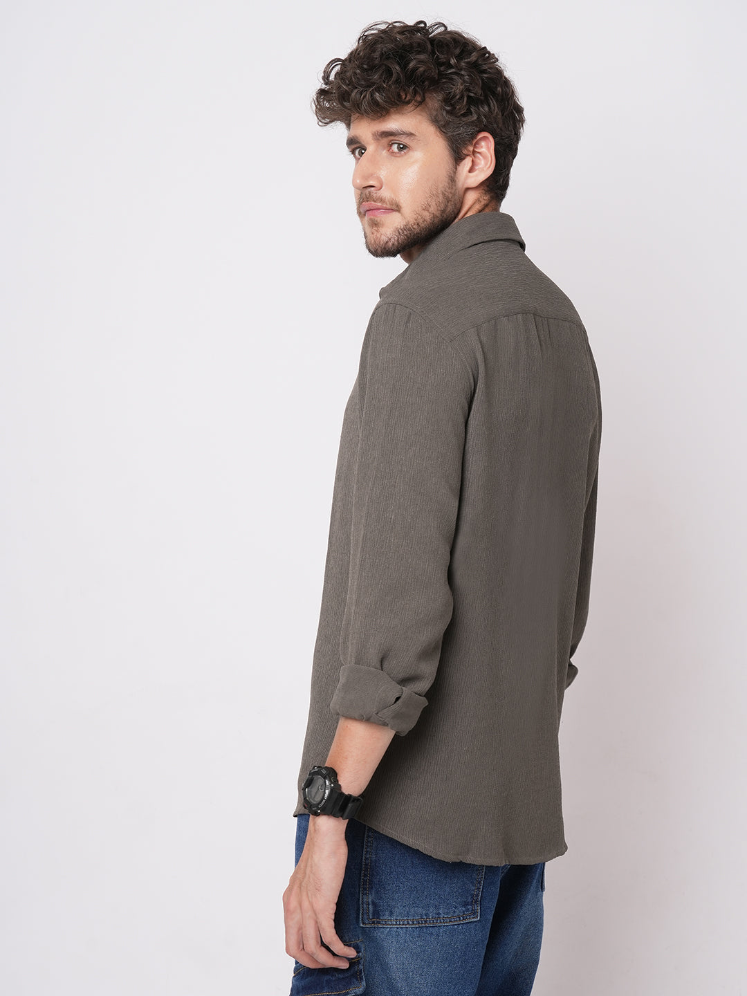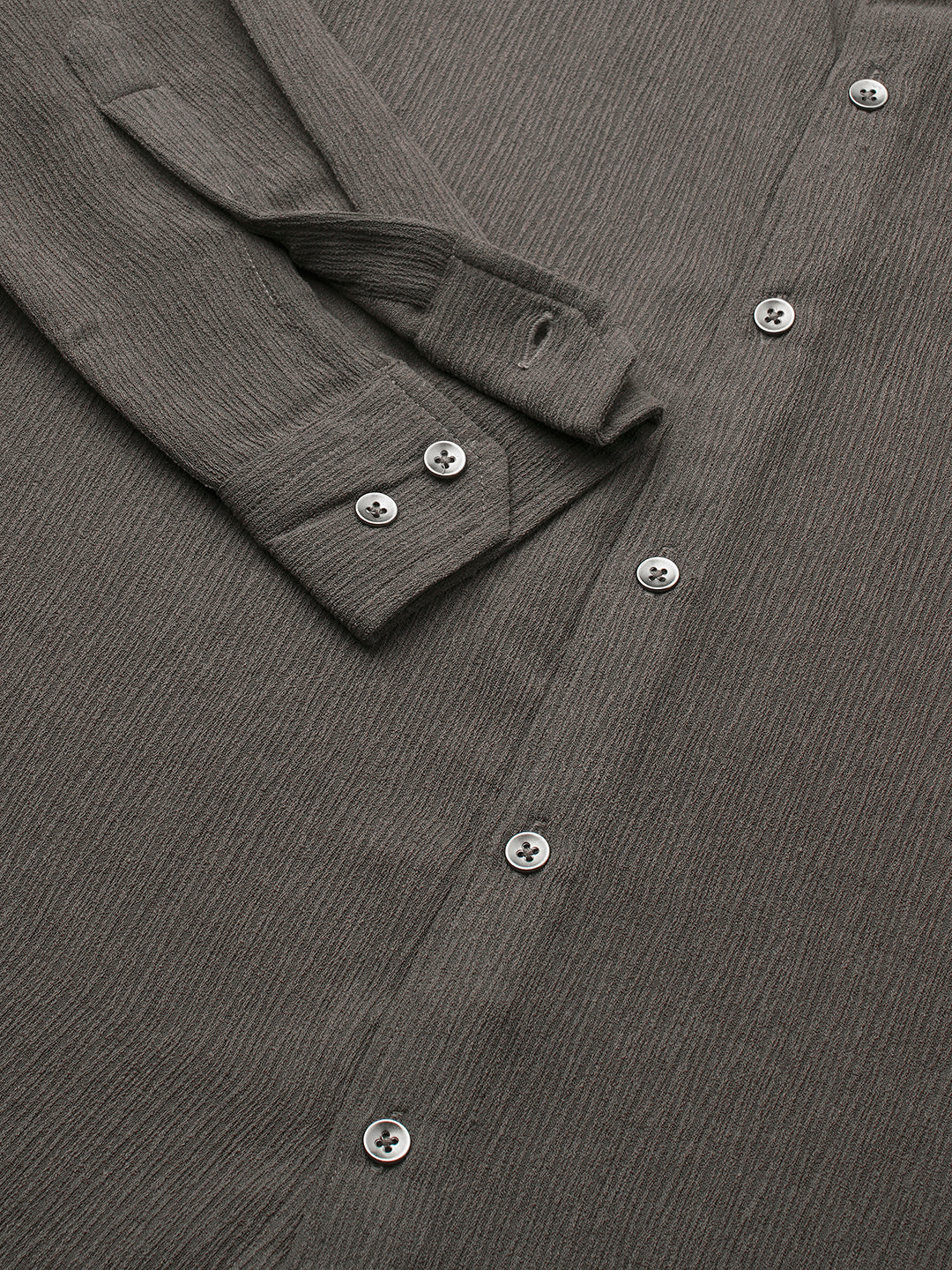 Upgrade your wardrobe with this Crushed Warm Grey Crepe Shirt. Designed in premium crushed fabric with a unique textured finish, this shirt in warm grey combines comfort, durability, and style. Ideal for casual wear, travel, or layering in cooler weather, it’s a versatile shirt that adds depth and a rugged edge to your everyday look.