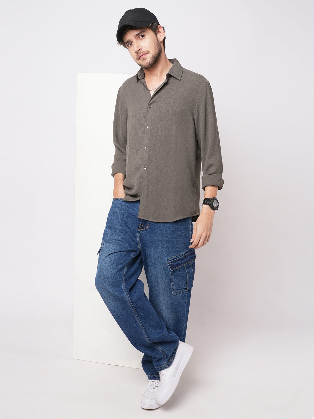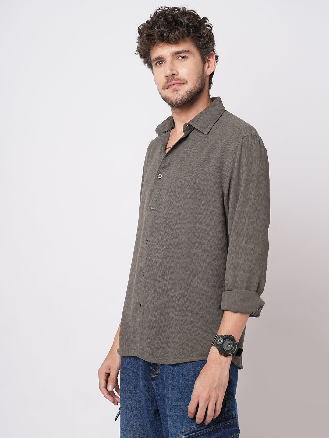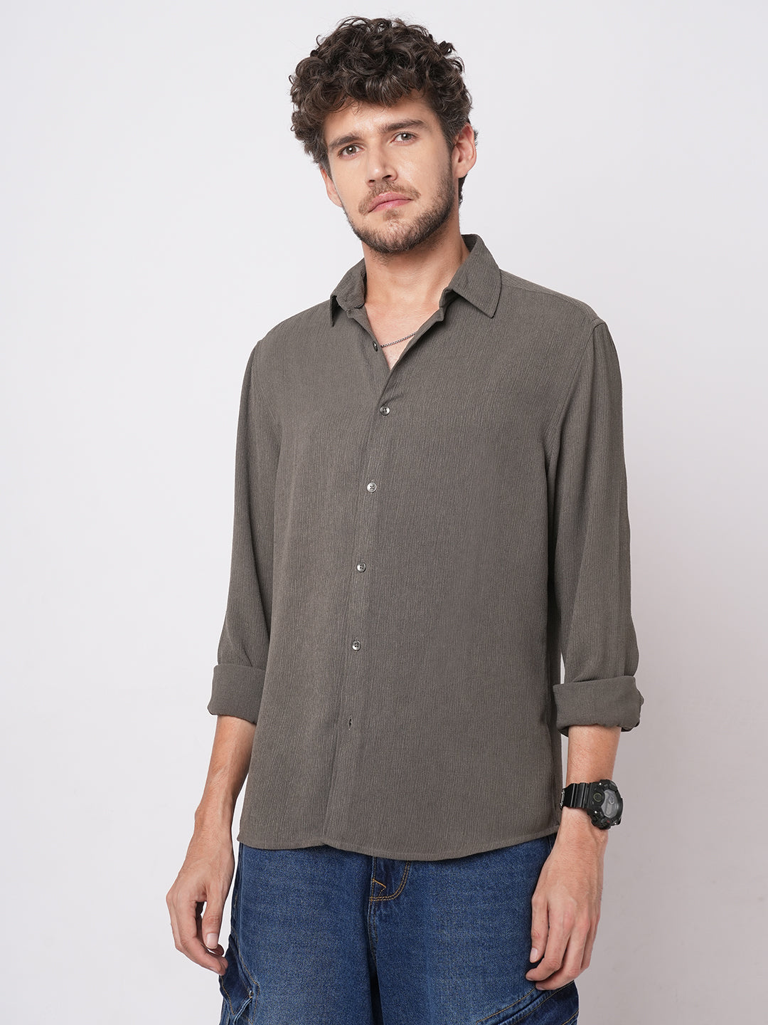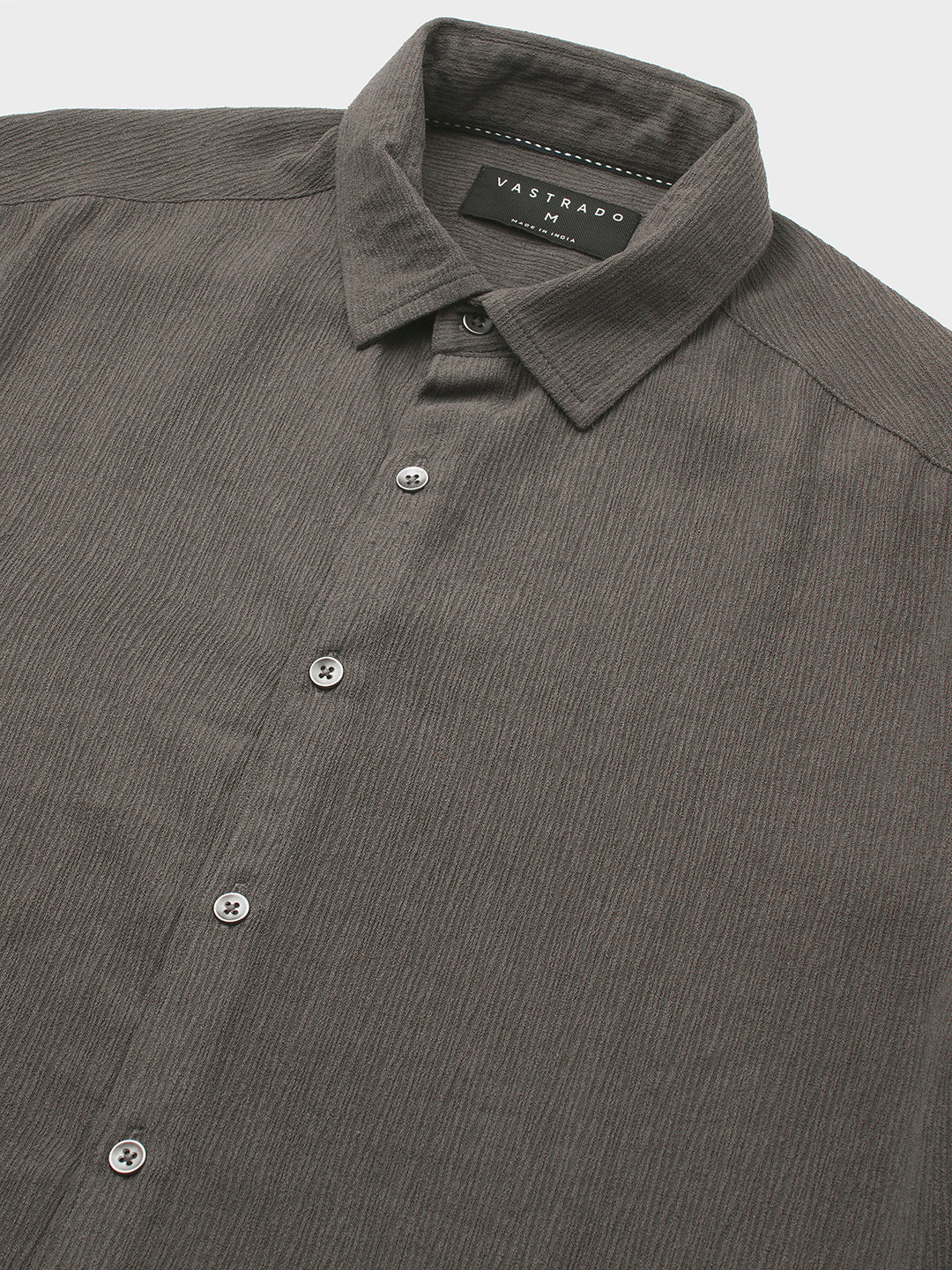 Upgrade your wardrobe with this Crushed Warm Grey Crepe Shirt. Designed in premium crushed fabric with a unique textured finish, this shirt in warm grey combines comfort, durability, and style. Ideal for casual wear, travel, or layering in cooler weather, it’s a versatile shirt that adds depth and a rugged edge to your everyday look.