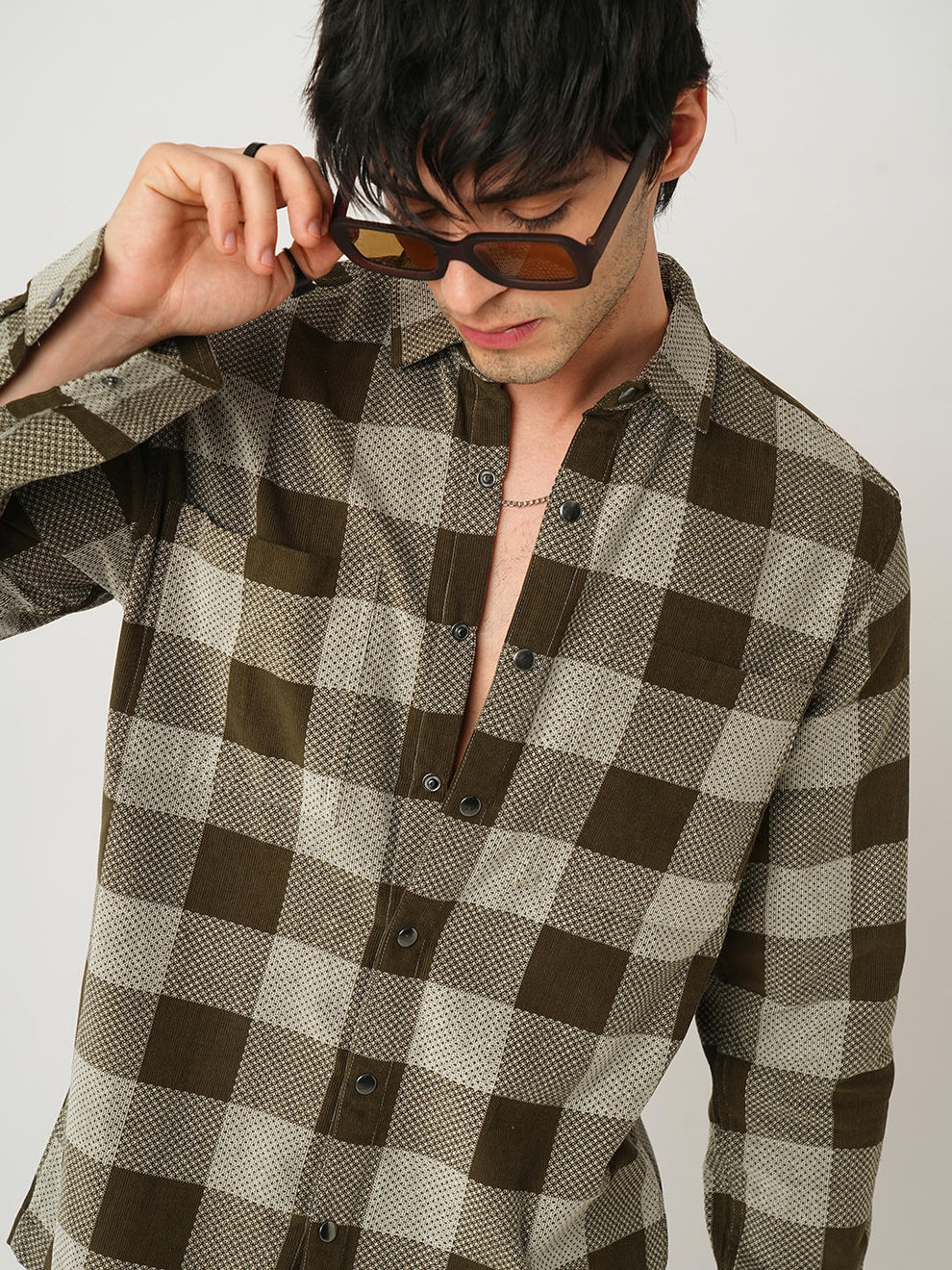 Dappled Brownish Green Double Pocket Corduroy Overshirt