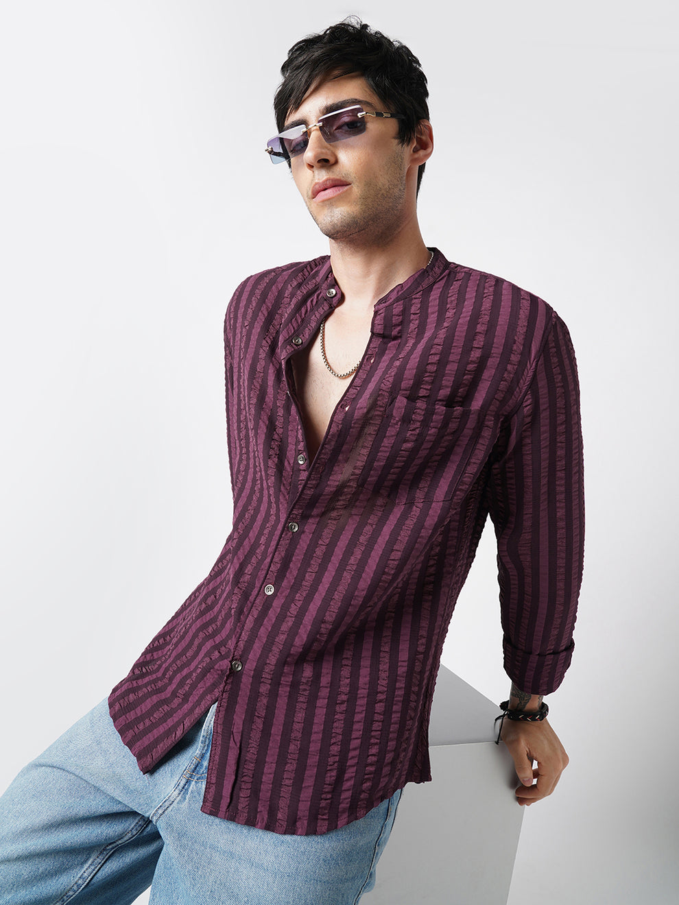 Introducing our Debonair Awning Wine Striped Shirt, a versatile addition to your wardrobe. Made with premium quality fabric, this shirt offers exceptional comfort and durability. Upgrade your wardrobe today with this must have piece.