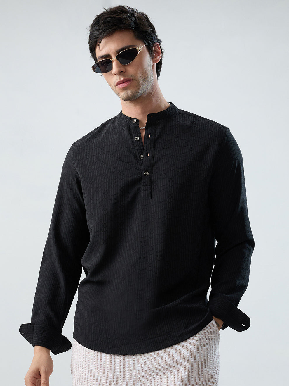 Step into timeless style with this Detailed Black Jacquard Grace Kurta.Crafted from soft, breathable fabric, it features a rich jacquard weave pattern that adds depth and character. Ideal for festive occasions or casual gatherings, this kurta combines comfort with a distinguished, elegant look.