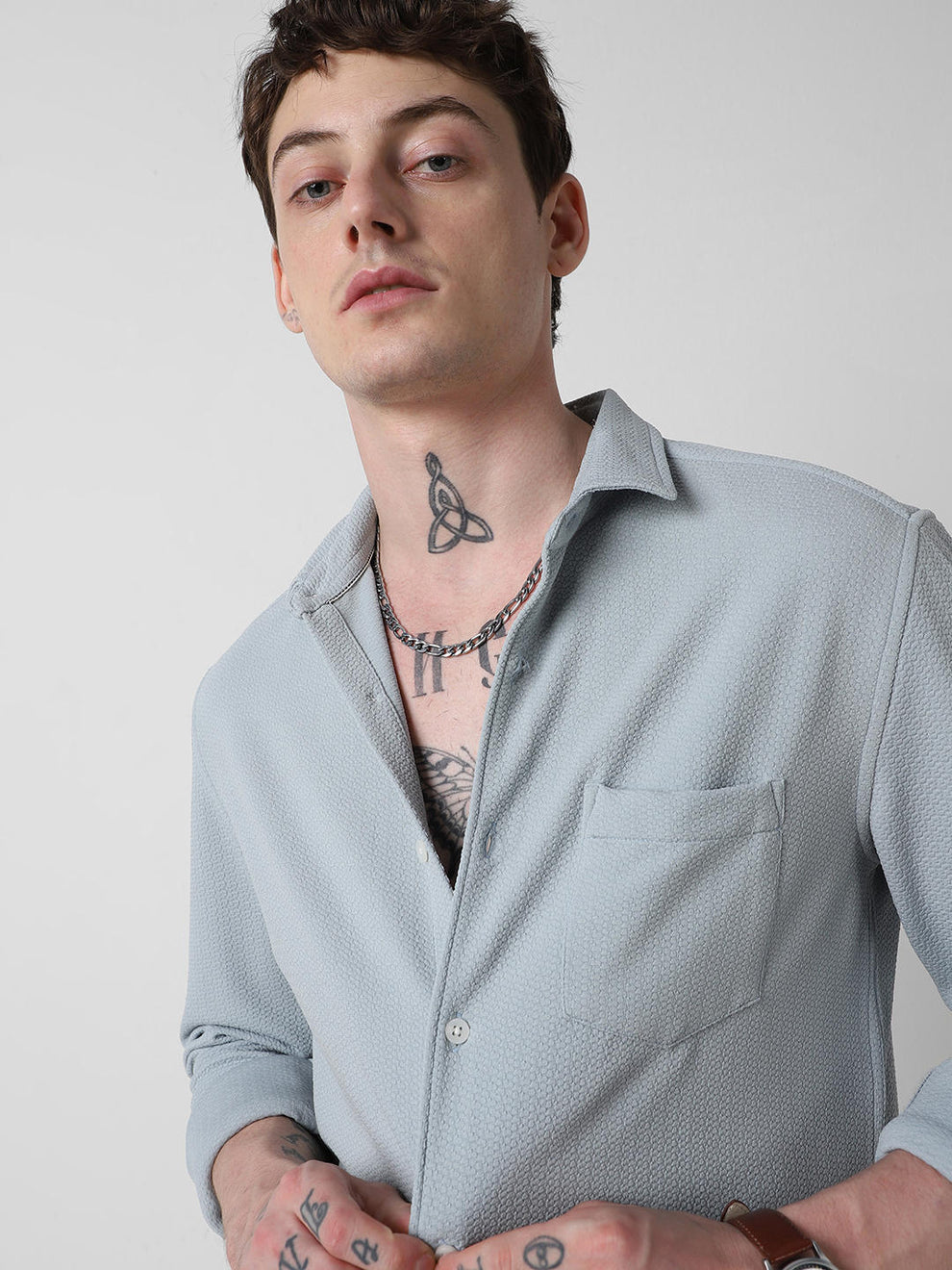 Detailed Turkish Blue Jacquard Shirt