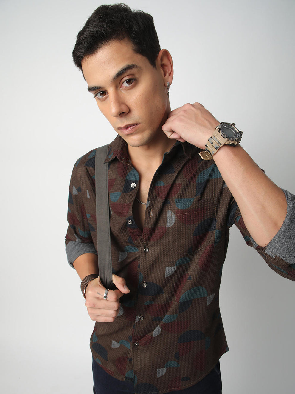 Immerse yourself in a world of abstract art with our full-sleeve Waffle Textured Shirt by VASTRADO'S RAD COLLECTION. This unique piece features a captivating blend of colours and shapes, creating a dynamic and eye-catching design. Crafted from premium fabric, it offers both style and comfort. Perfect for those who dare to be different, this shirt effortlessly transitions from casual to contemporary.