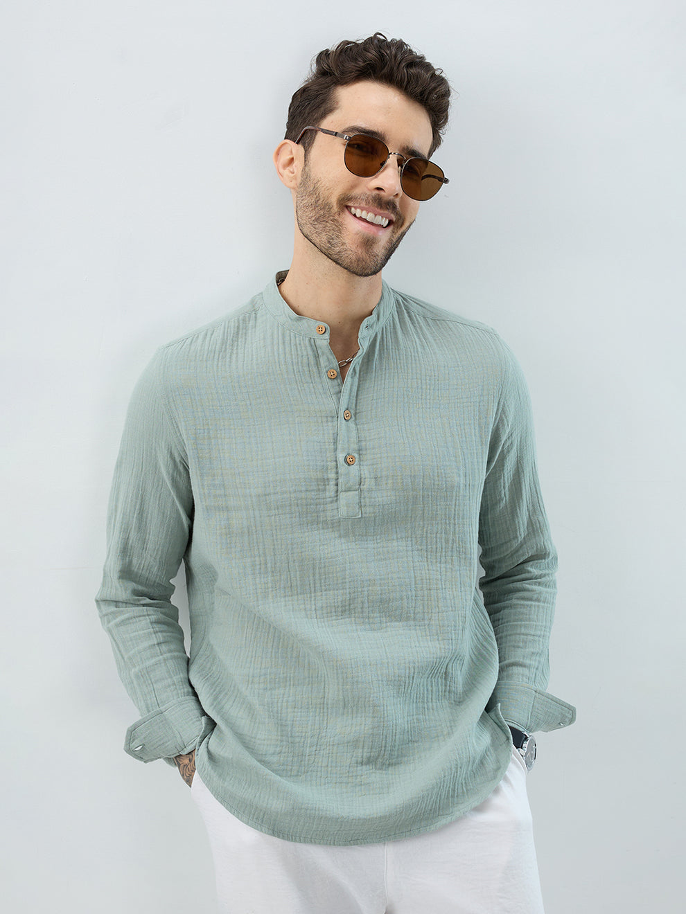 This Elegant Seafoam Green Double Cloth Kurta brings a fresh, vibrant touch to your wardrobe. Made from soft double-cloth fabric, it offers a lightweight, comfortable fit with a clean, structured look. The soothing seafoam green shade adds subtle character while keeping the style modern and versatile. Perfect for daytime events, casual gatherings, or festive occasions.