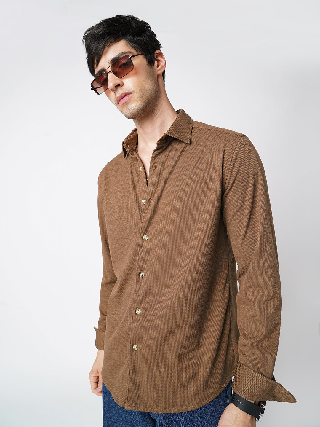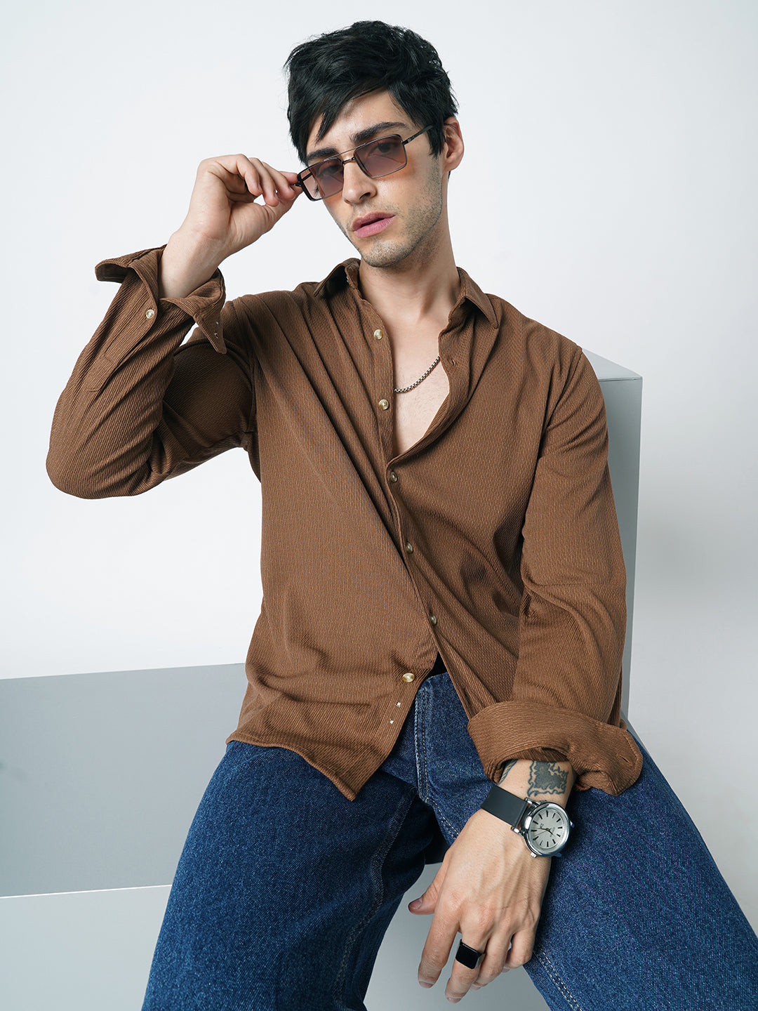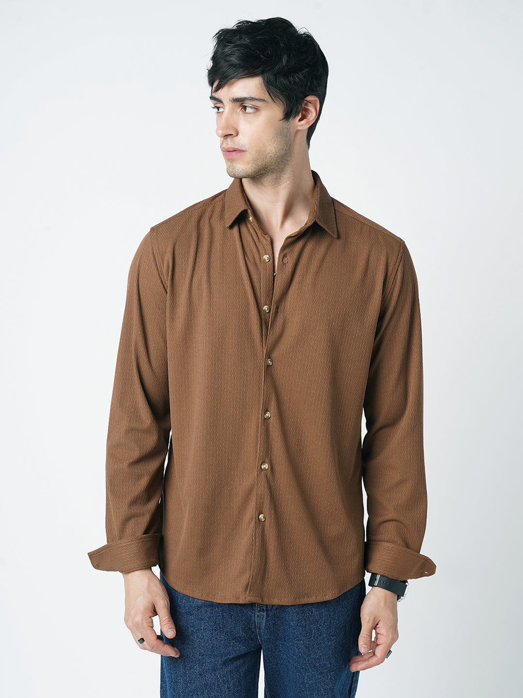 Discover the perfect blend of style and comfort with our Brown Knitted Shirt. This casual, full-sleeve shirt features a classic collar and convenient button closure, making it an ideal choice for any occasion. Crafted from high-quality fabric, it offers a slim fit that ensures all-day comfort. Elevate your casual look with this must-have shirt perfect for any season. Shop now and experience unmatched style and comfort.
