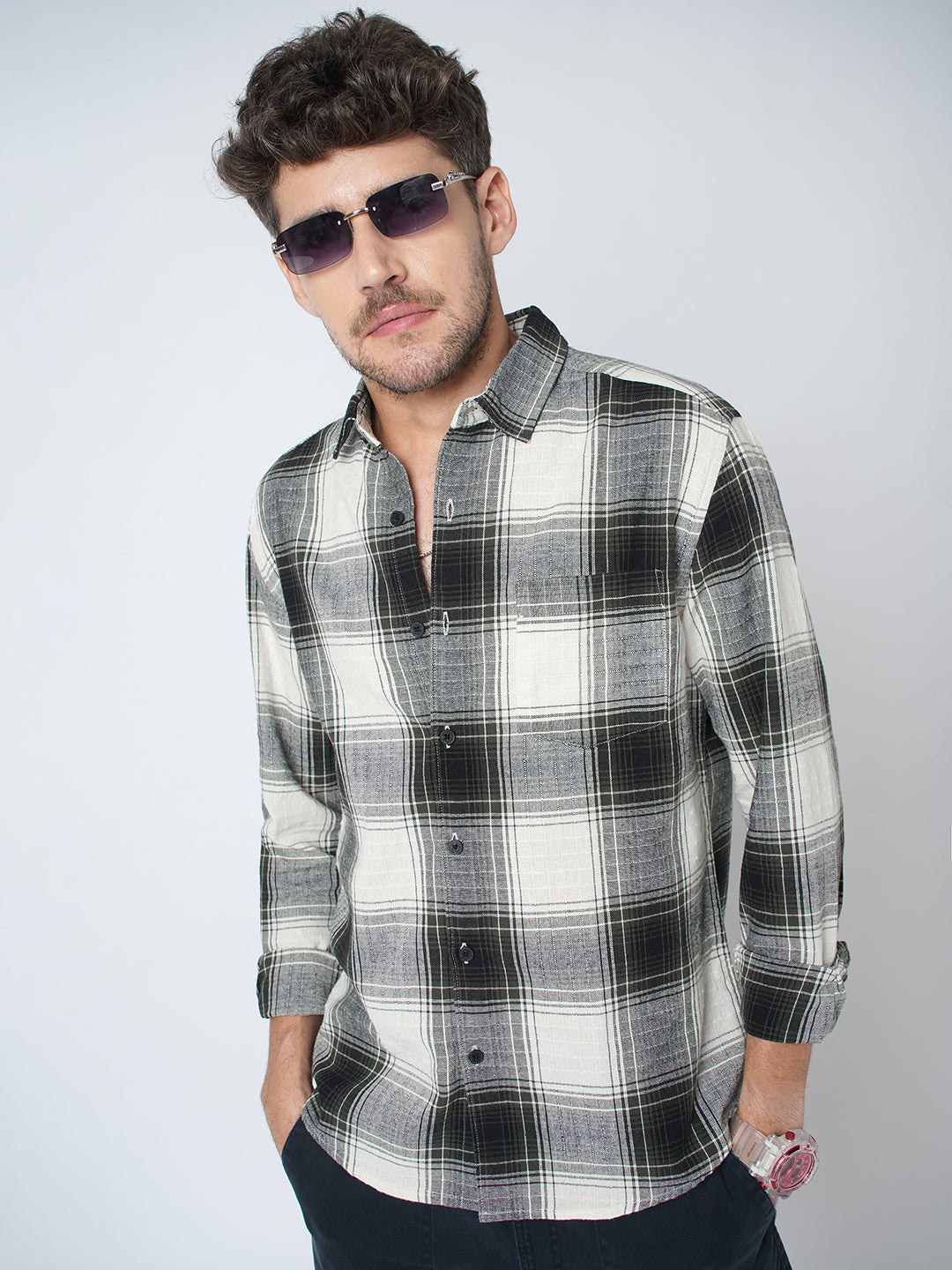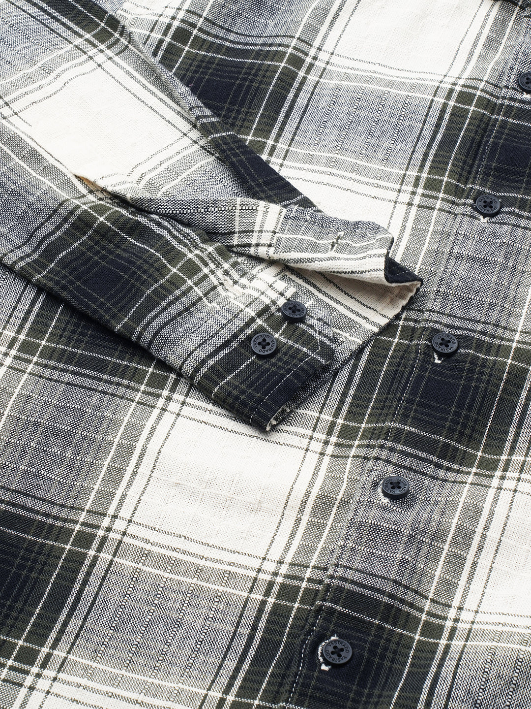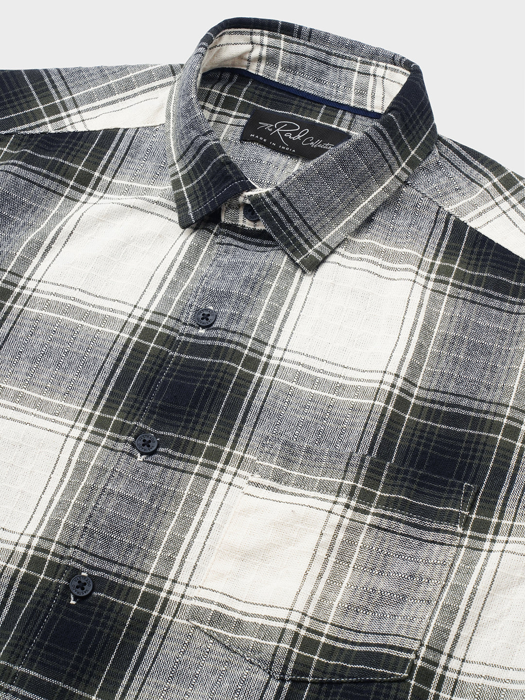 Refined and effortlessly stylish, this Everyday Olive Broad Checks Linen Blend Shirt is a wardrobe staple designed for modern living. Featuring a crisp white base with bold, broad check patterns, this shirt blends timeless sophistication with everyday versatility. Crafted from high-quality, breathable fabric, it ensures all-day comfort and a sharp look, perfect for work, weekends, or anything in between.
