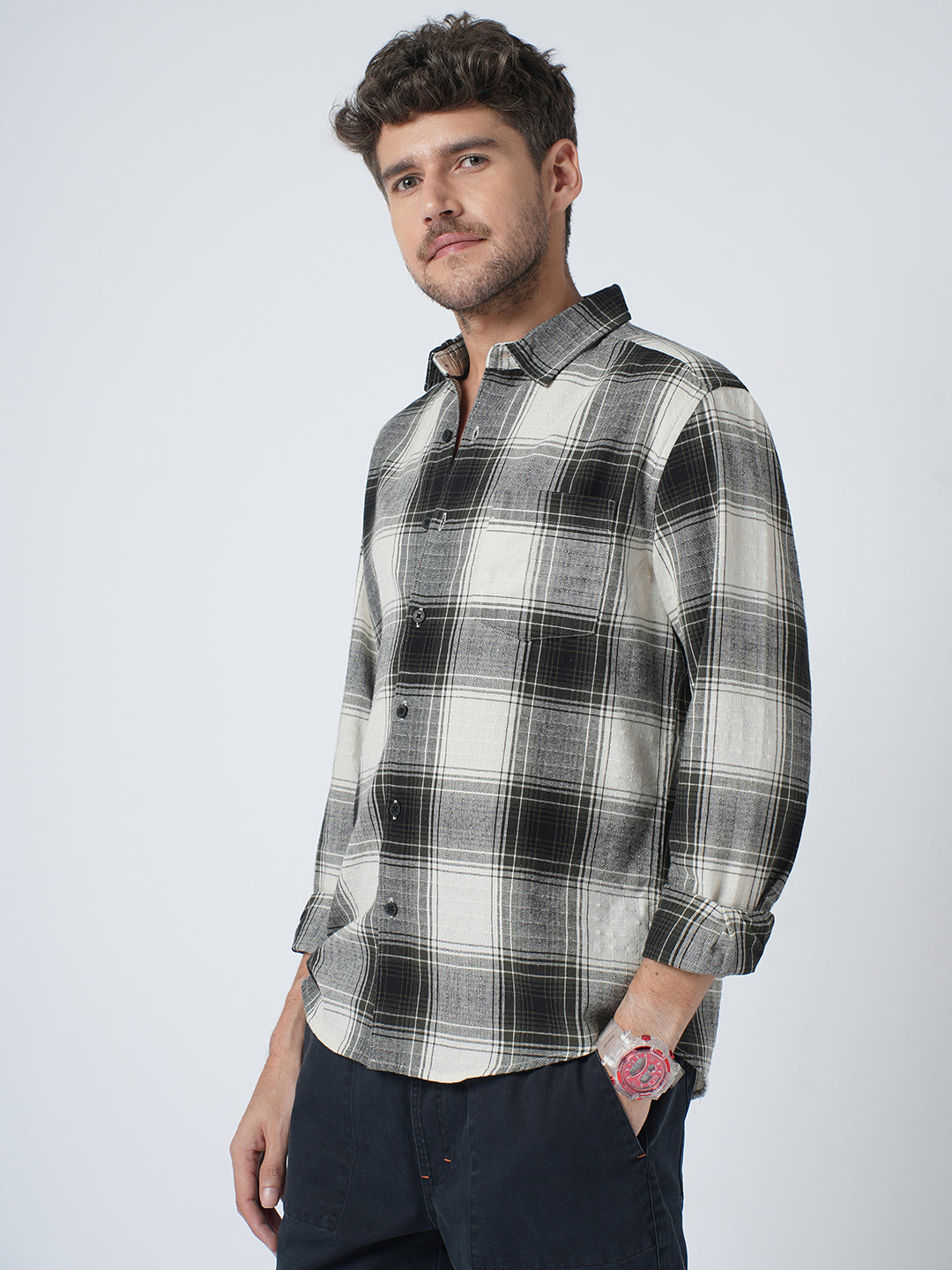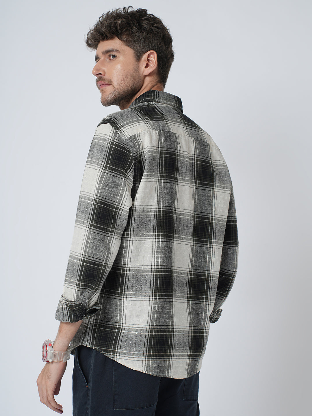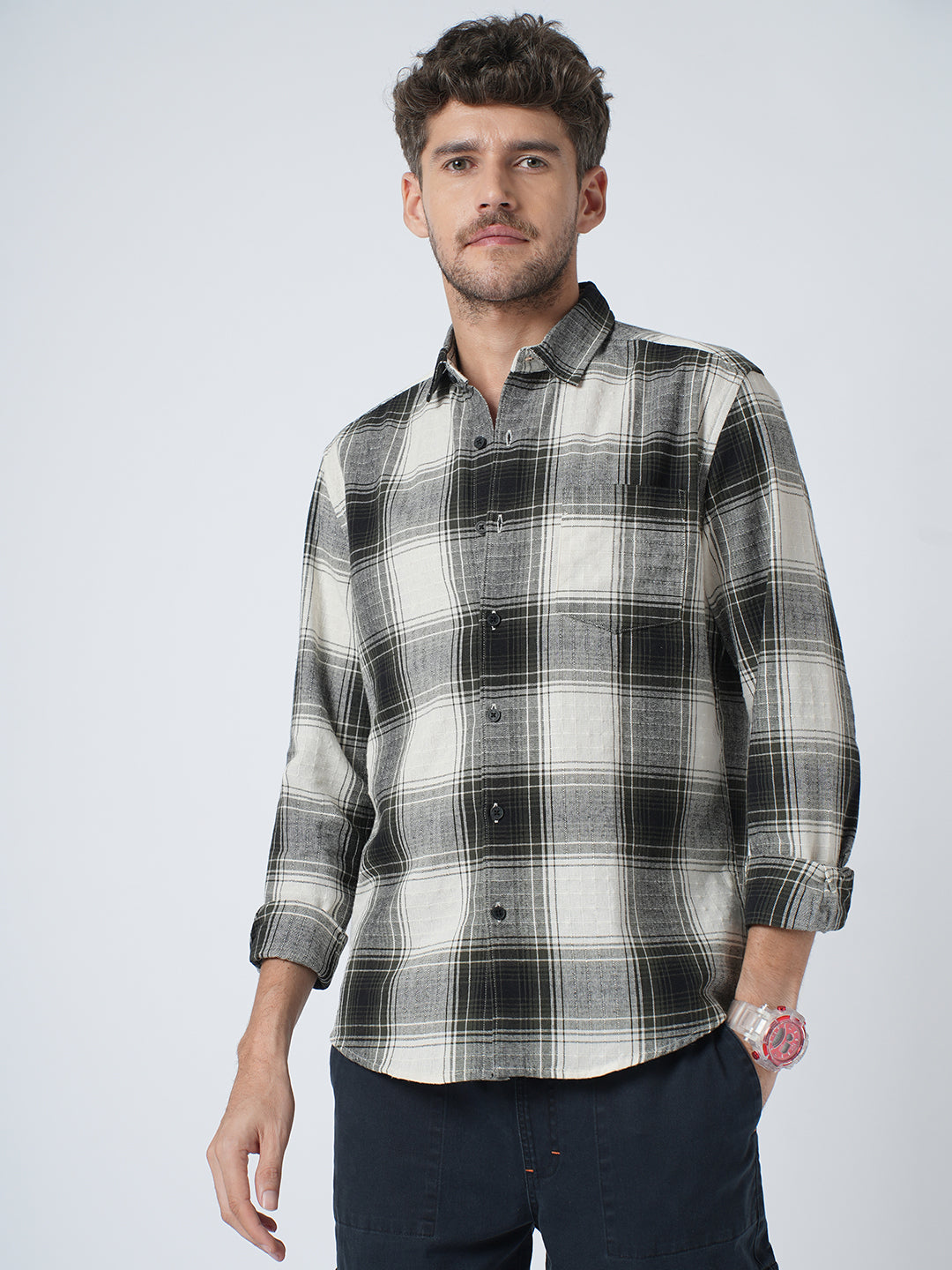 Refined and effortlessly stylish, this Everyday Olive Broad Checks Linen Blend Shirt is a wardrobe staple designed for modern living. Featuring a crisp white base with bold, broad check patterns, this shirt blends timeless sophistication with everyday versatility. Crafted from high-quality, breathable fabric, it ensures all-day comfort and a sharp look, perfect for work, weekends, or anything in between.