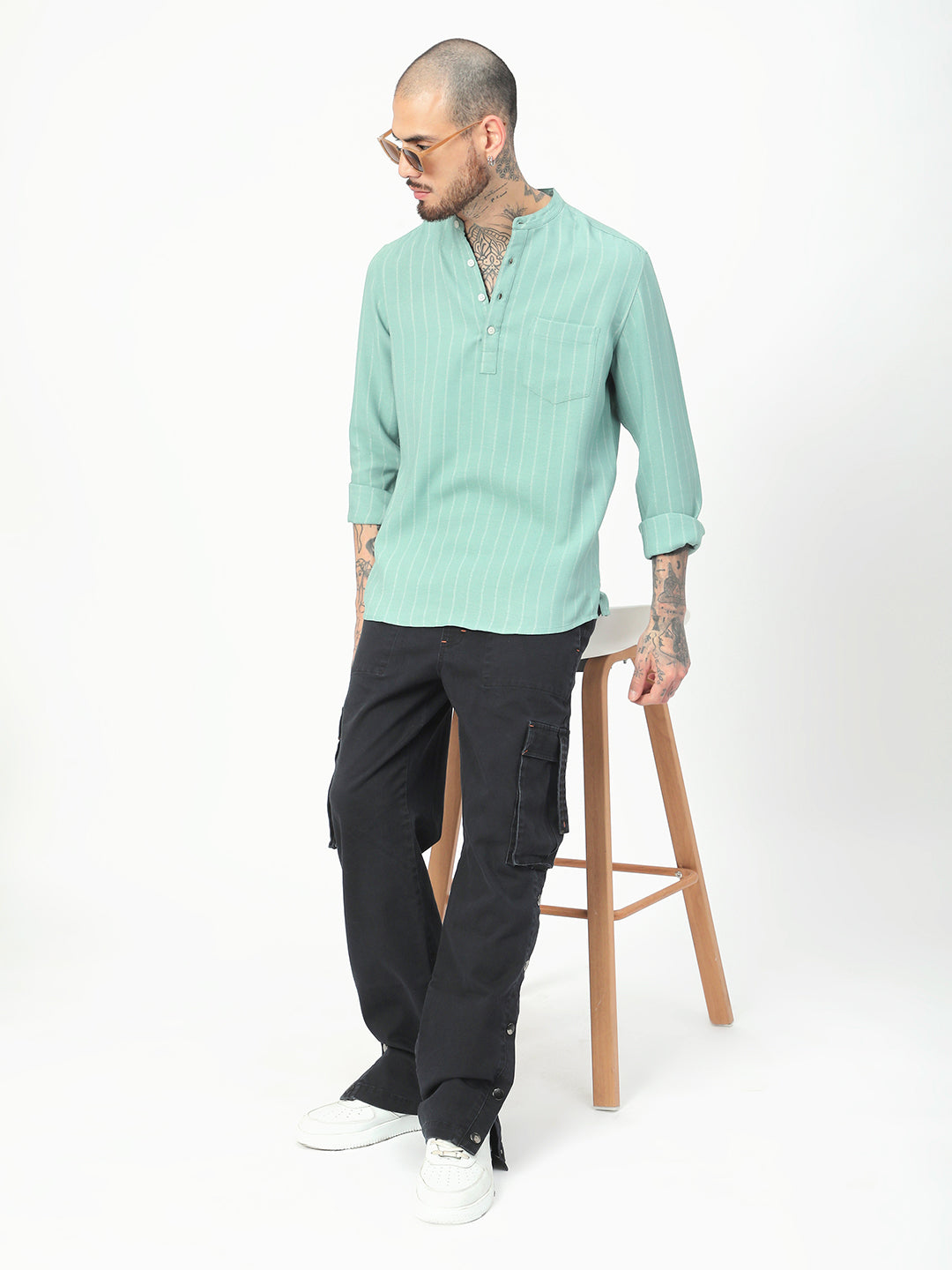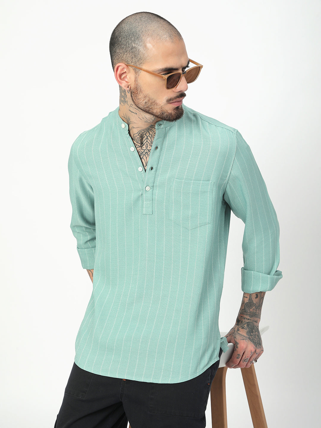Elevate your everyday style with this Fern Green Chalk Striped Kurta. This kurta features a rich fern green color, beautifully complemented by minimalist chalk stripes for a contemporary edge. The breathable, lightweight fabric ensures comfort, while the stylish stripes add a touch of modernity. Perfect for warm-weather outings or relaxed gatherings, this kurta seamlessly combines tradition with a fresh, modern twist.