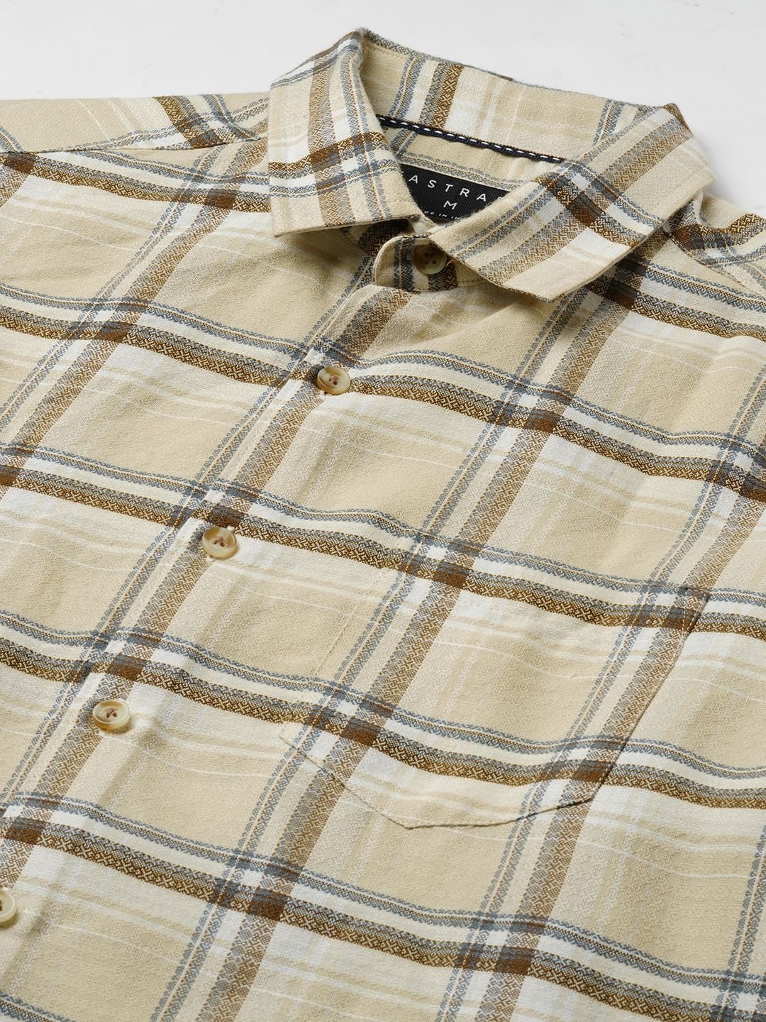Checks that ticks all the boxes. This Beige full-sleeve shirt by VASTRADO is all about mixing classic patterns with modern comfort. With a slim fit that’s never too tight, it’s the shirt you reach for when you want to keep things casual, but with a little more character. Effortless style in every check.