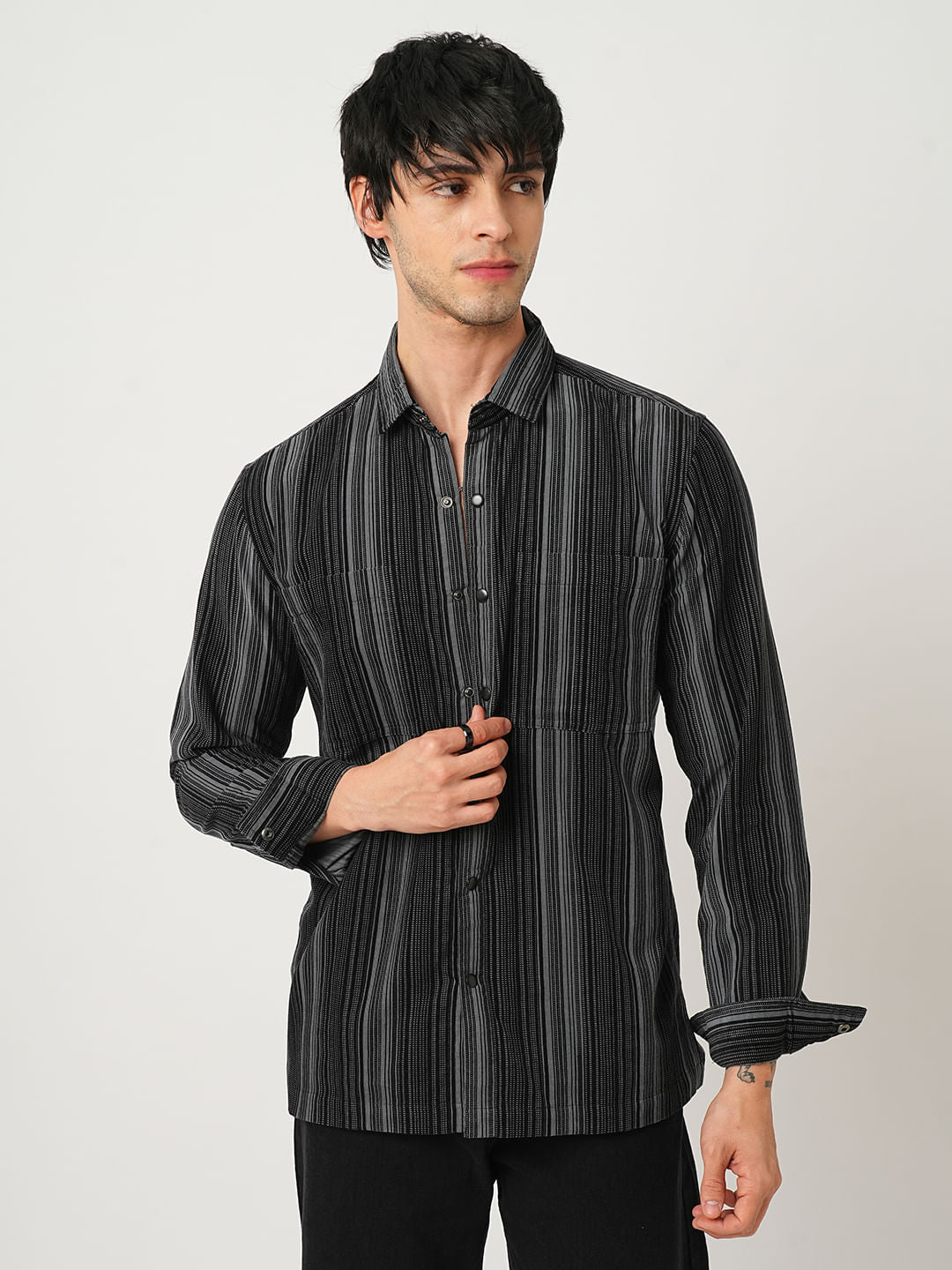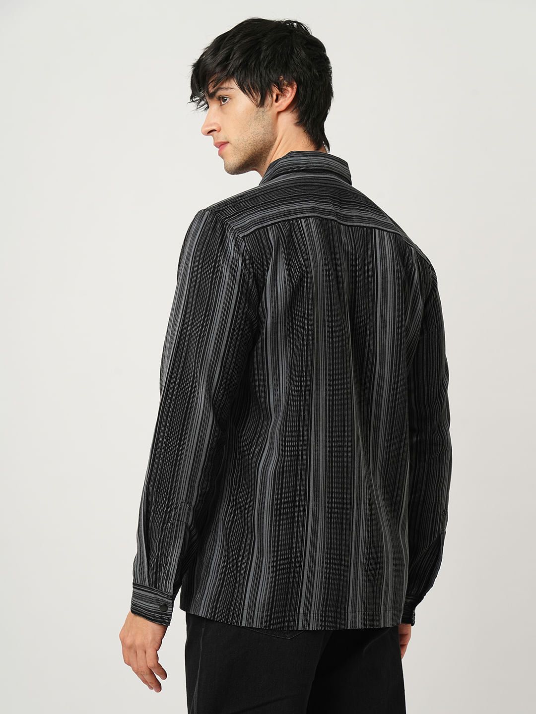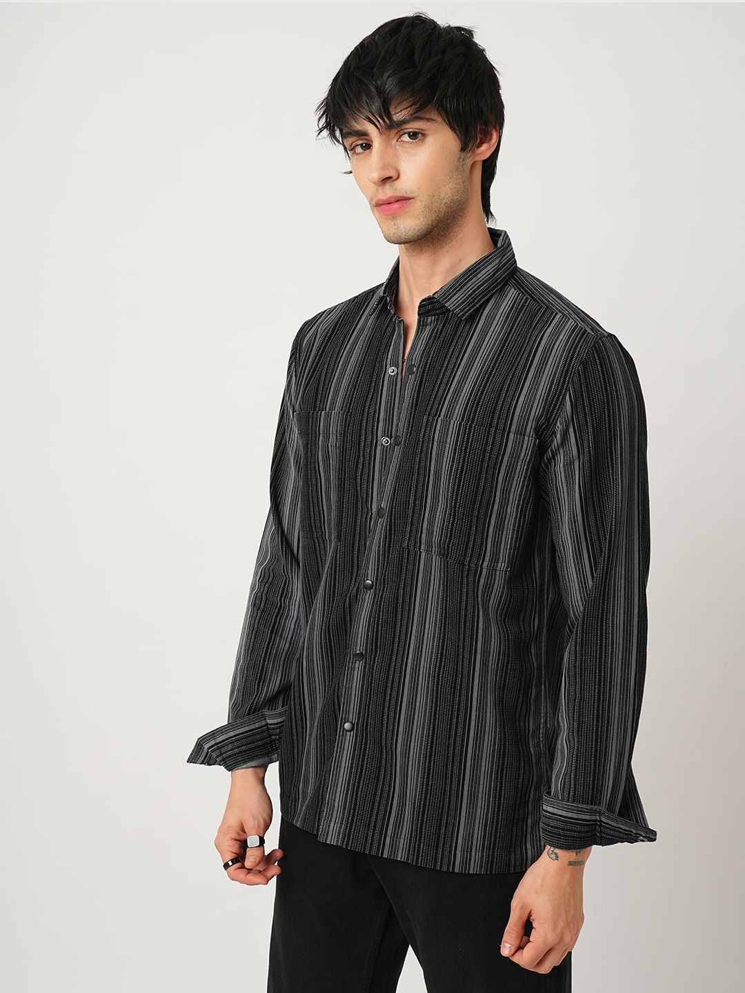 Fog Grey Striped Double Pocket Corduroy Shirt