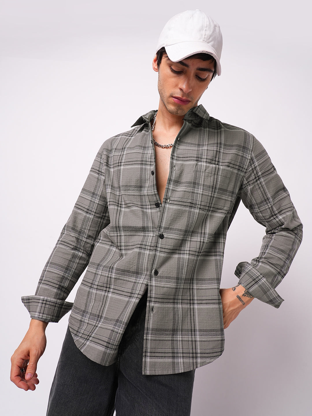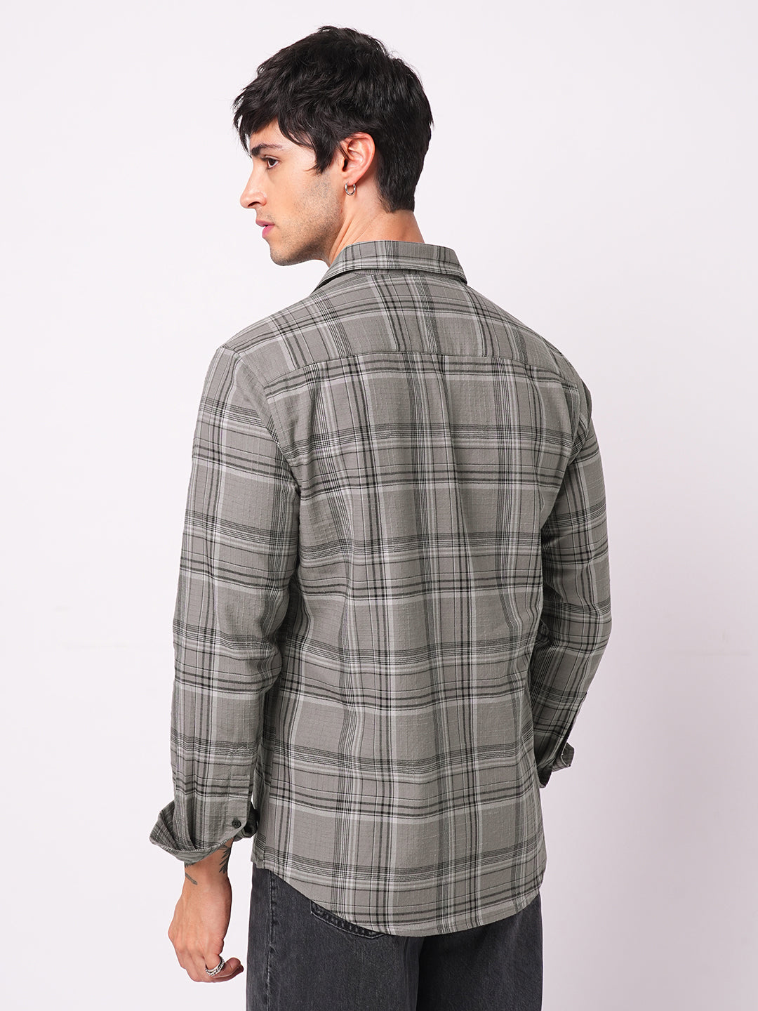 Fossil Grey & Black Tartanique Checkered Textured Shirt