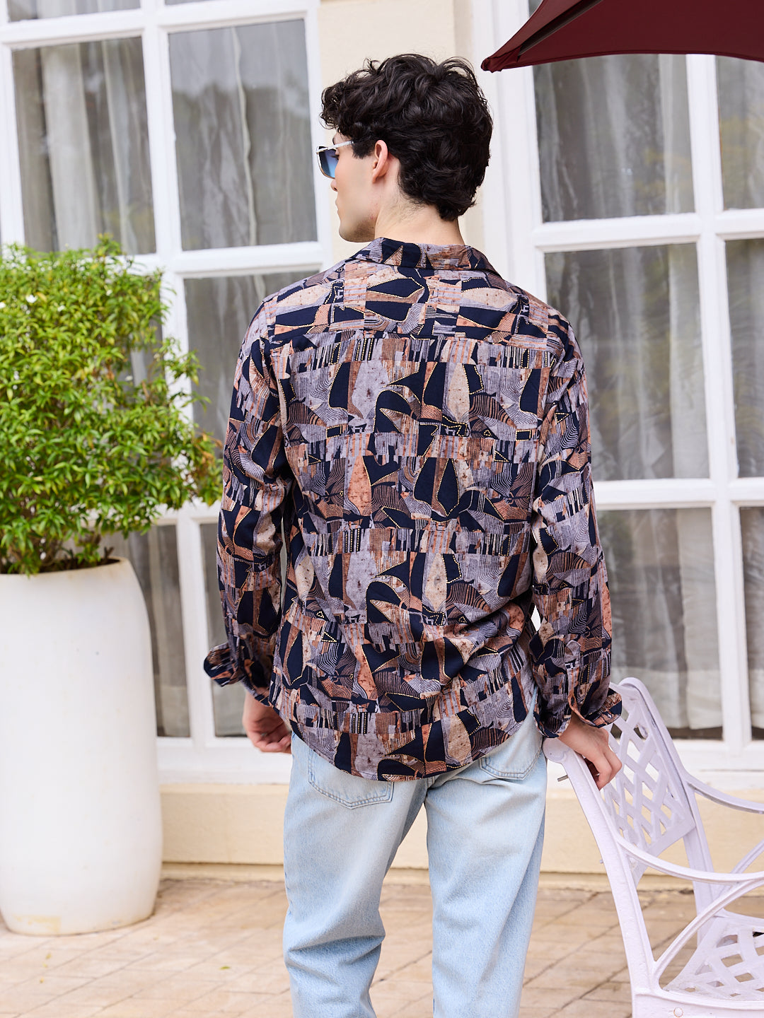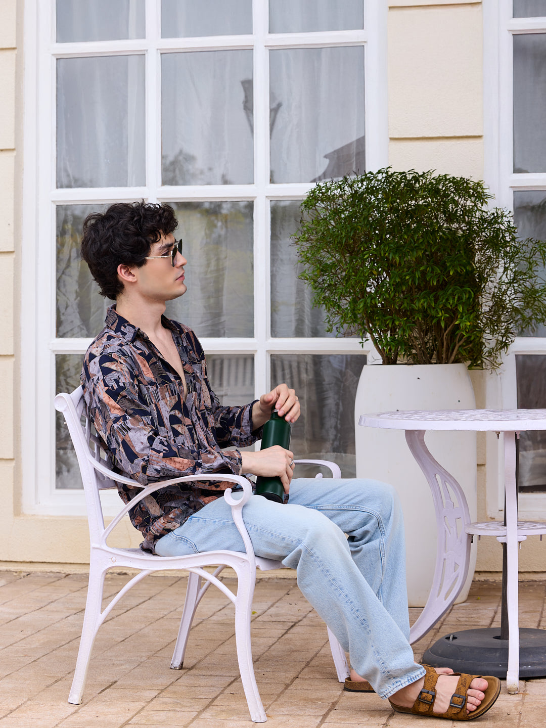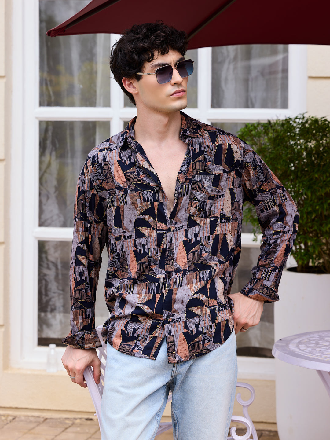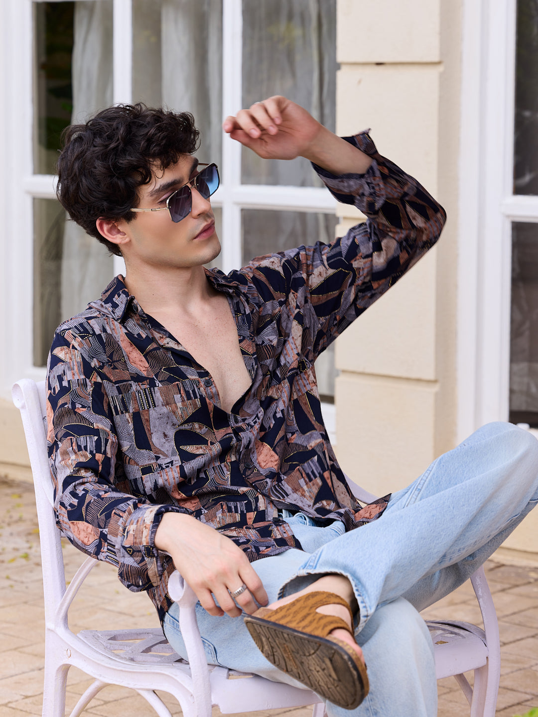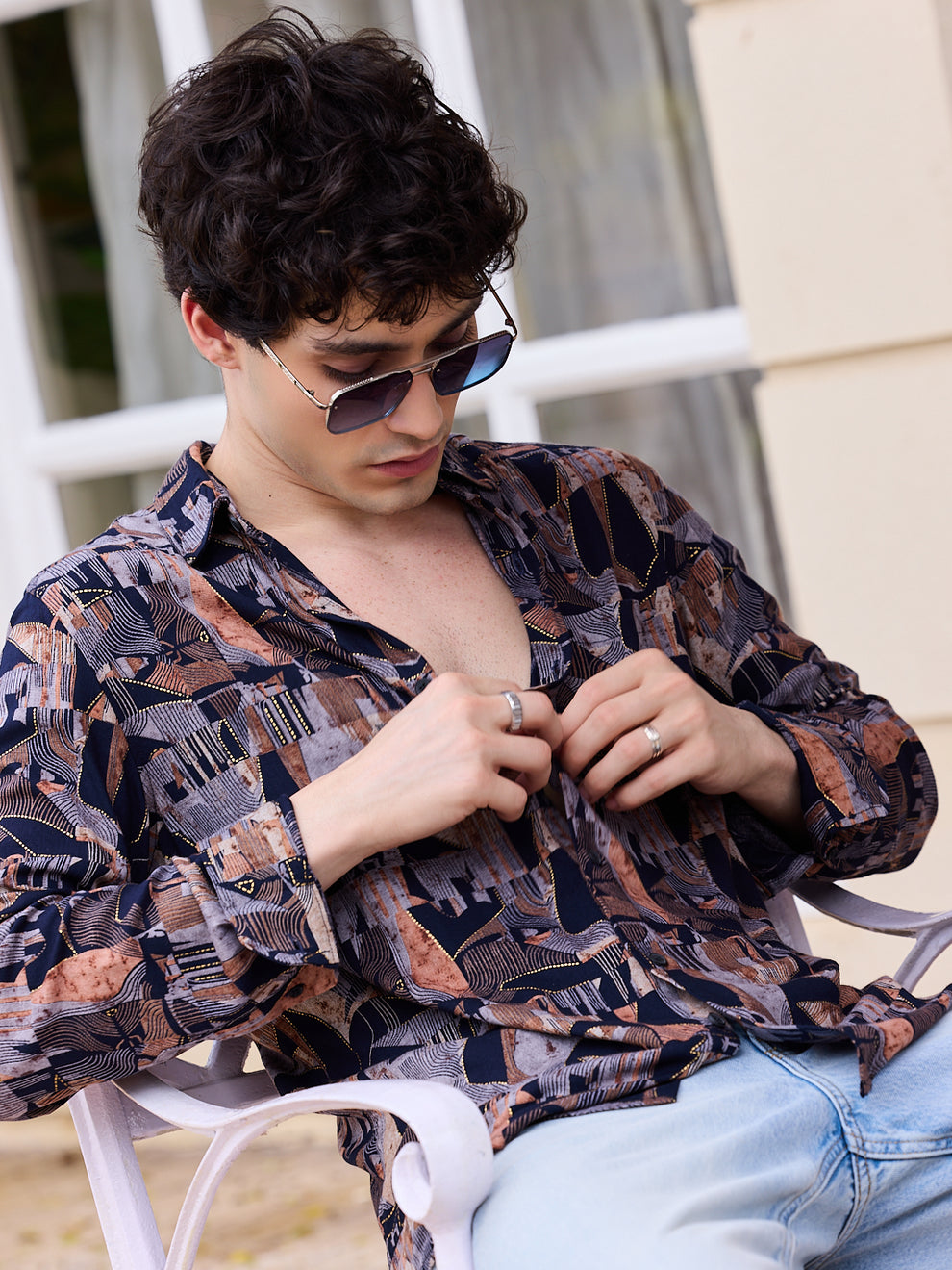 Infuse your wardrobe with a touch of whimsical charm and artistic flair with our captivating foil print shirt by VASTRADO'S RAD COLLECTION. Crafted from luxurious viscose fabric for ultimate comfort, this piece boasts a unique story through its enchanting print. It's a world away from predictable patterns, offering a chance to express your personality with a touch of sophisticated whimsy.