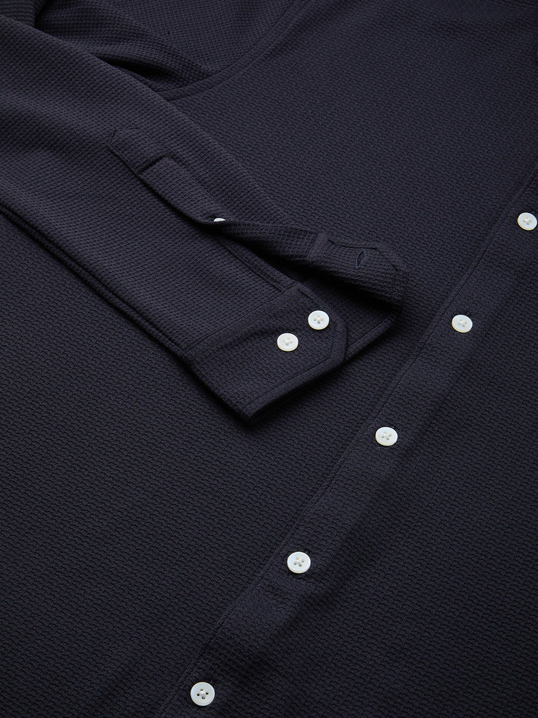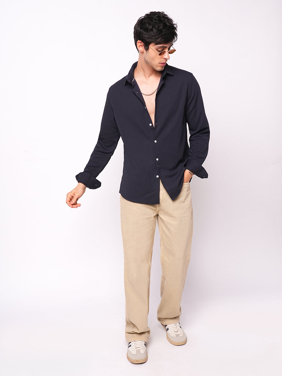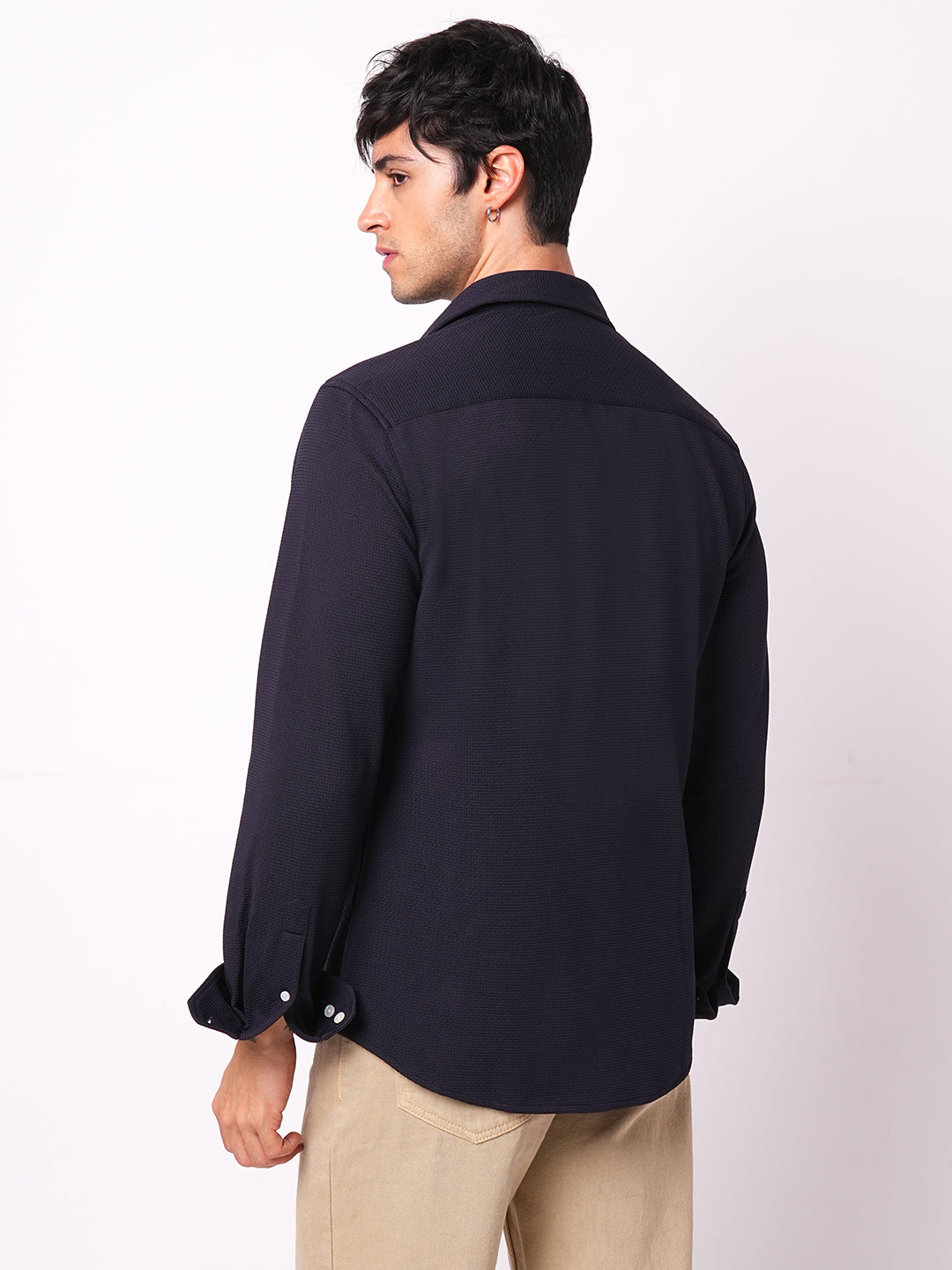 Discover the perfect blend of style and comfort with our meticulously crafted knitted shirt. Featuring a waffle design, regular collar, and full sleeves, this shirt redefines traditional fashion norms. Made from high-quality polyester fabric, it offers a slim fit that flatters all body types. Ideal for both casual and formal occasions, this shirt is a must-have addition to your wardrobe. Elevate your sartorial excellence today!