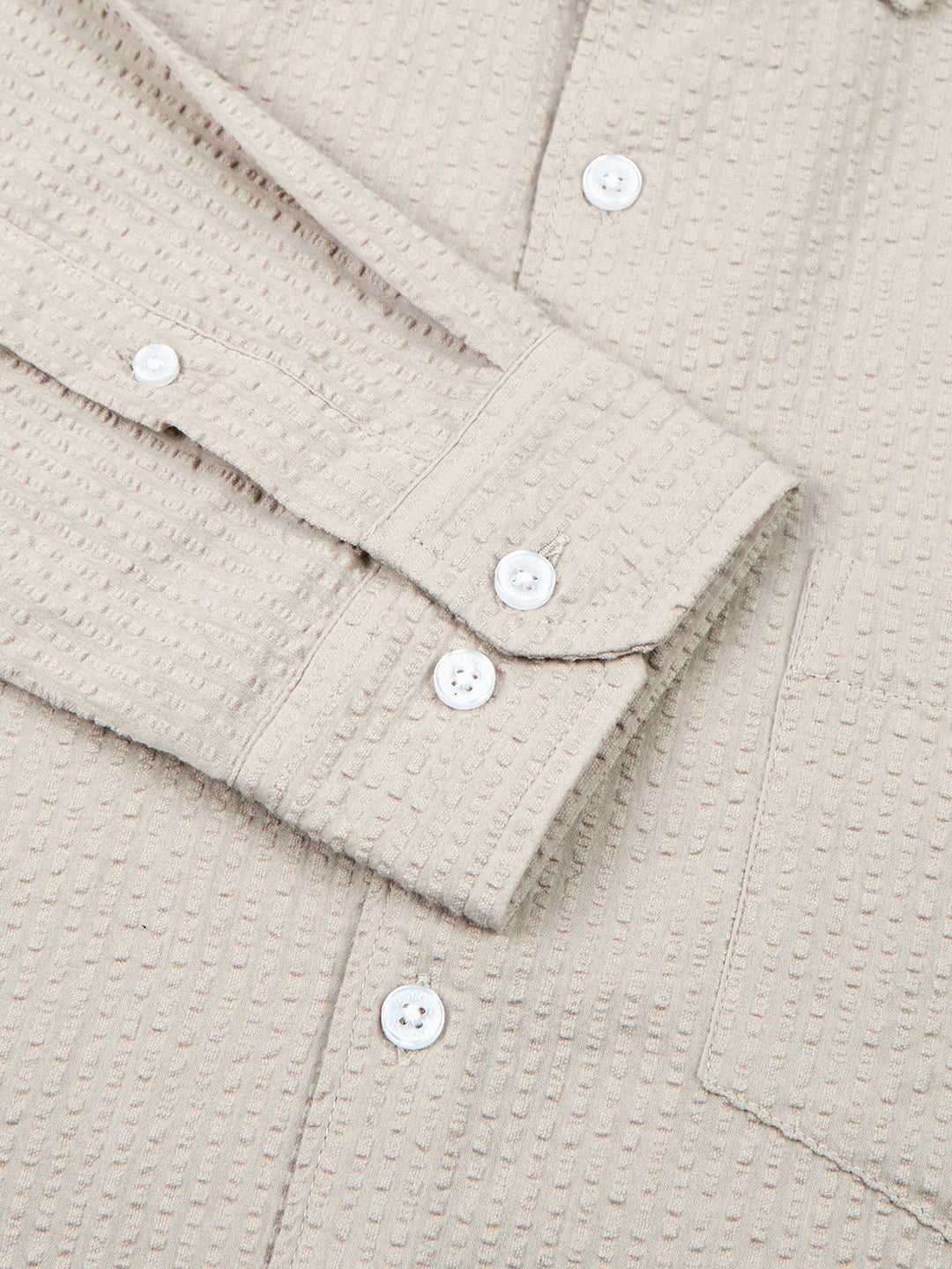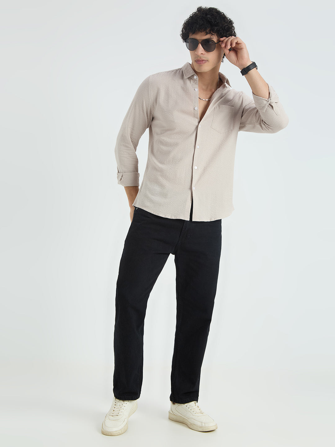 Refresh your wardrobe with this Grey Seersucker Shirt, featuring a chic seersucker design. The lightweight, crinkled seersucker fabric adds texture and breathability, while the grey hue offers a cool, contemporary vibe. With its full sleeves and relaxed fit, this shirt is perfect for casual outings, combining style and comfort effortlessly.