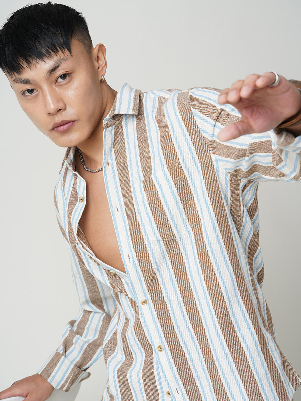 Elevate your everyday look with effortless sophistication in our striped cotton shirt. Crafted with meticulous precision, every element of this cotton shirt invites you to embrace a new standard of sartorial excellence. Inject a dose of effortless texture and modern flair into your everyday wardrobe.