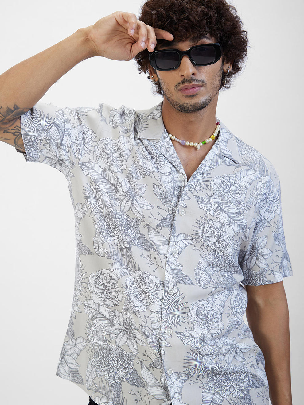 The all-over printed pattern exudes confidence and versatility, making it a perfect choice for various occasions. Its half sleeves and notch collar offer a sleek and contemporary look.