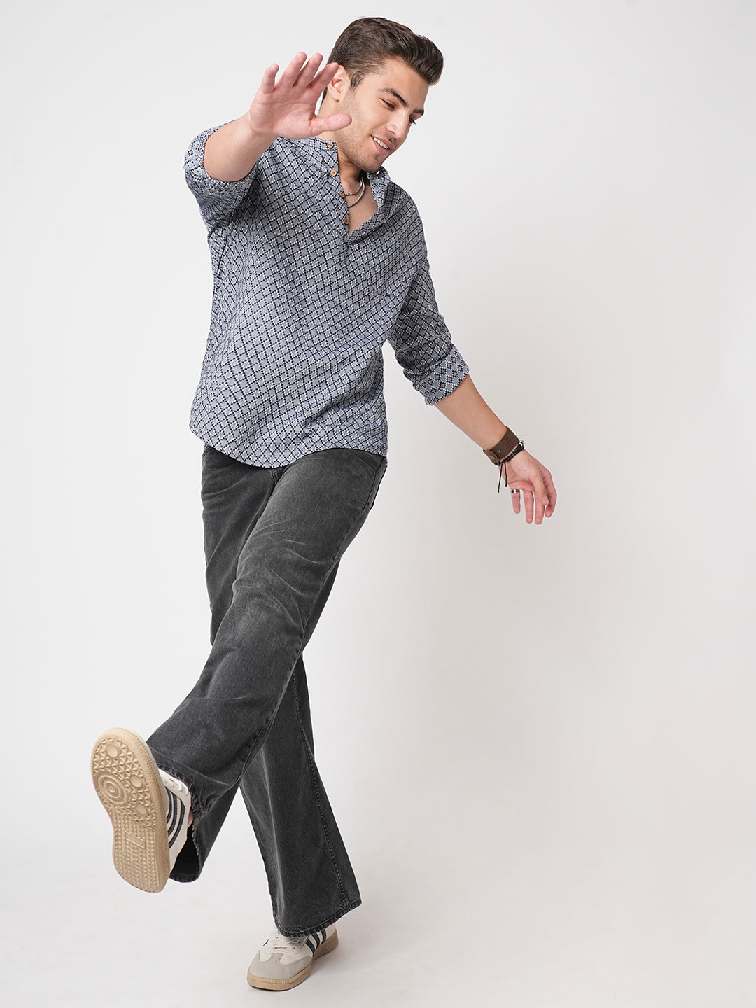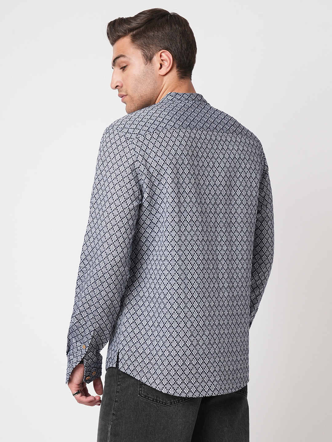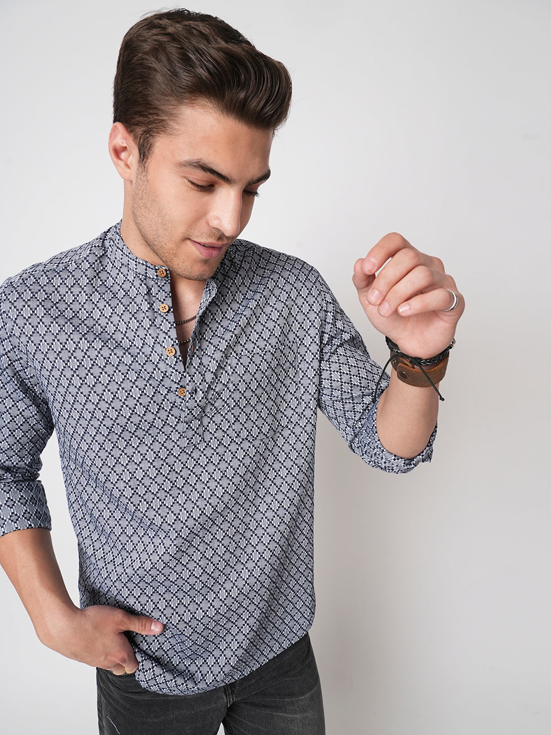 Grey & Navy Diamond Jacquard Weaved Kurta