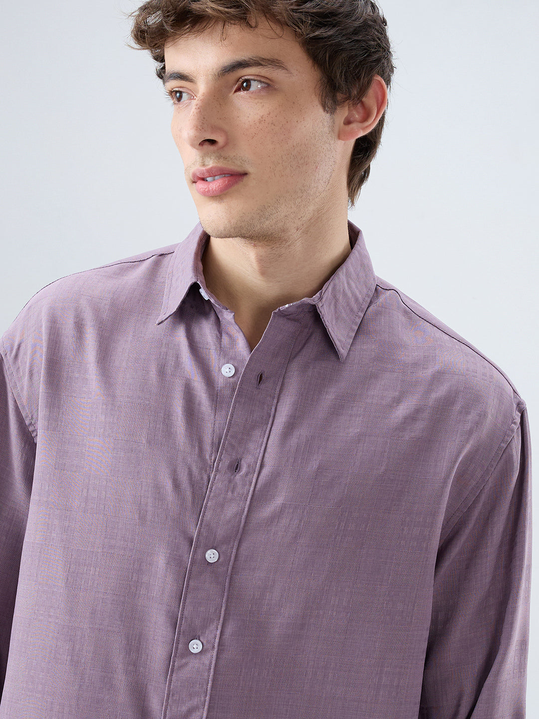 This heather purple soft grid textured shirt combines subtle pattern with everyday comfort. Crafted from smooth, breathable fabric, it features a refined grid texture that adds depth to the look. Designed for a clean, versatile fit, it works effortlessly for both casual and semi-formal styling.