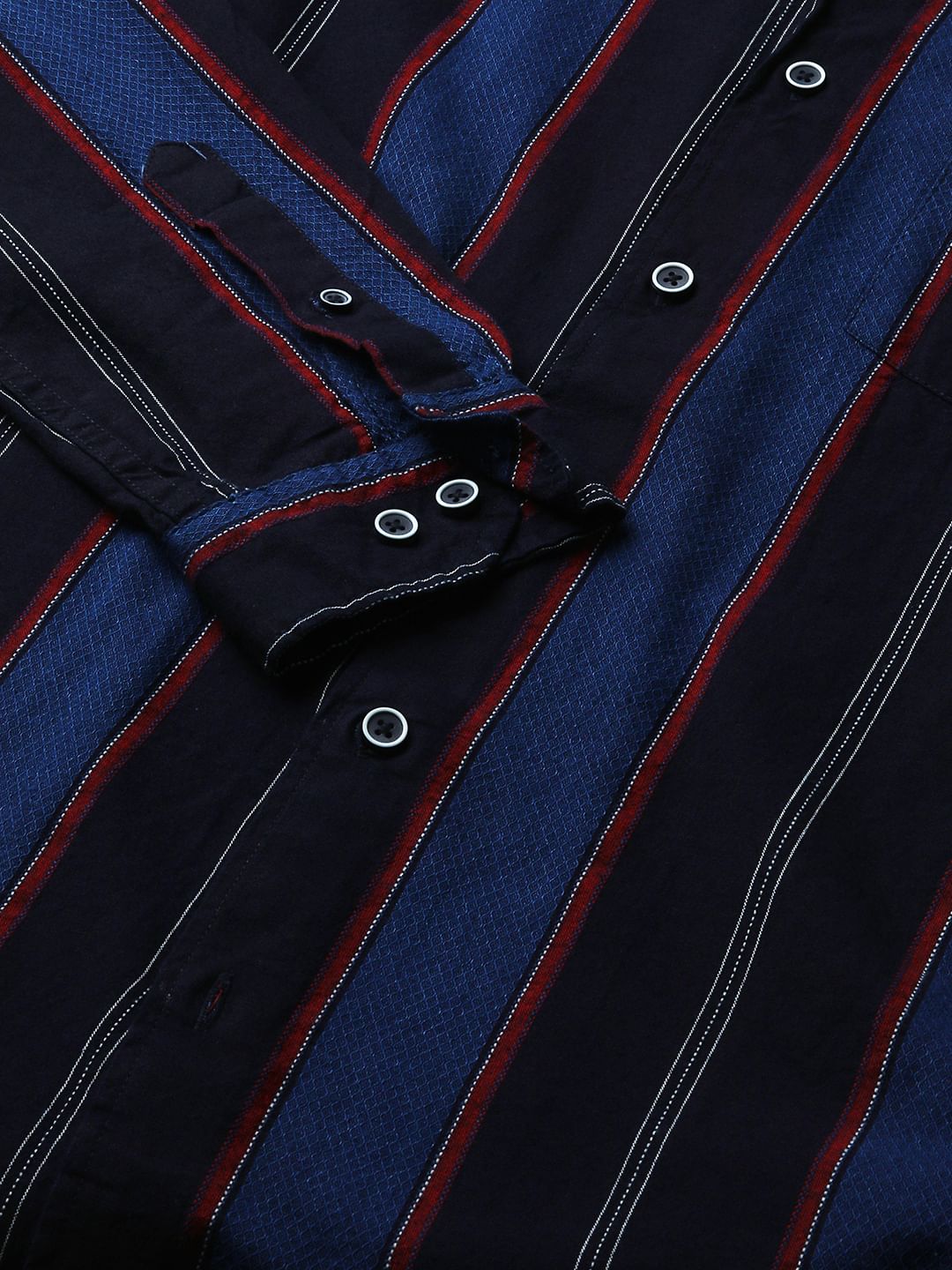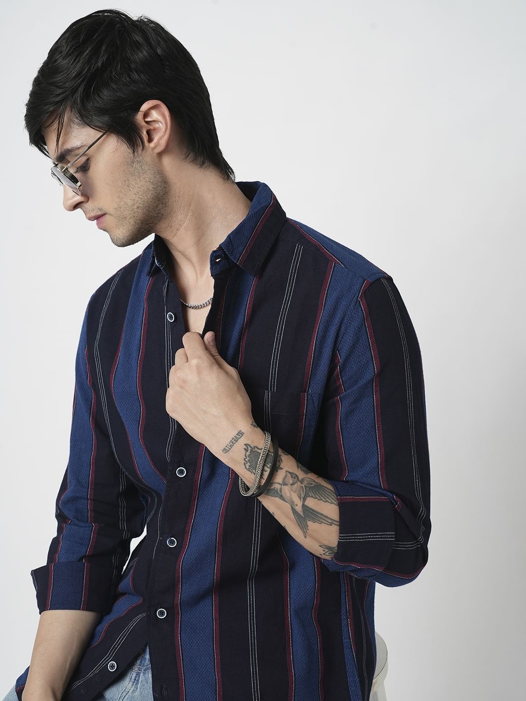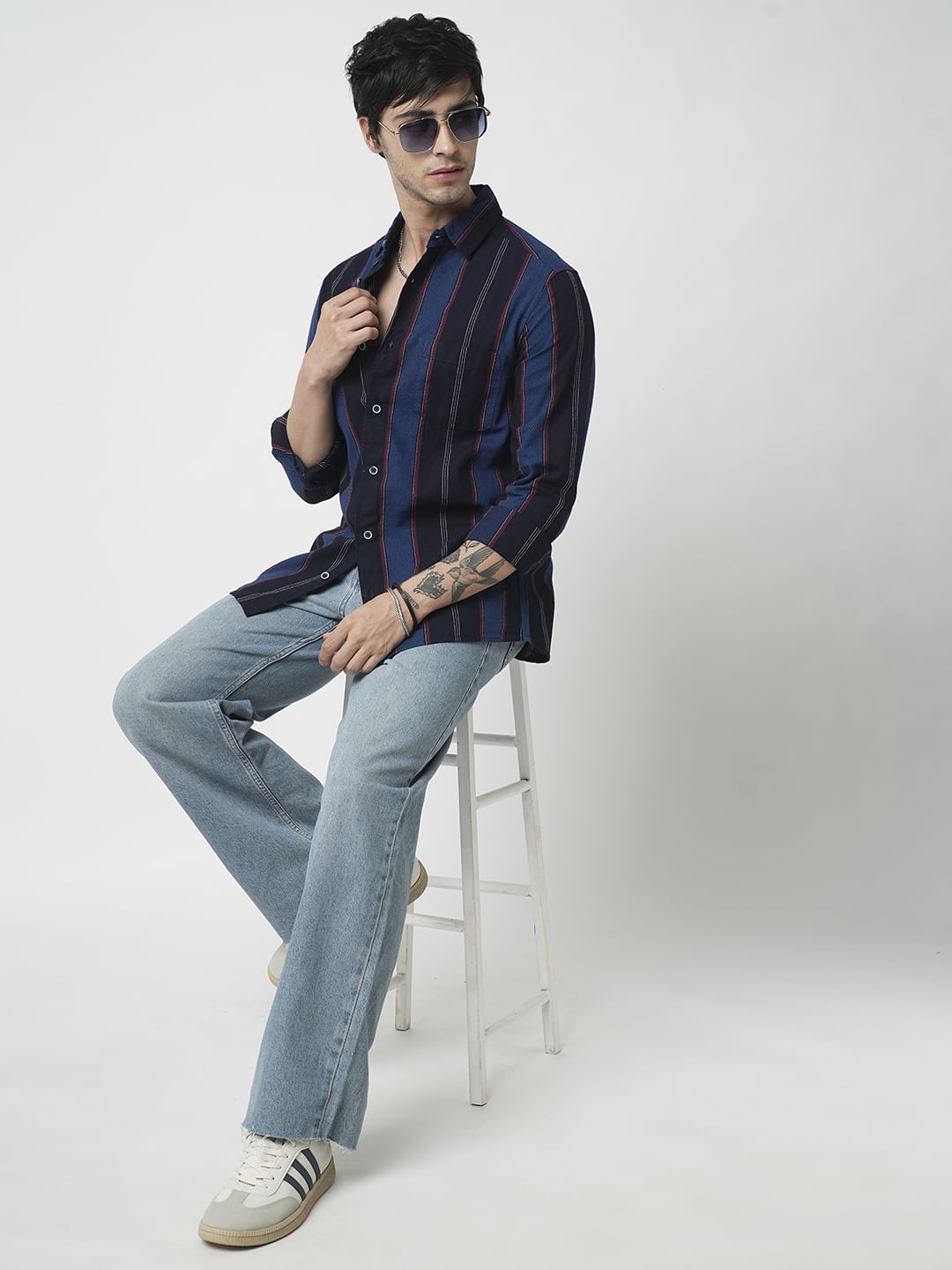 Make a lasting impression at your next evening event with our captivating Navy Striped Engraved shirt by VASTRADO'S RAD COLLECTION. Crafted from luxurious, breathable fabric, this shirt offers both exceptional comfort and a touch of sophisticated texture that sets you apart. The elegant design elevate this shirt for formal occasions or a night out.