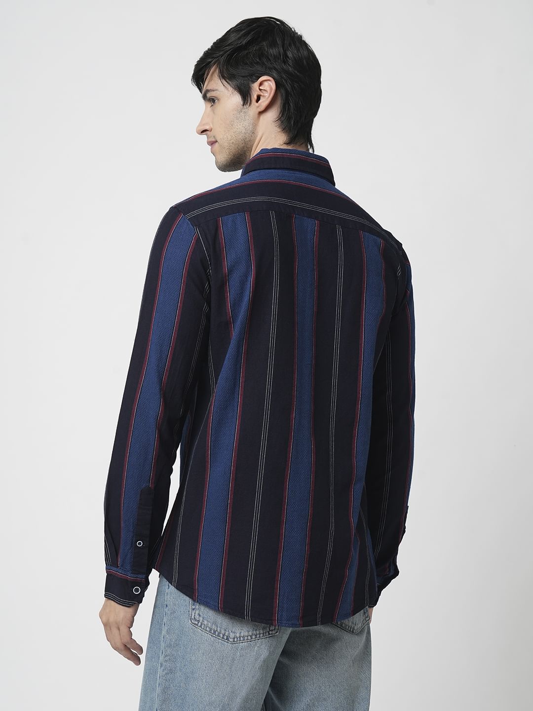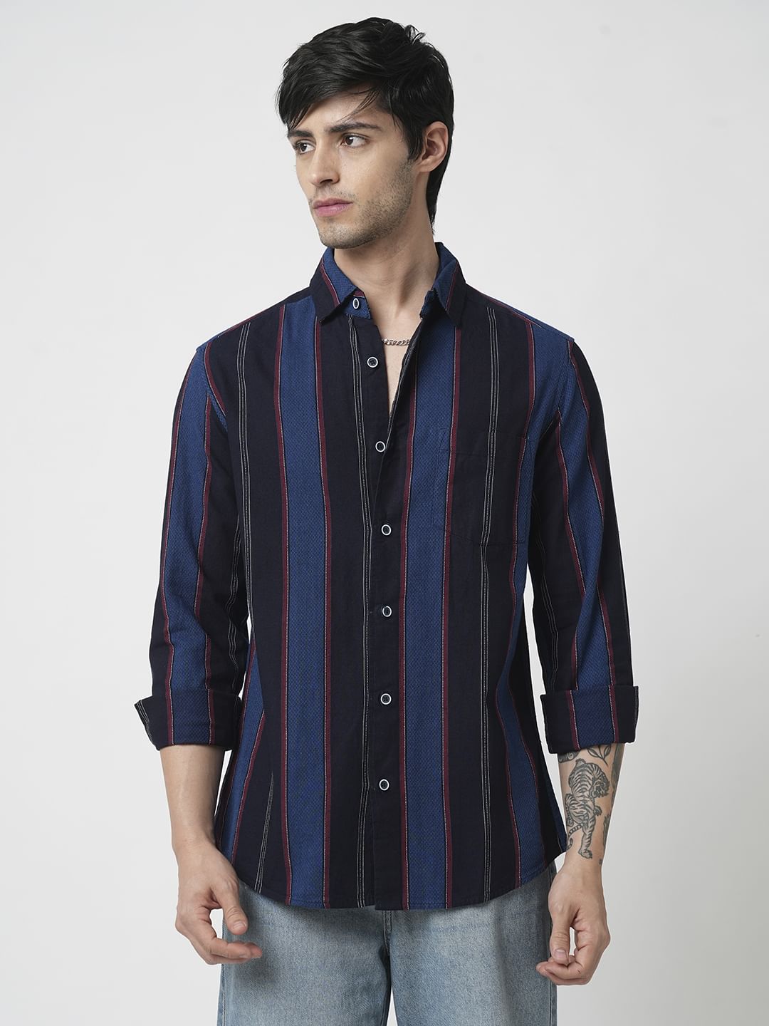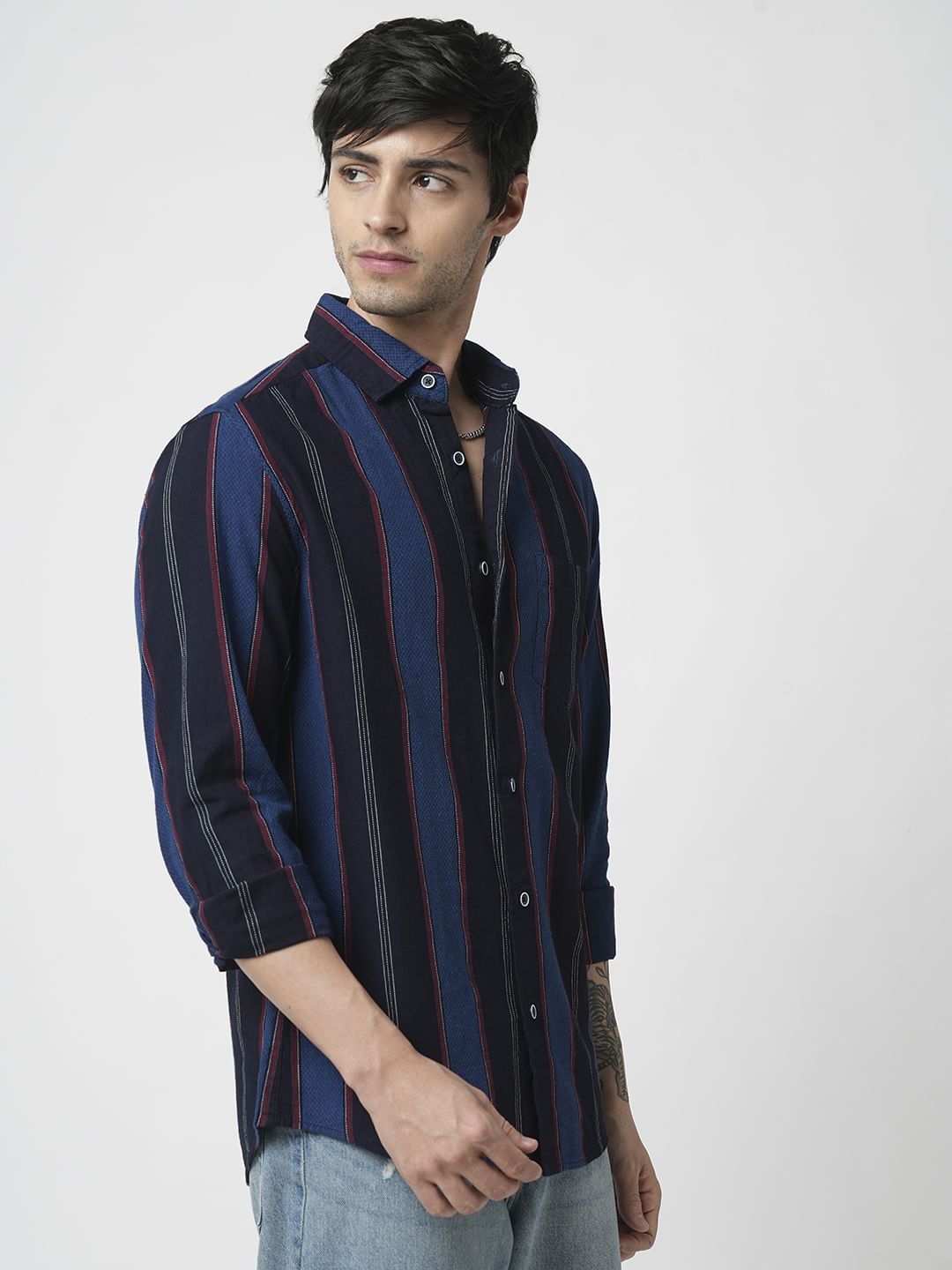 Make a lasting impression at your next evening event with our captivating Navy Striped Engraved shirt by VASTRADO'S RAD COLLECTION. Crafted from luxurious, breathable fabric, this shirt offers both exceptional comfort and a touch of sophisticated texture that sets you apart. The elegant design elevate this shirt for formal occasions or a night out.