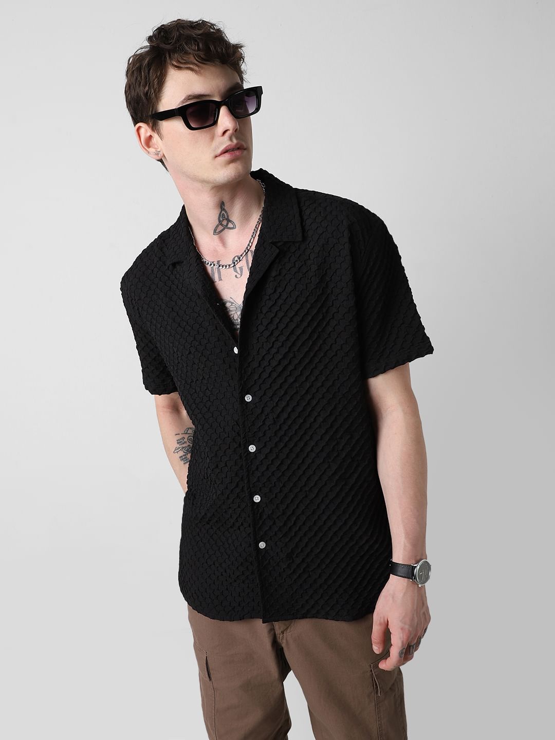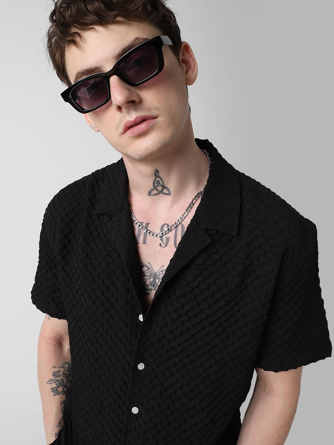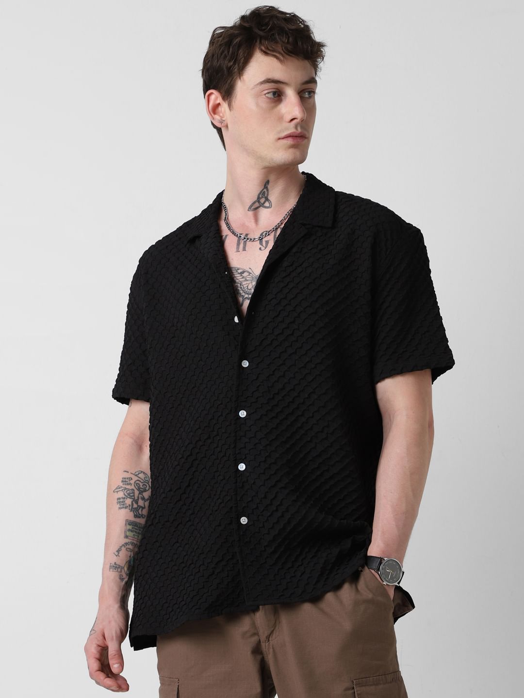 Upgrade your wardrobe with our Jet Black Embossed Patterned Oversized Shirt. The intricate embossed pattern adds a touch of sophistication and texture, while the oversized fit provides comfort and modern style. Perfect for any occasion, this versatile shirt seamlessly blends elegance with contemporary fashion, making it a standout piece in your collection.
