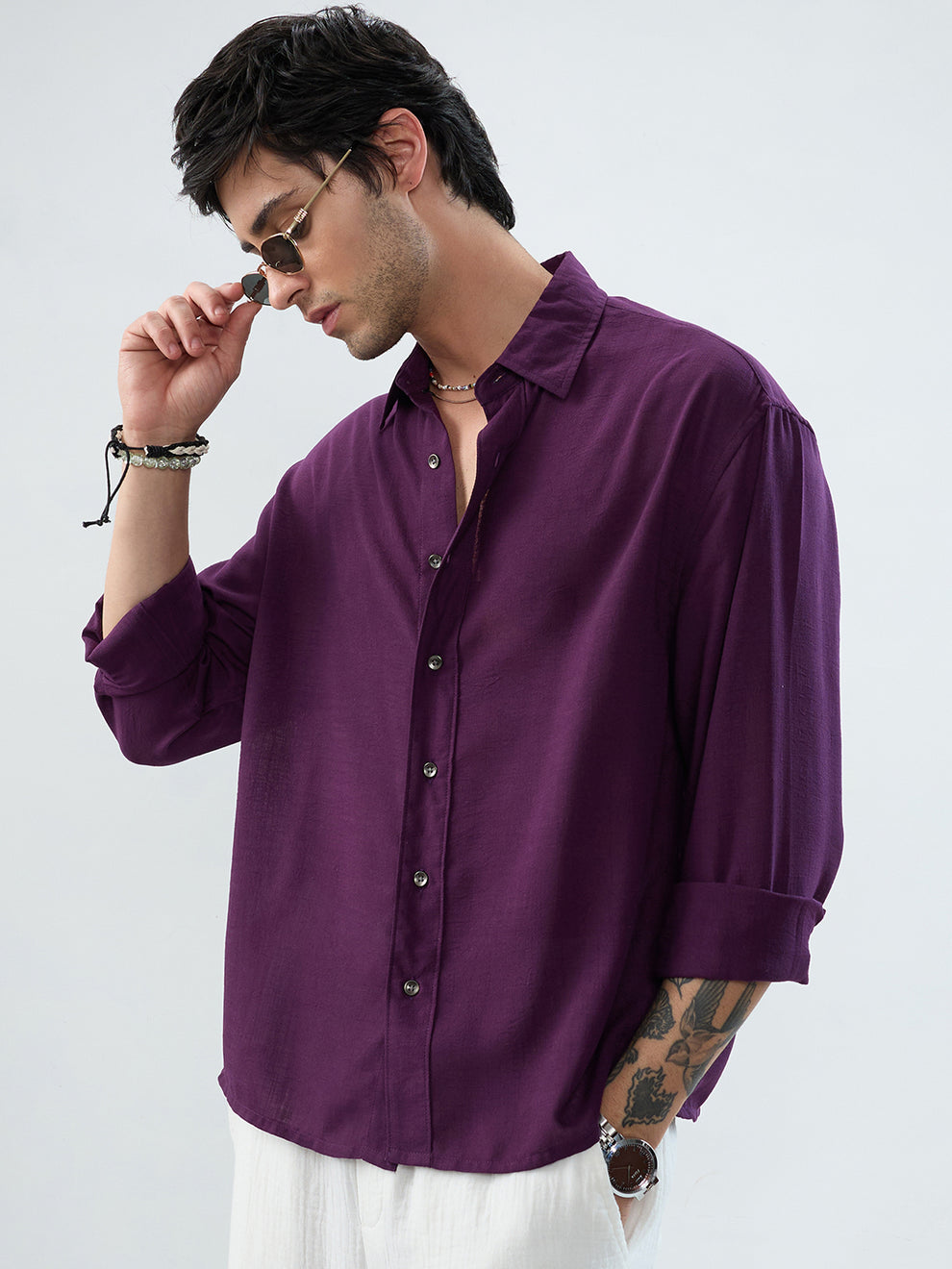 Step into bold elegance with this Majestic Purple Soft Sheer Boxy Fit Crop Shirt, a statement piece crafted to elevate your modern wardrobe. Made from a soft, lightweight sheer fabric, it offers a breezy, fluid drape that enhances comfort while adding a touch of allure.