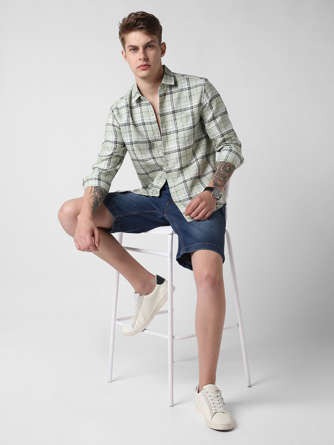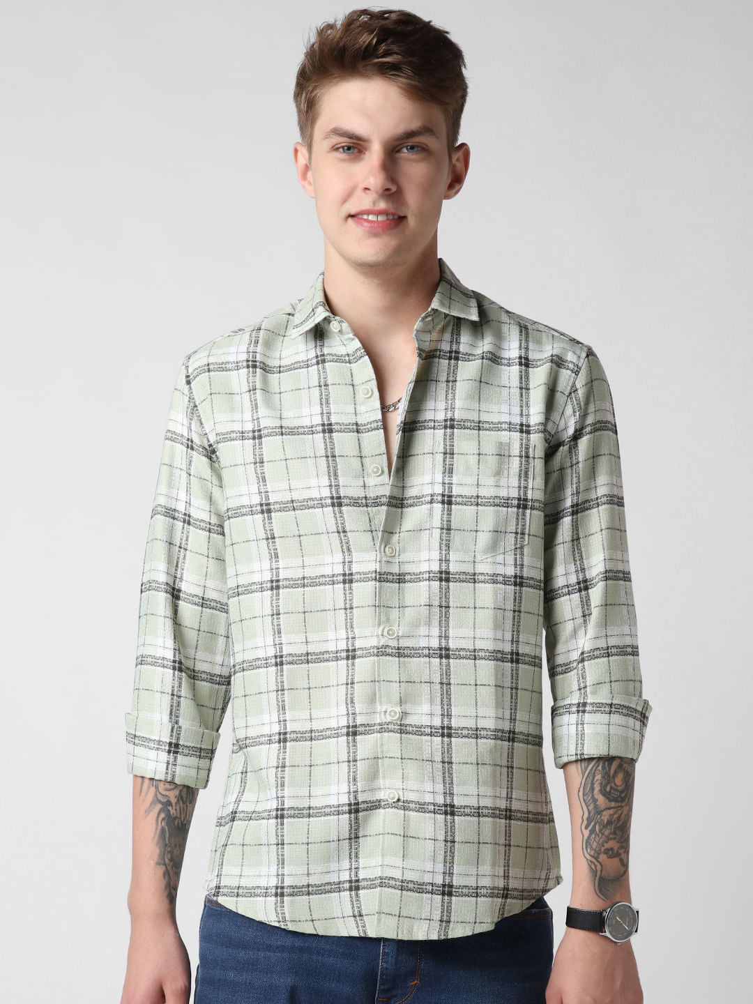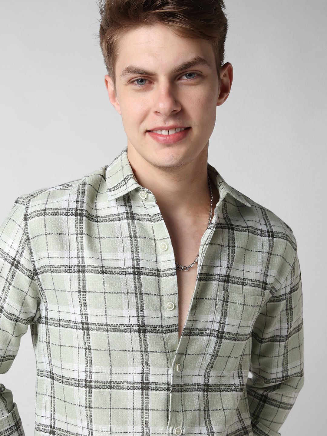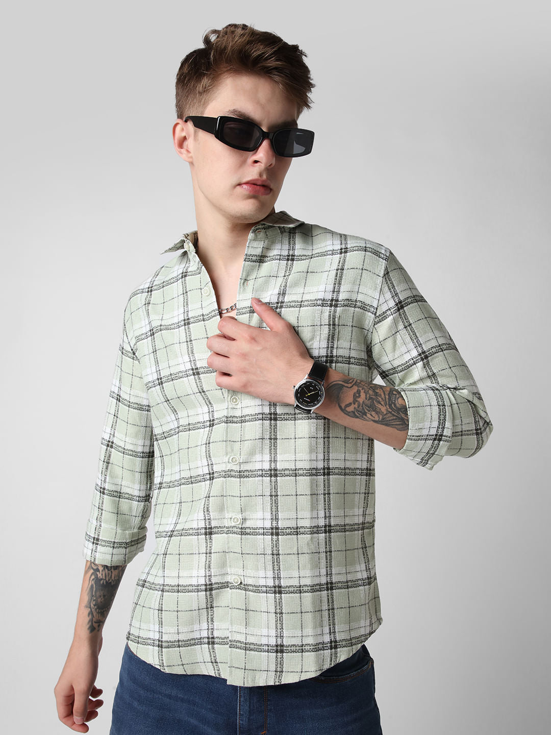 Mint Green & Black Dobby Checkered Shirt