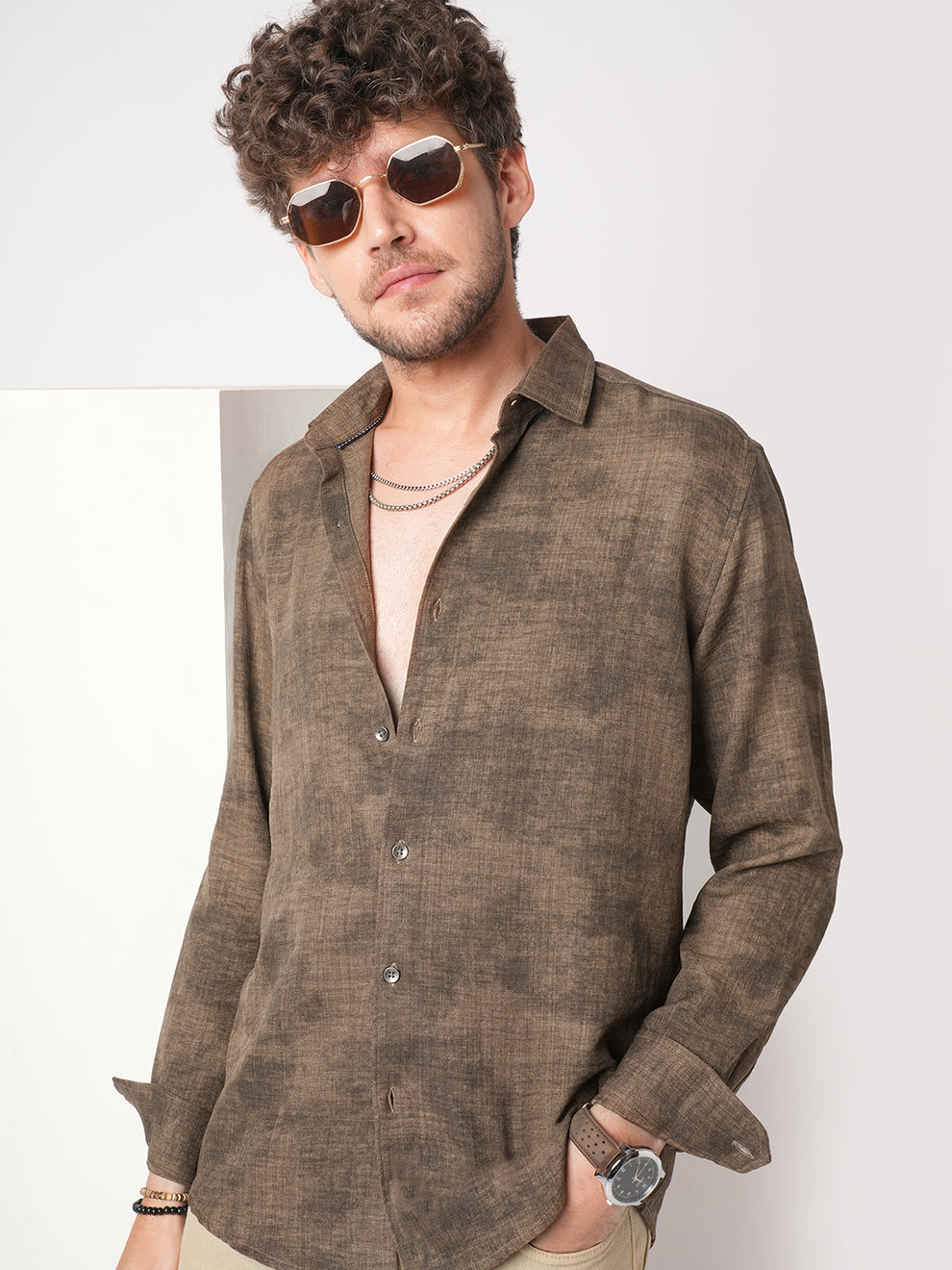 Mocha Brown Rustic Tie & Dye Printed Shirt