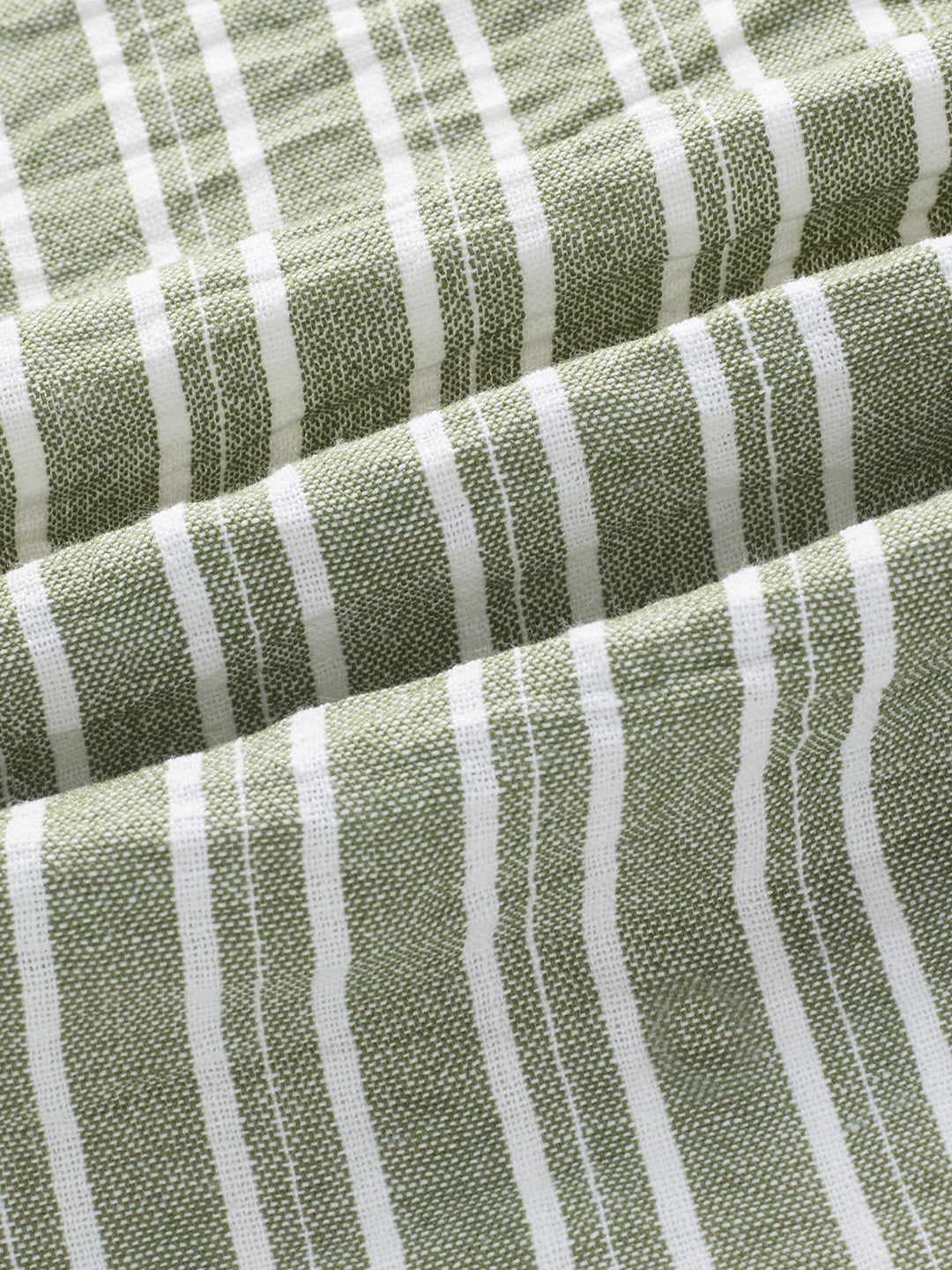 Moss Green Linear Striped Lightweight Crinkled Boxy Fit Crop Shirt
