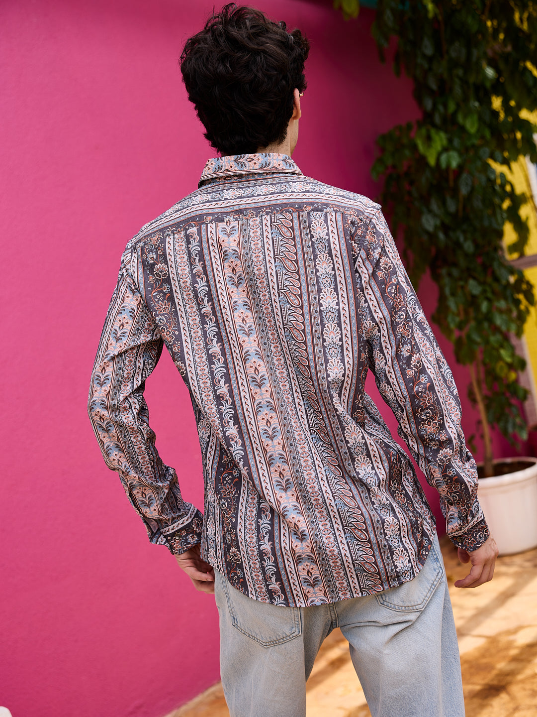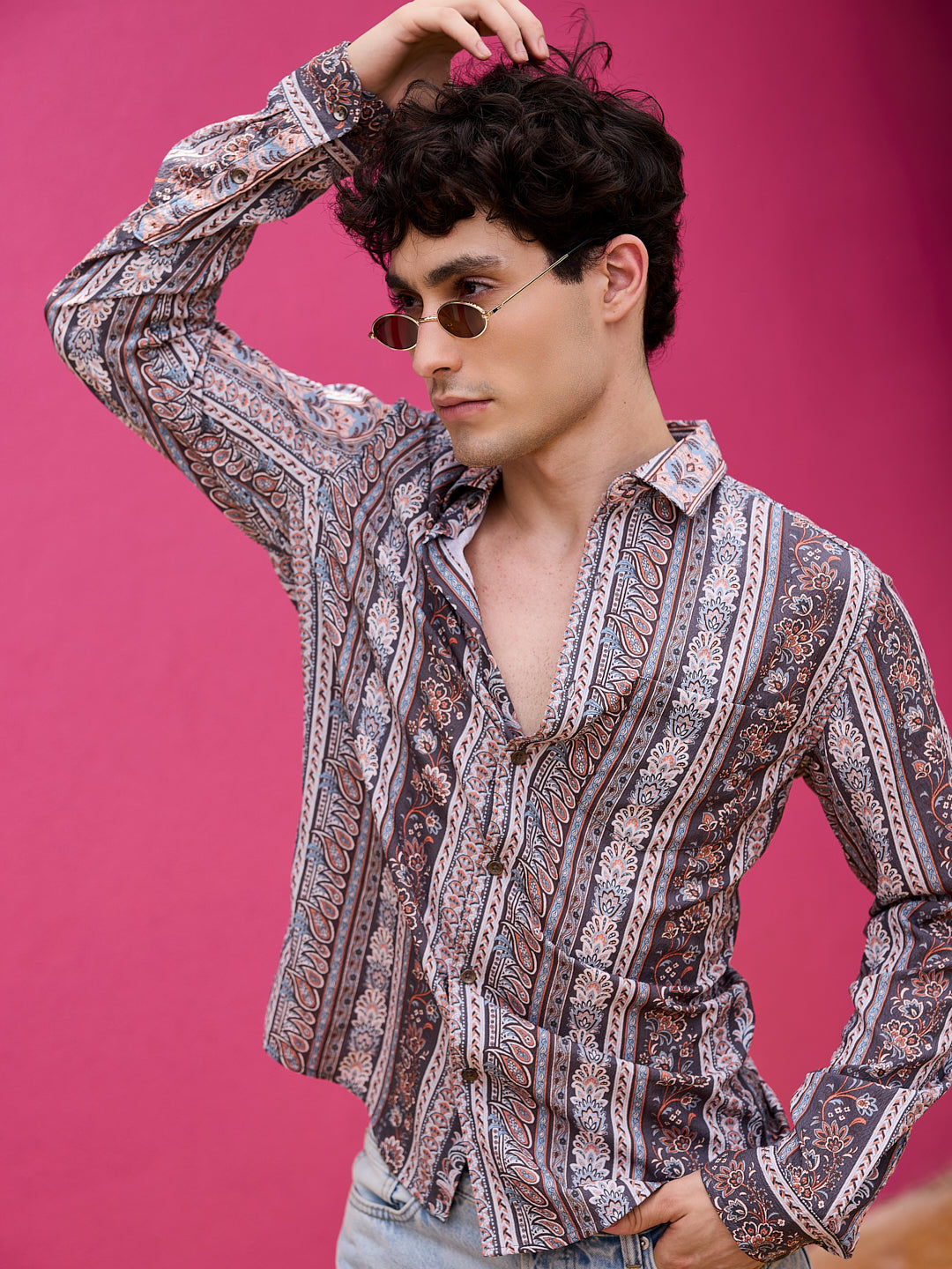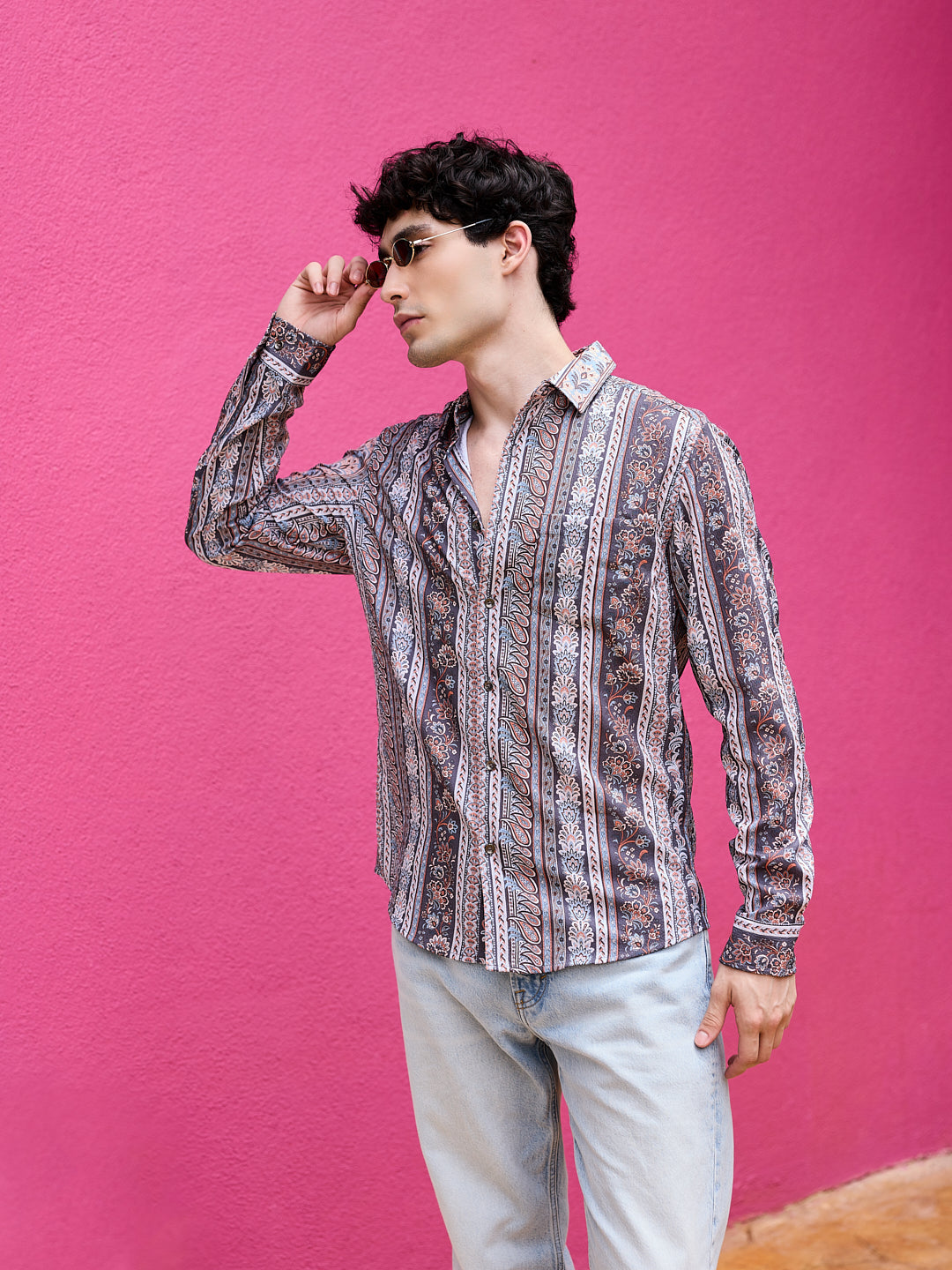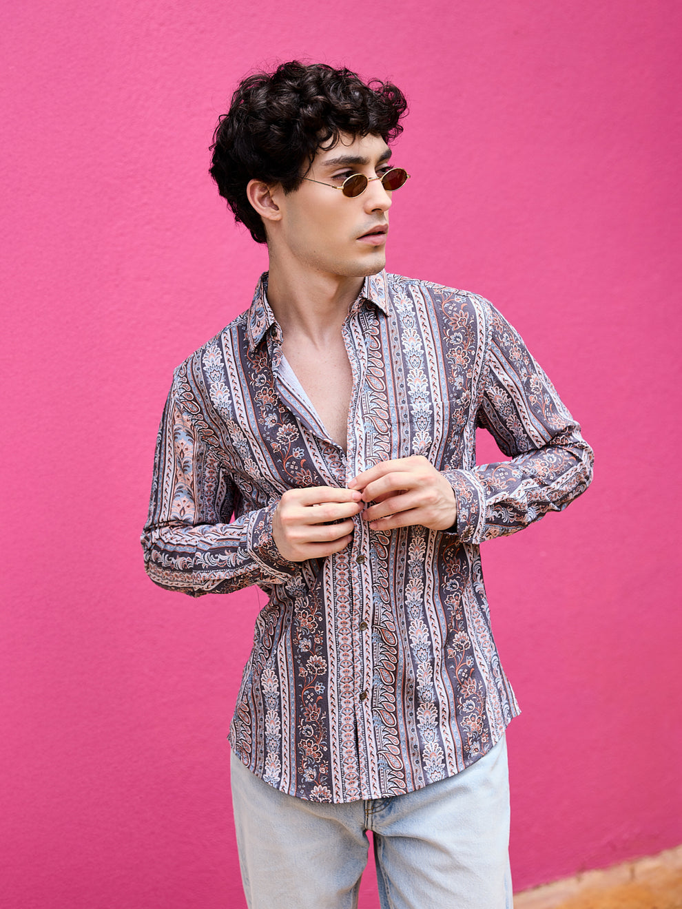 Step out in style with this Multicolour Paisley Creased Shirt, designed to make a bold fashion statement. The dynamic print, combined with the unique creased texture, creates a visually striking piece that's perfect for adding a touch of artistry to your wardrobe. Versatile and eye-catching, this shirt effortlessly blends creativity with comfort, making it ideal for both casual and eclectic ensembles. Perfect for those who love to stand out with a unique and contemporary look.
