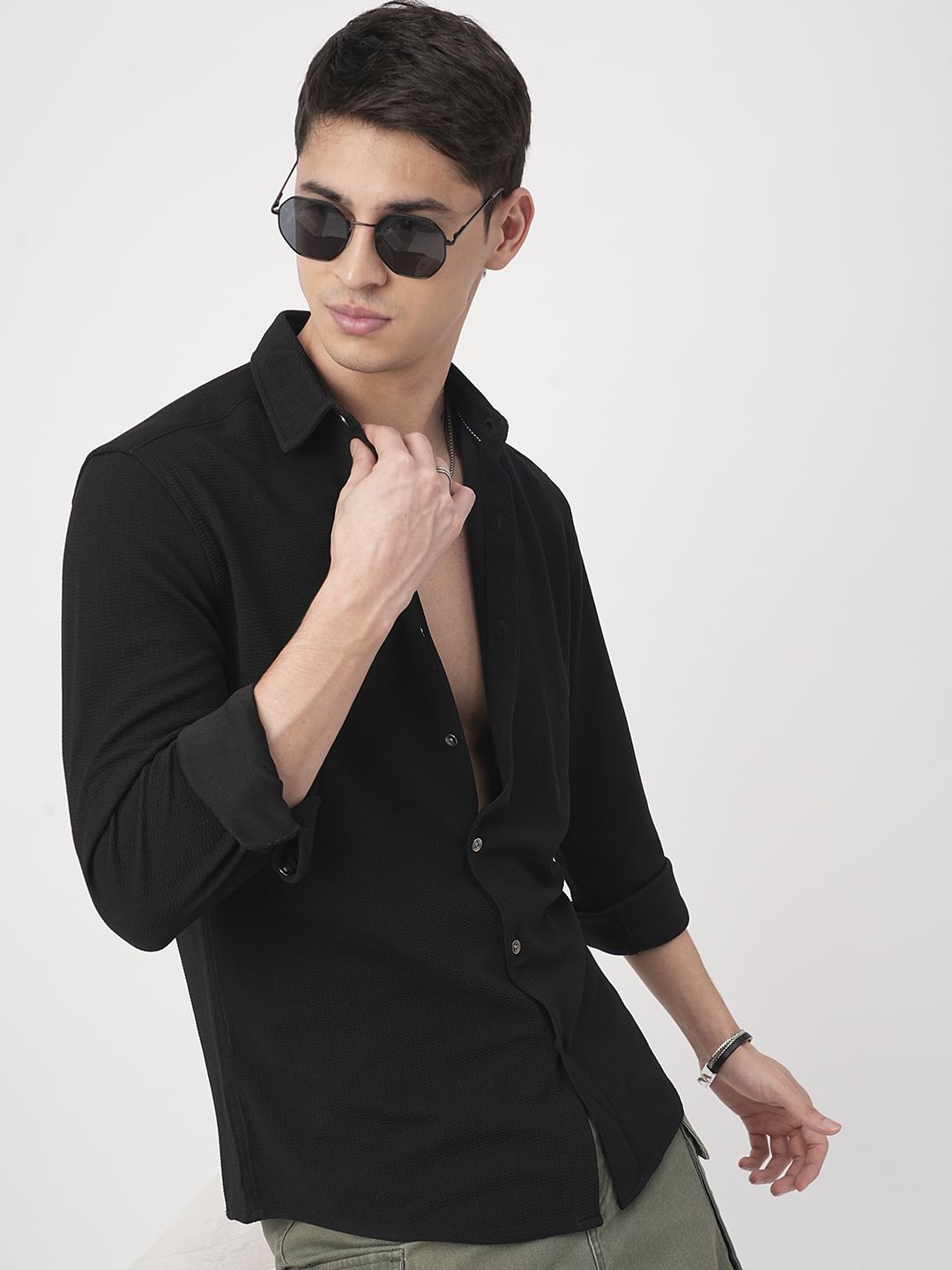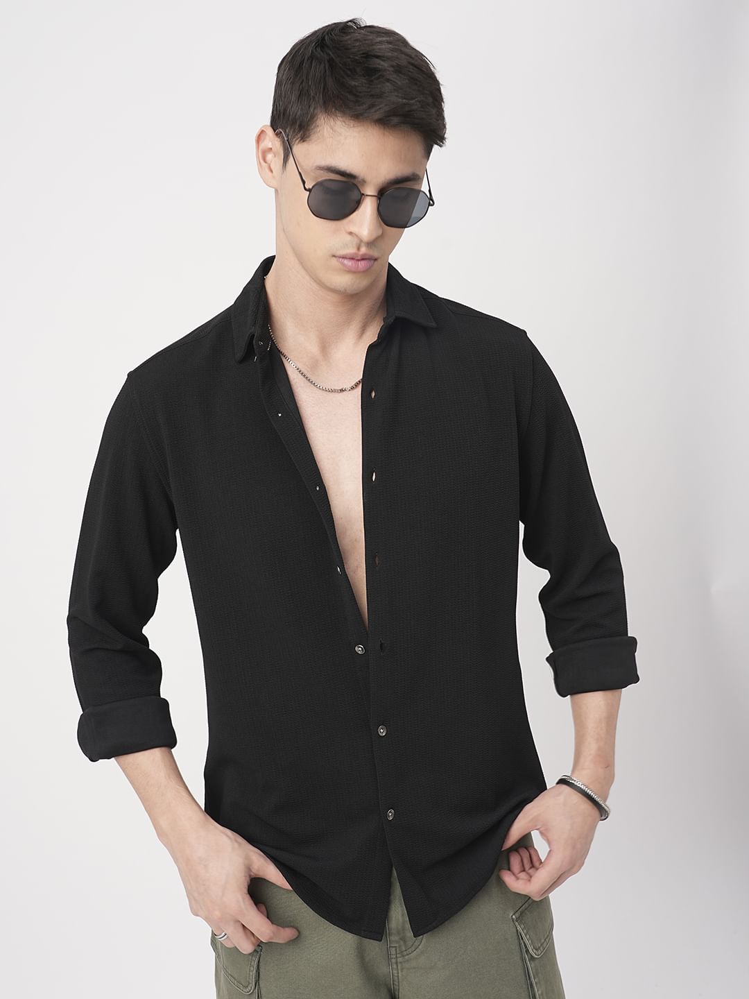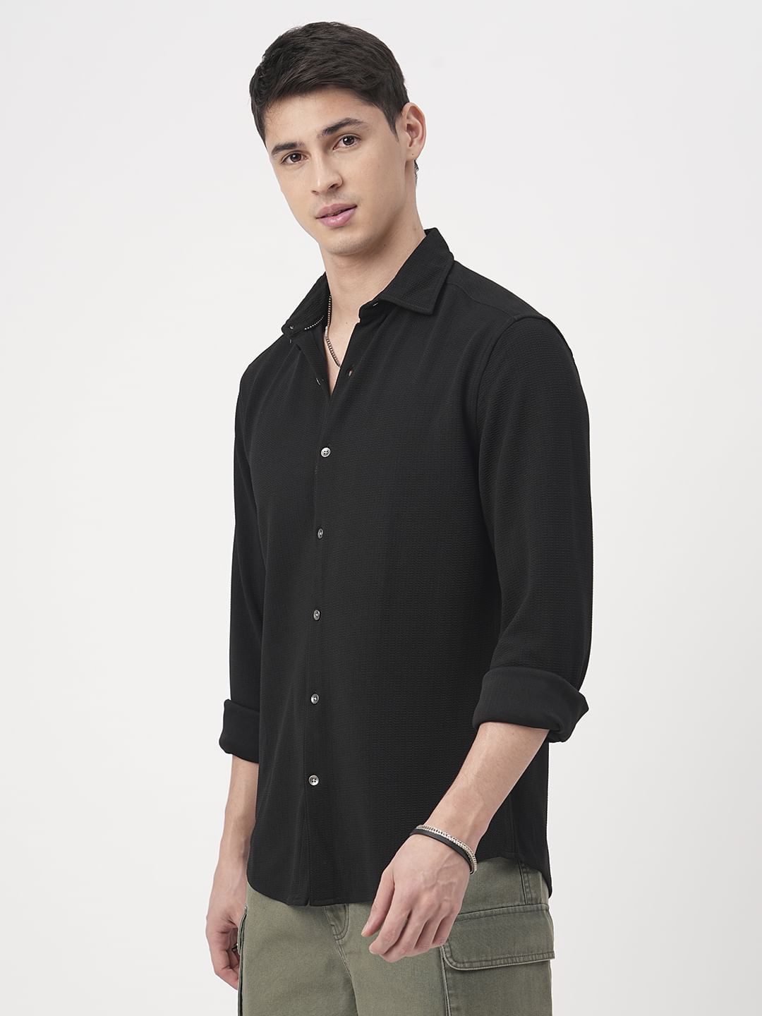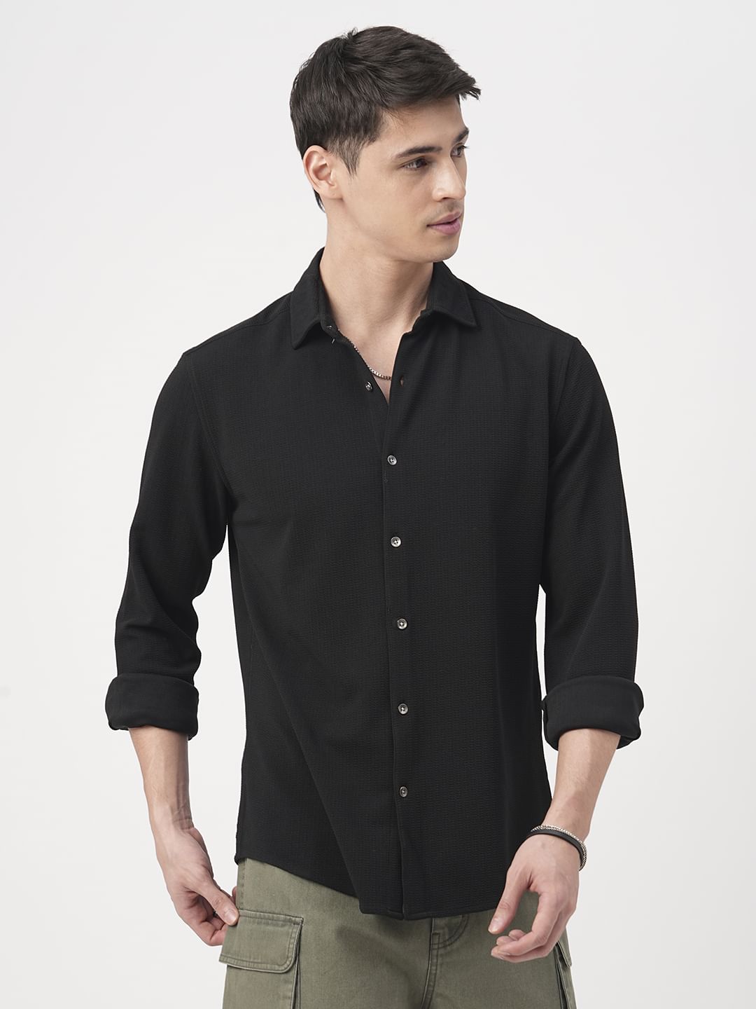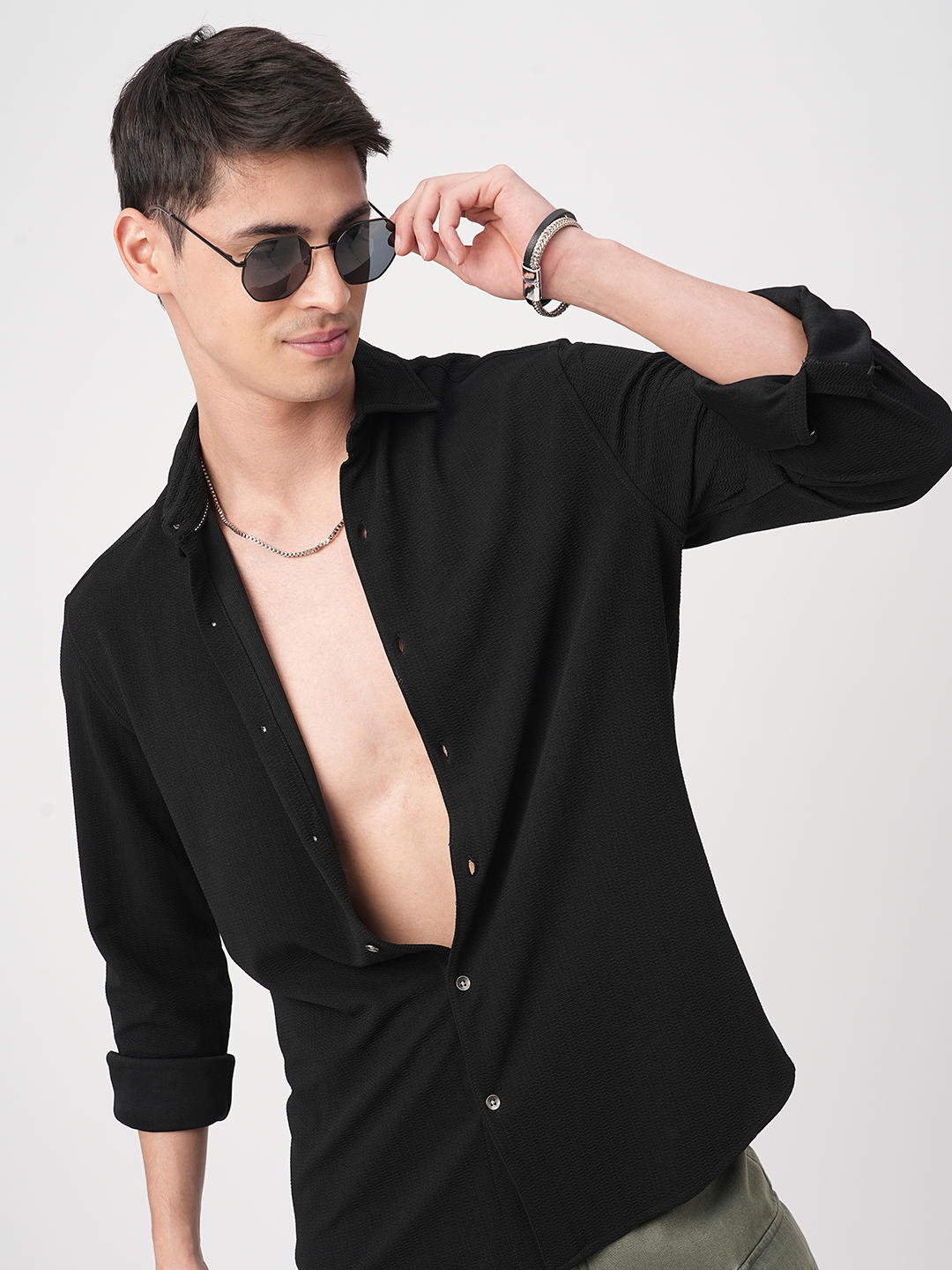 <p>Elevate your style with our Obsidian Black Textured Shirt. Crafted from breathable fabric, this full-sleeve shirt combines comfort with sophistication, making it perfect for both office hours and after-hours. Sharp, sleek, and effortlessly stylish!</p>