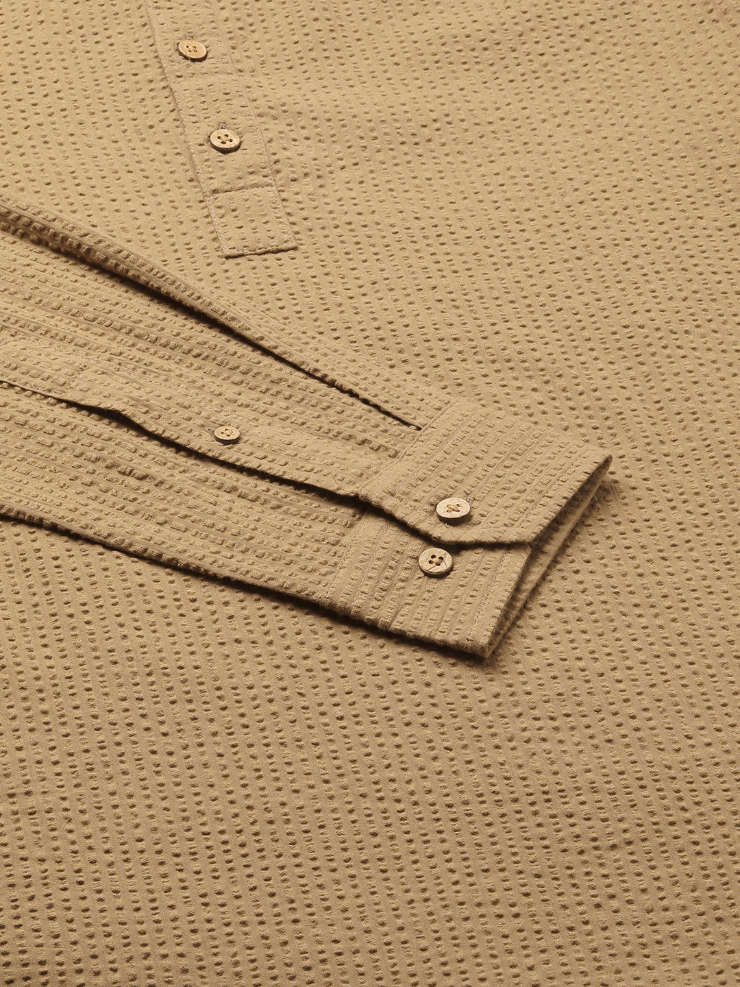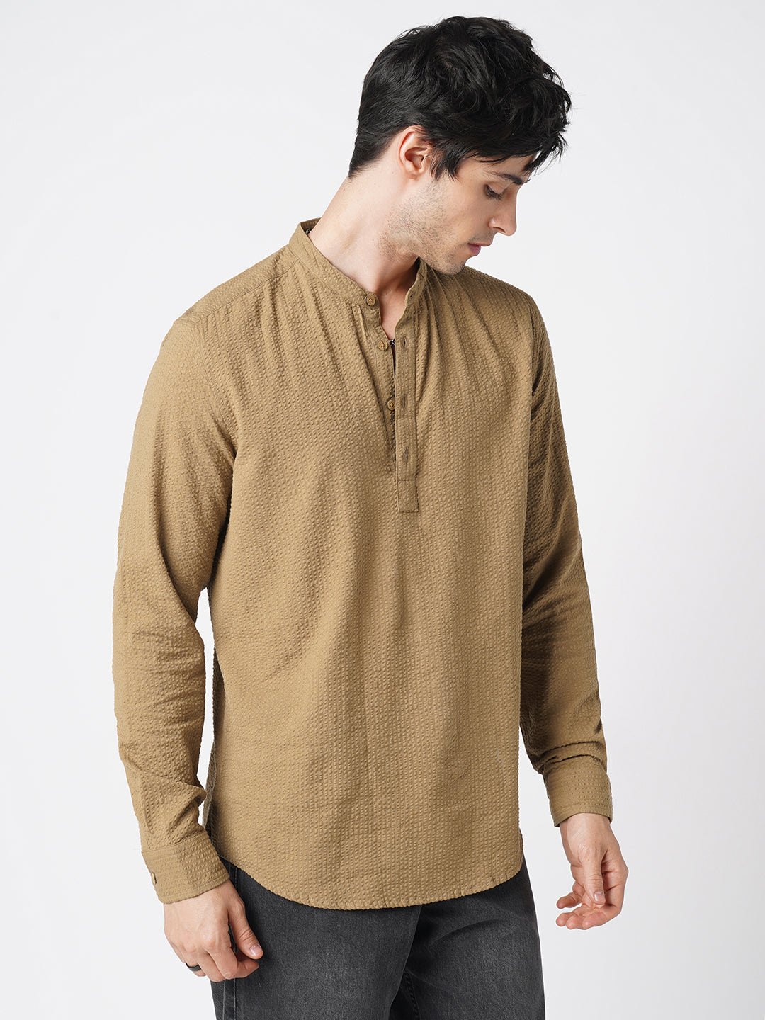 Elevate your casual wear with this Peanut Brown Seersucker Kurta, a perfect blend of tradition and comfort. Crafted from lightweight, breathable seersucker fabric, this kurta features a rich peanut brown hue that adds a touch of warmth to your wardrobe. The unique texture of the fabric ensures breathability, making it ideal for warm weather or relaxed occasions. With its simple yet elegant design, this kurta is perfect for everything from family gatherings to casual outings, offering effortless style and comfort.