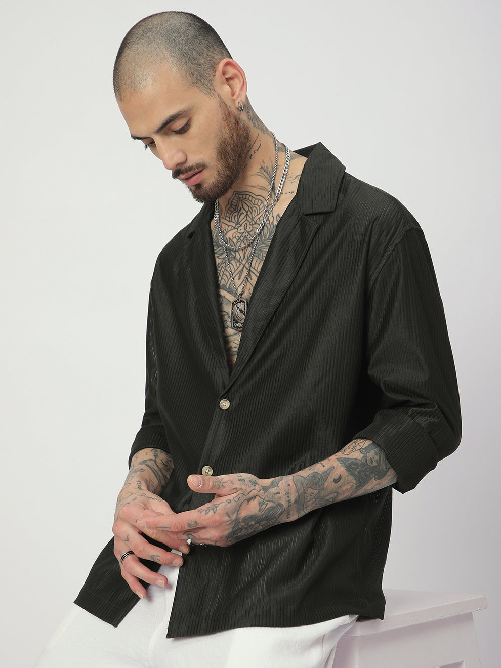 Redefine effortless style with this blazer collar shirt by Vastrado, designed for the modern gentleman. The soft textured fabric in a classic Green shade offers a refined yet relaxed appeal, making it a must-have in your wardrobe. Pair it with tailored trousers and loafers for an elegant evening look, or go for a relaxed vibe with linen shorts and sneakers. Whether you're heading to a brunch, a date, or a vacation, this shirt brings effortless sophistication to any occasion.