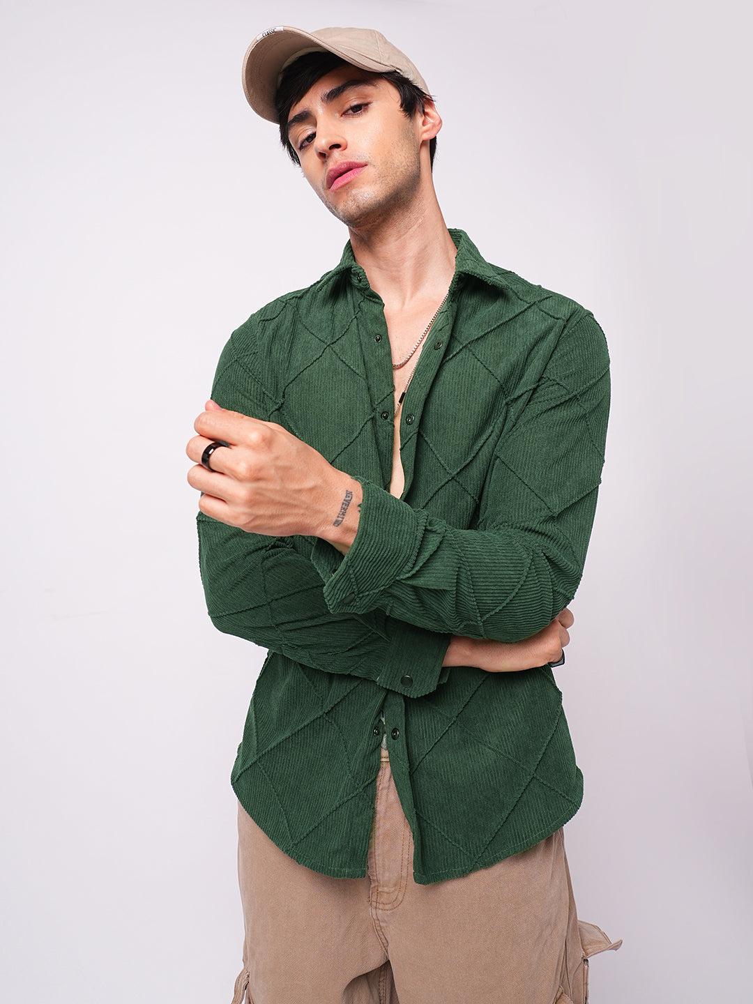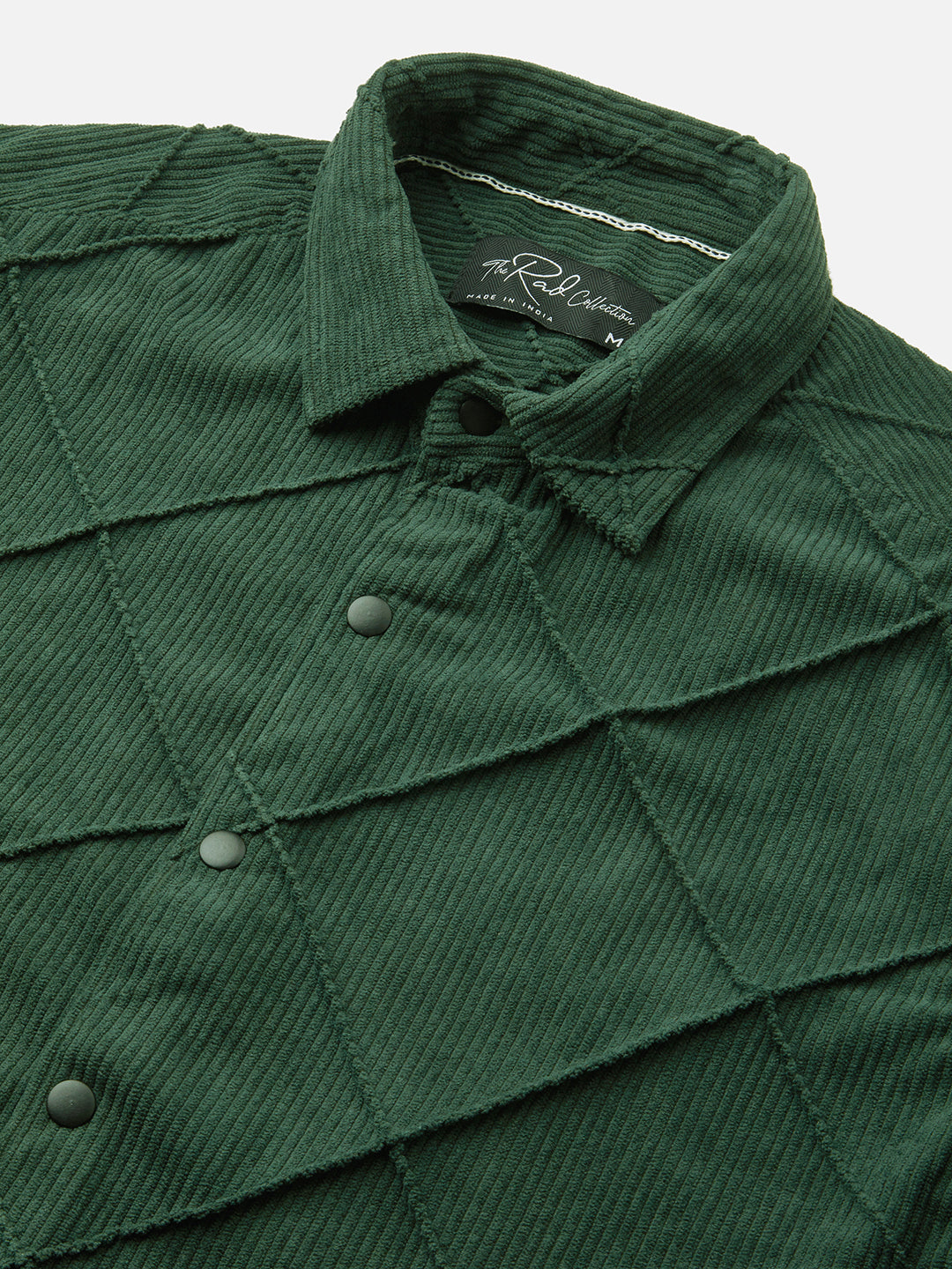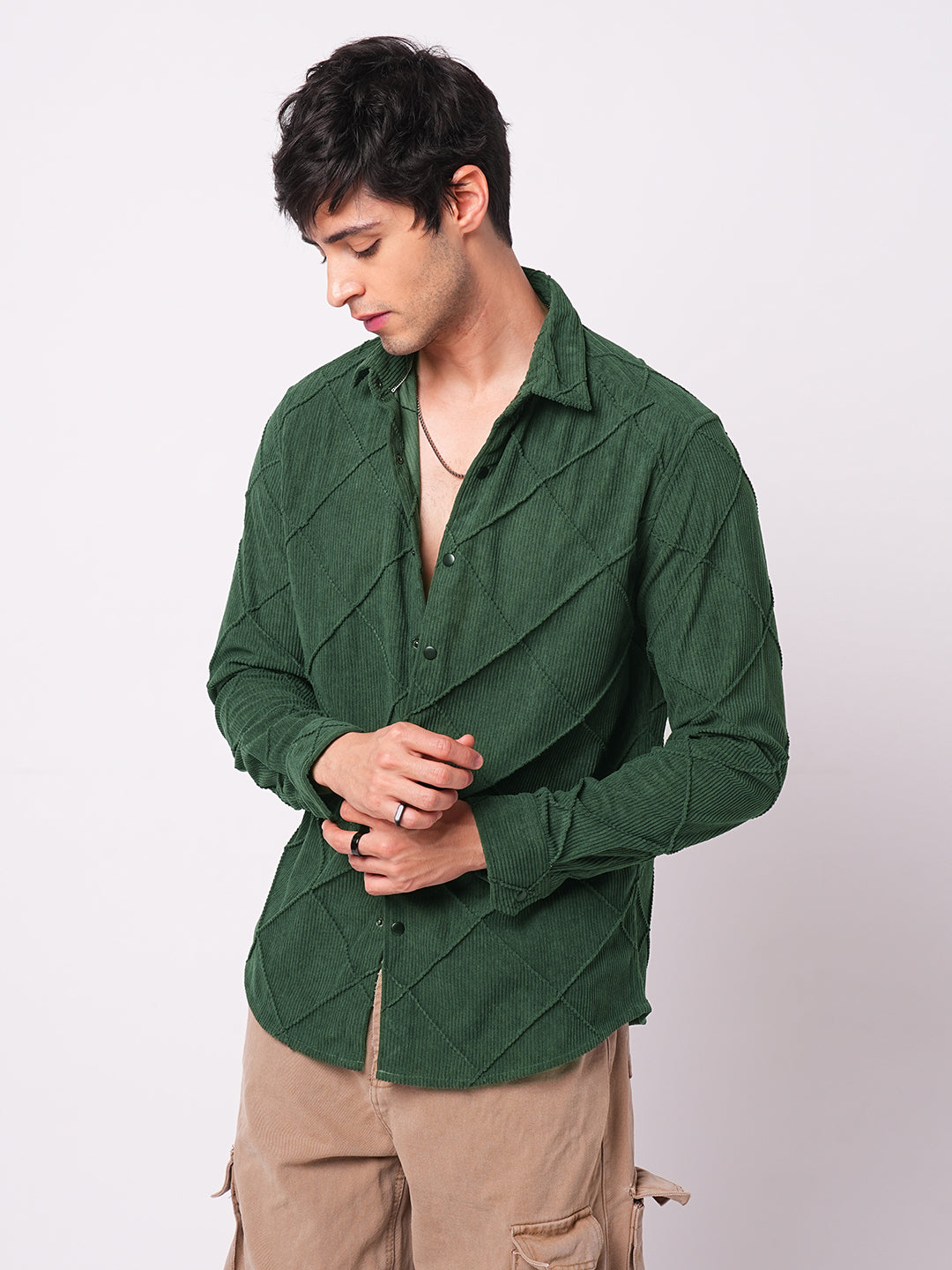 Timeless design, modern texture. This Pine Green Textured Corduroy Shirt offers a refined look with a breathable, puckered finish that adds quiet character. Ideal for both casual layering and smart layering, it’s a shirt that speaks volumes without saying too much.