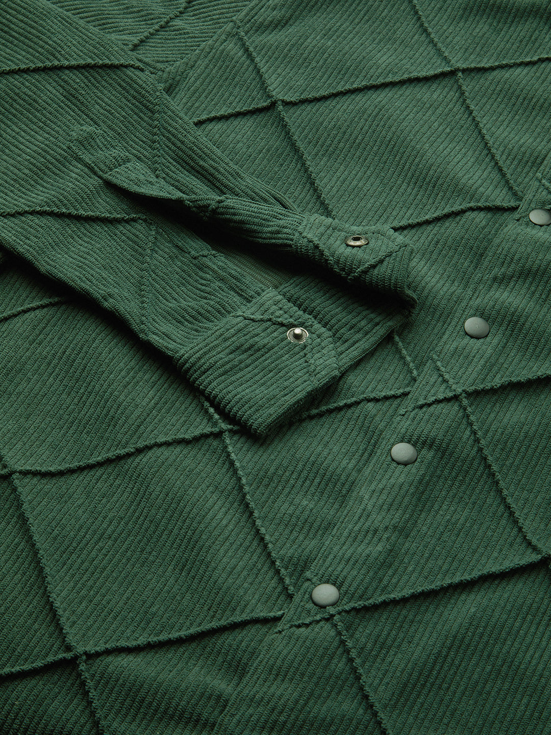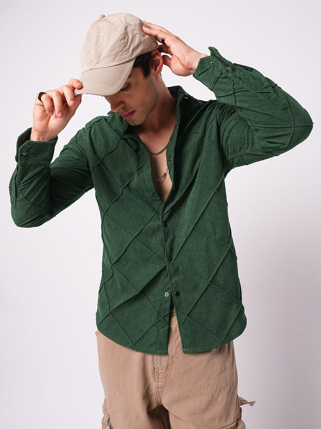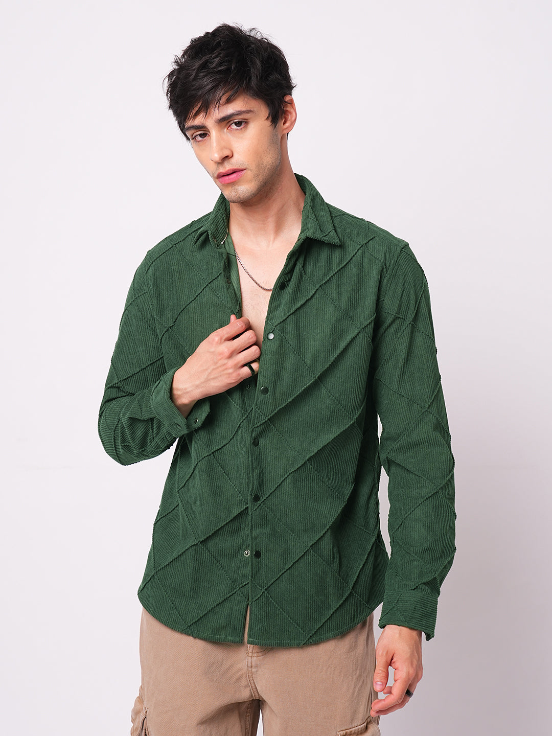 Timeless design, modern texture. This Pine Green Textured Corduroy Shirt offers a refined look with a breathable, puckered finish that adds quiet character. Ideal for both casual layering and smart layering, it’s a shirt that speaks volumes without saying too much.