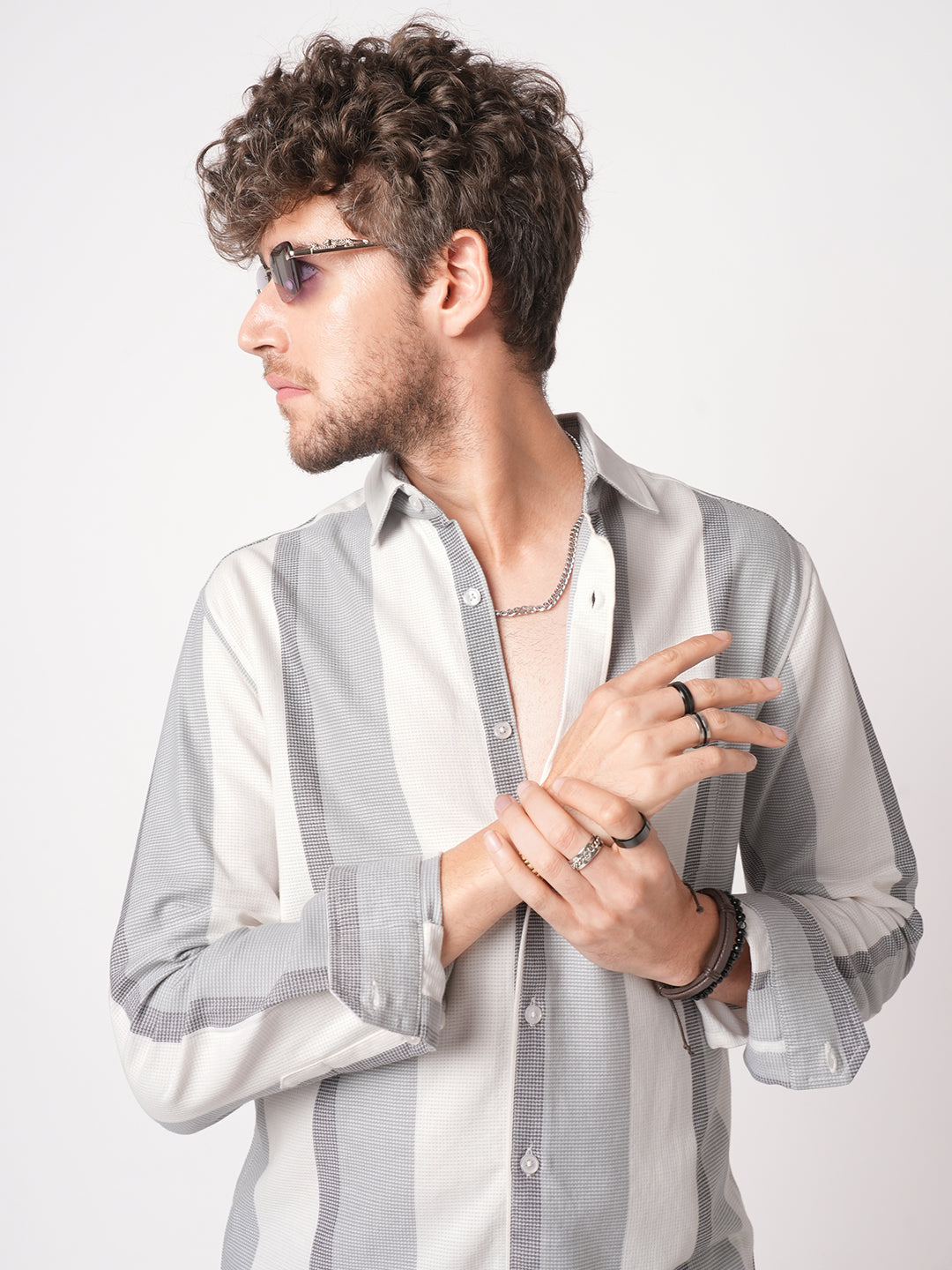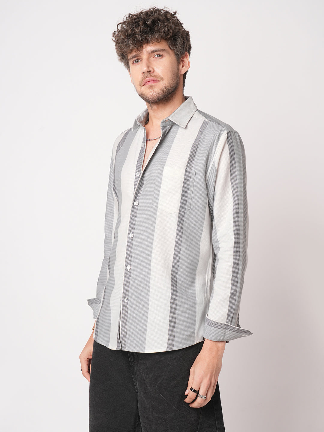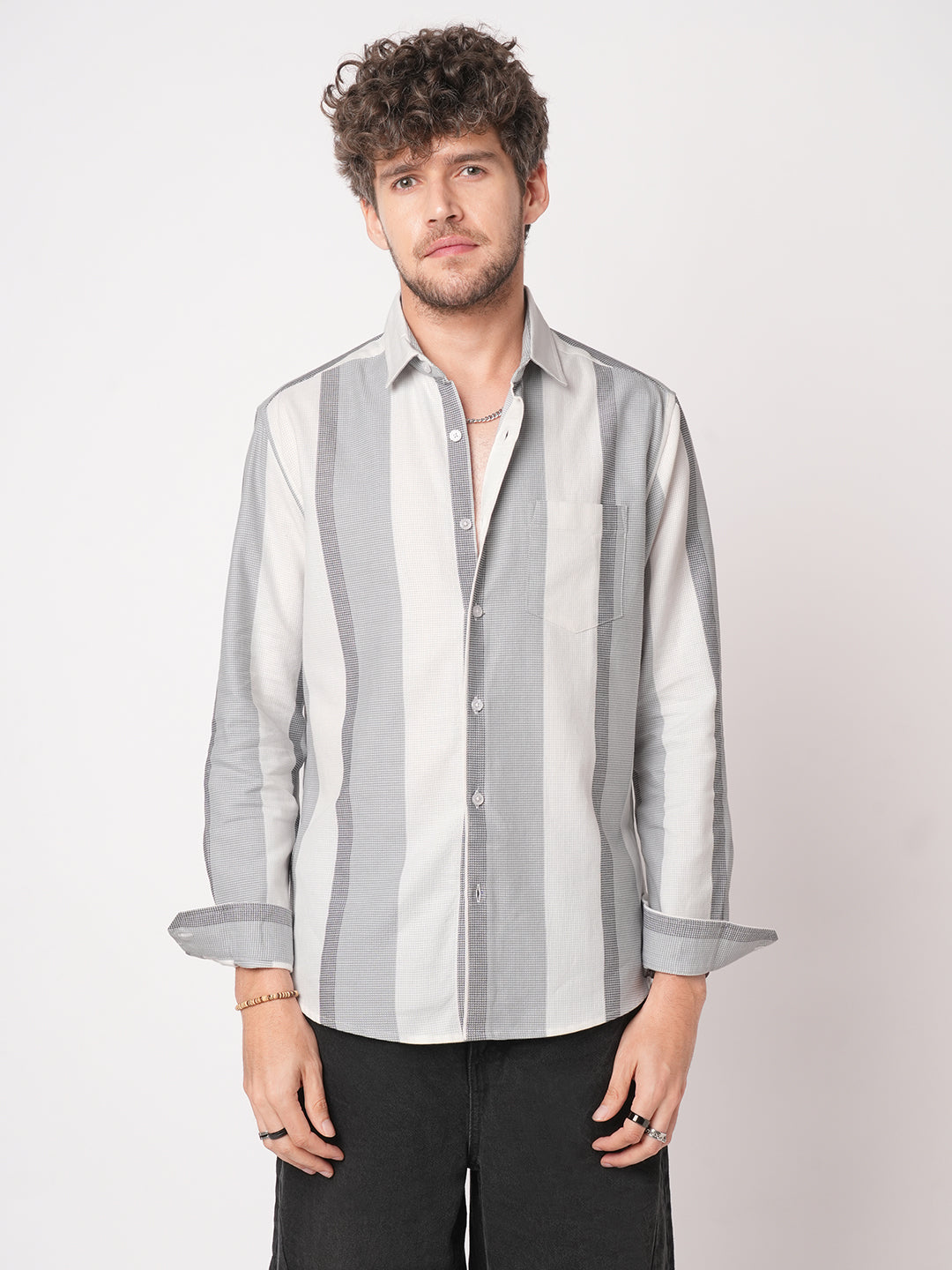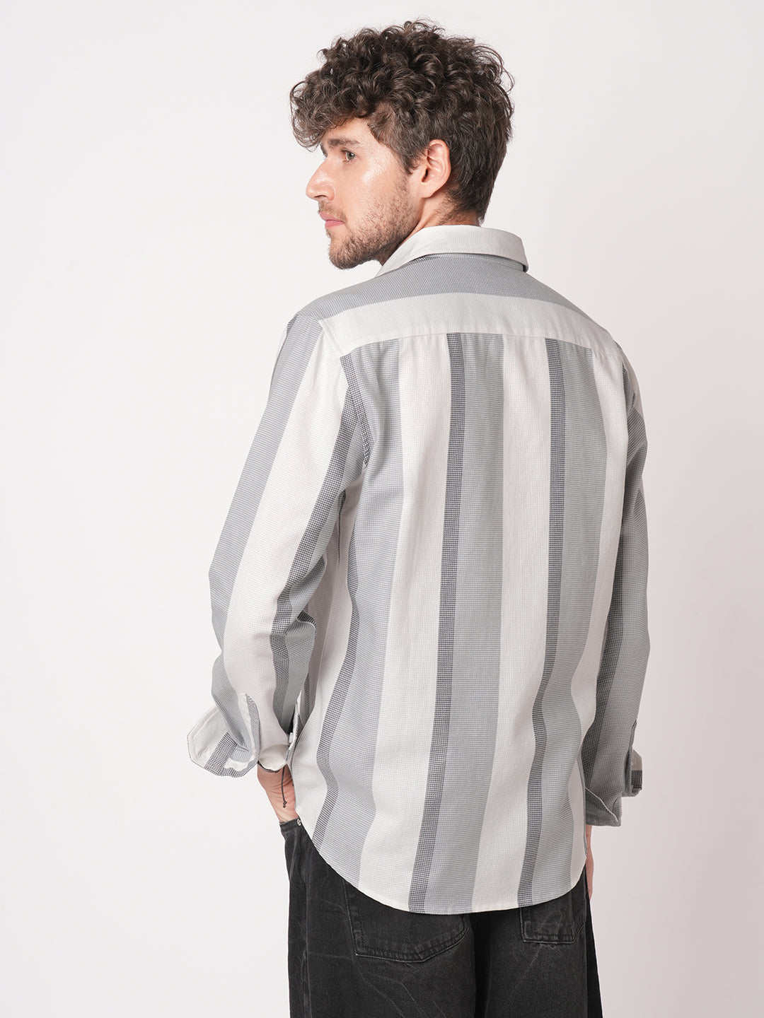 Premium Cotton Classic Dual Tone Broad Stripes Grey Shirt