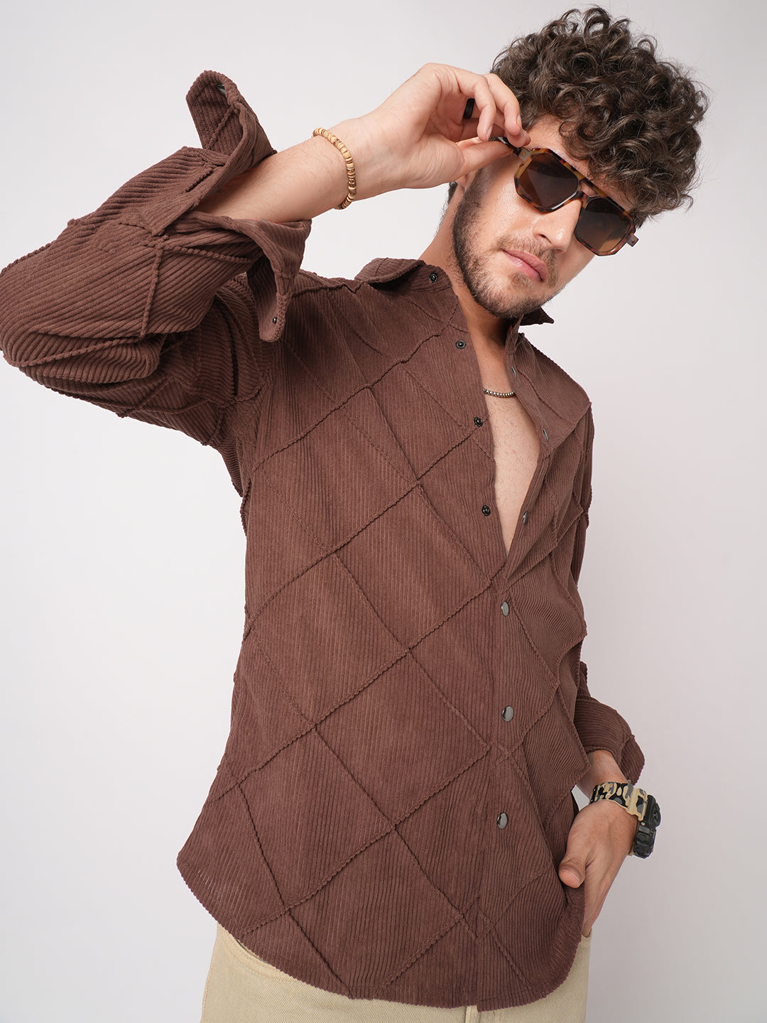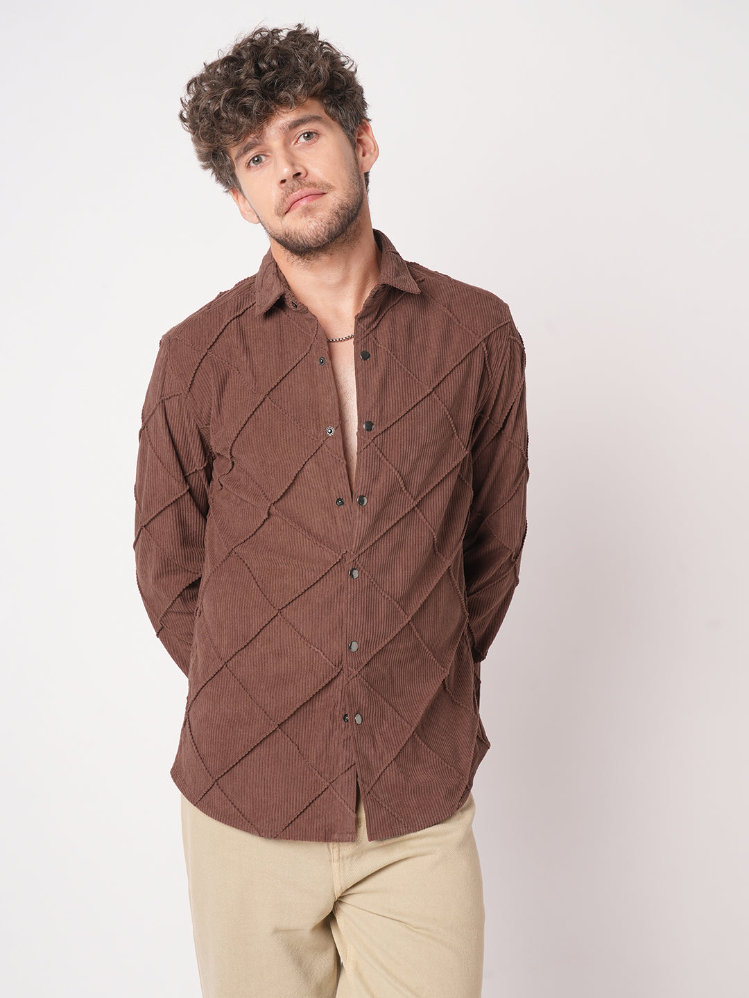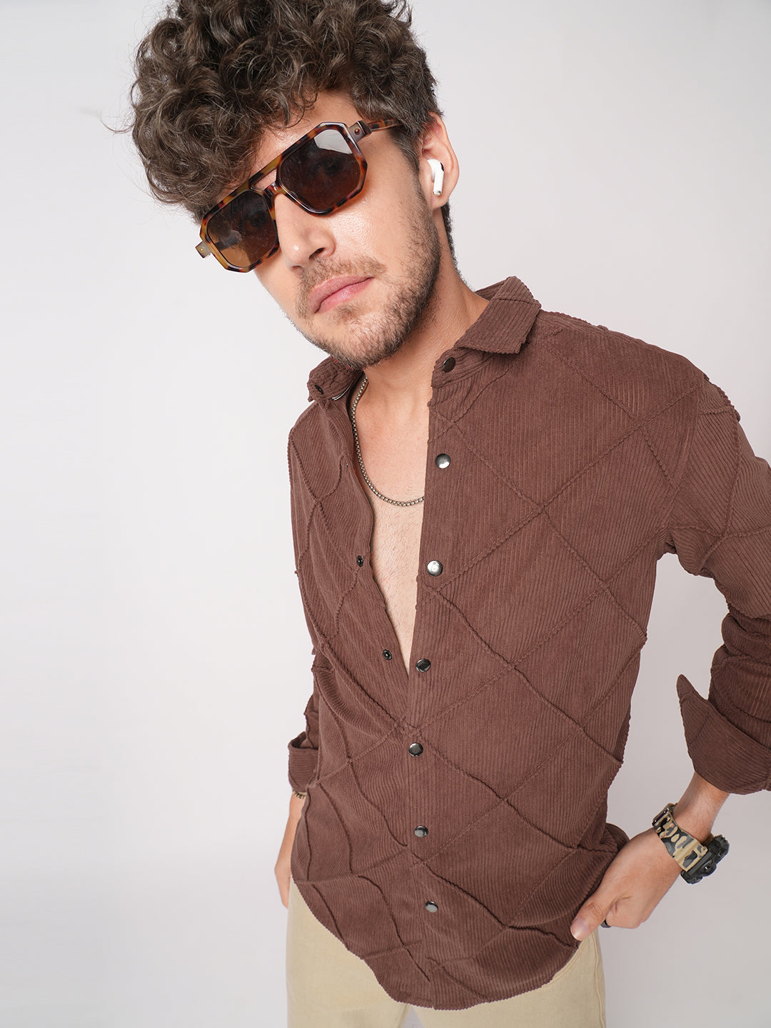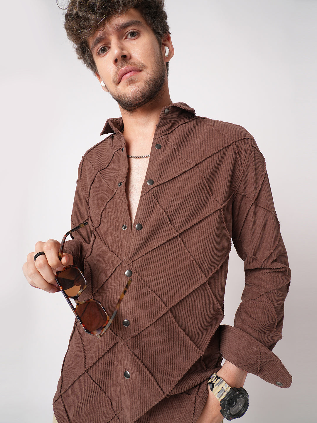 Elevate your everyday style with this Rustic Diamond Embossed Corduroy Shirt. Designed with a subtle diamond-embossed texture, this shirt blends rugged charm with refined detail. The soft corduroy fabric ensures warmth and comfort, while its earthy rustic tone makes it a versatile choice for casual outings or layered looks. Pair it with denims or chinos for an effortlessly stylish ensemble.