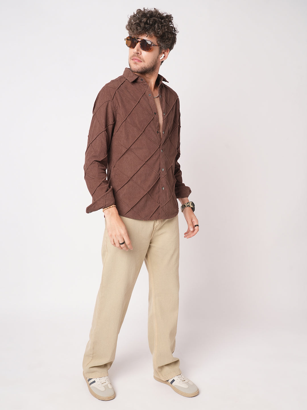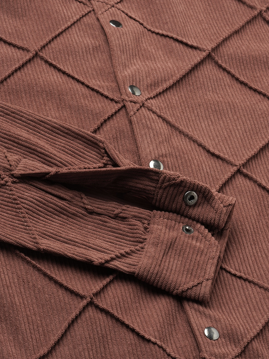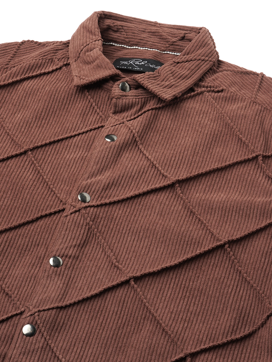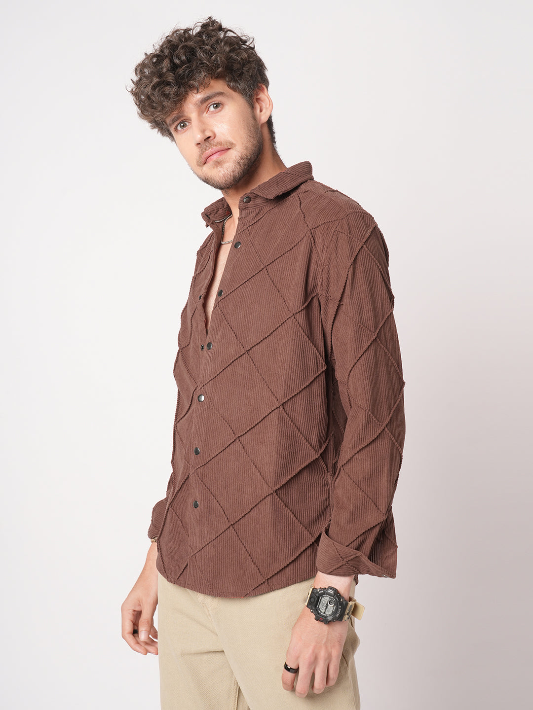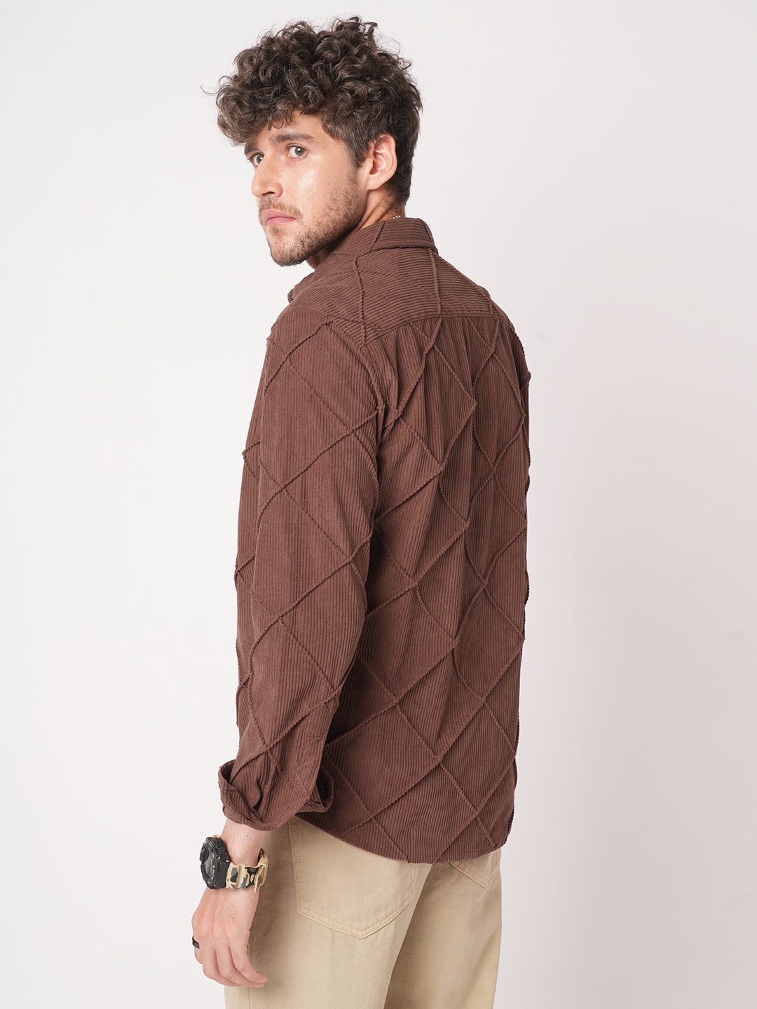 Elevate your everyday style with this Rustic Diamond Embossed Corduroy Shirt. Designed with a subtle diamond-embossed texture, this shirt blends rugged charm with refined detail. The soft corduroy fabric ensures warmth and comfort, while its earthy rustic tone makes it a versatile choice for casual outings or layered looks. Pair it with denims or chinos for an effortlessly stylish ensemble.